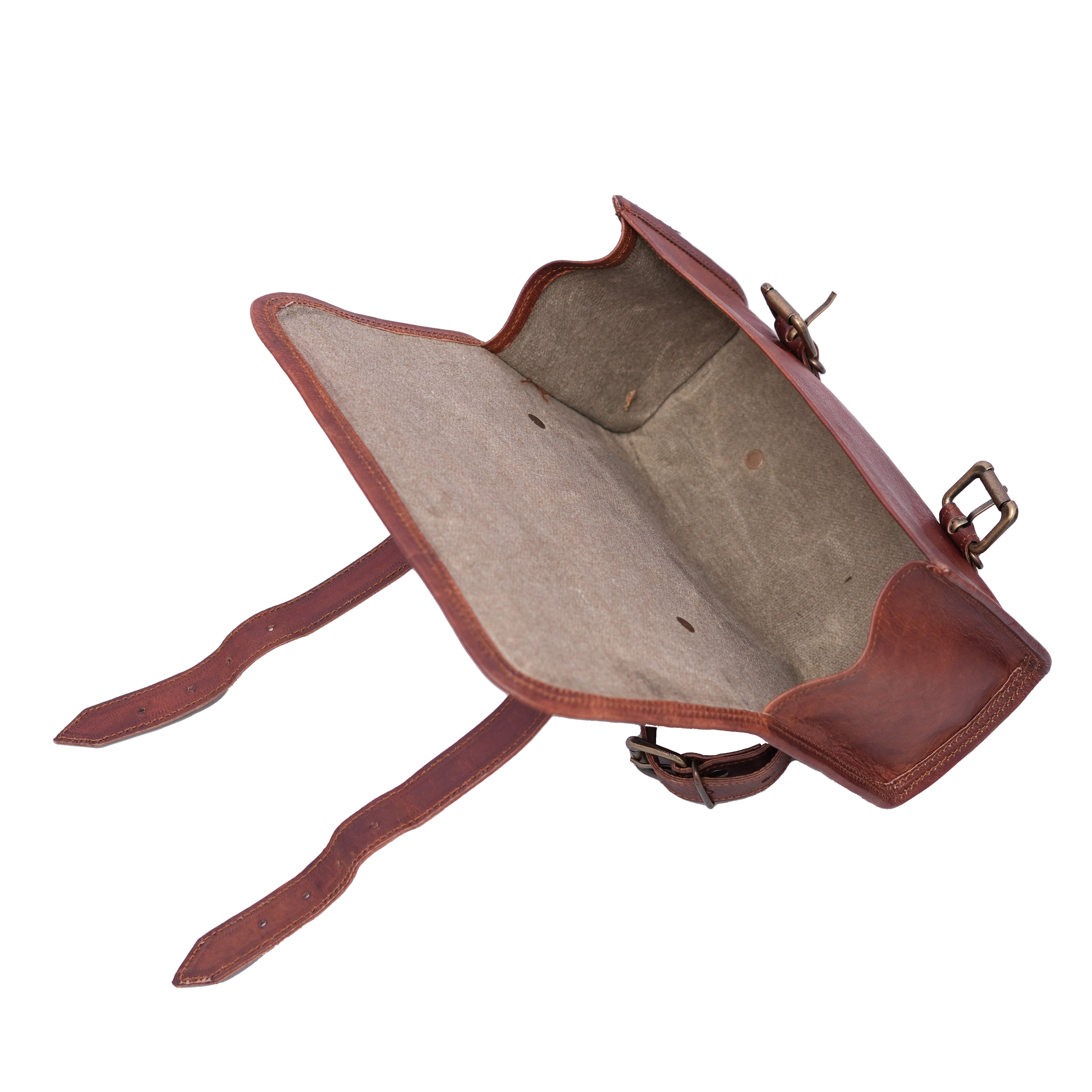- Ethically sourced leather and natural materials.