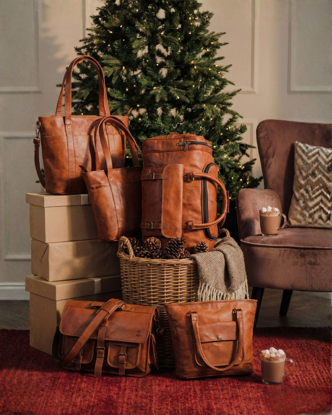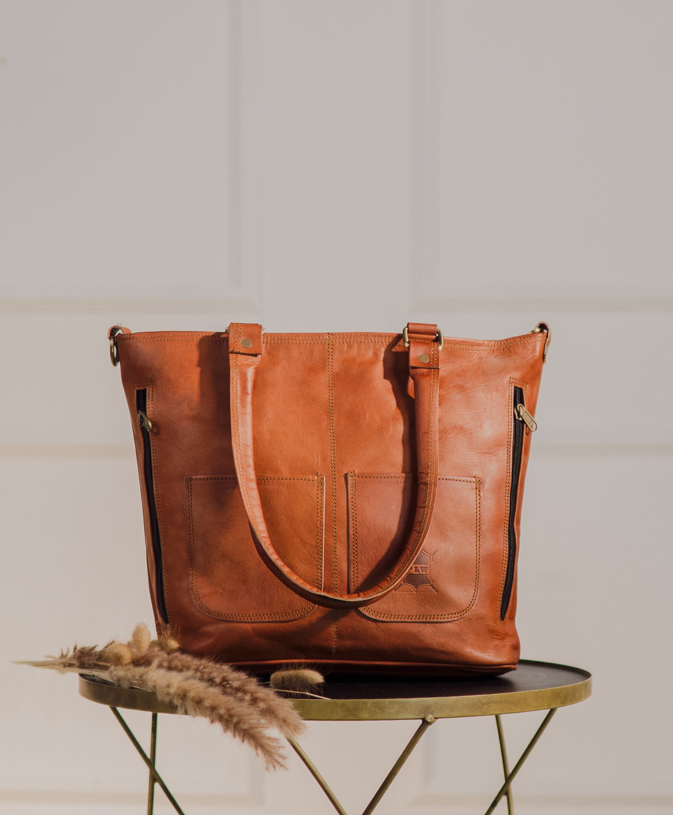 - Ethically sourced leather and natural materials.