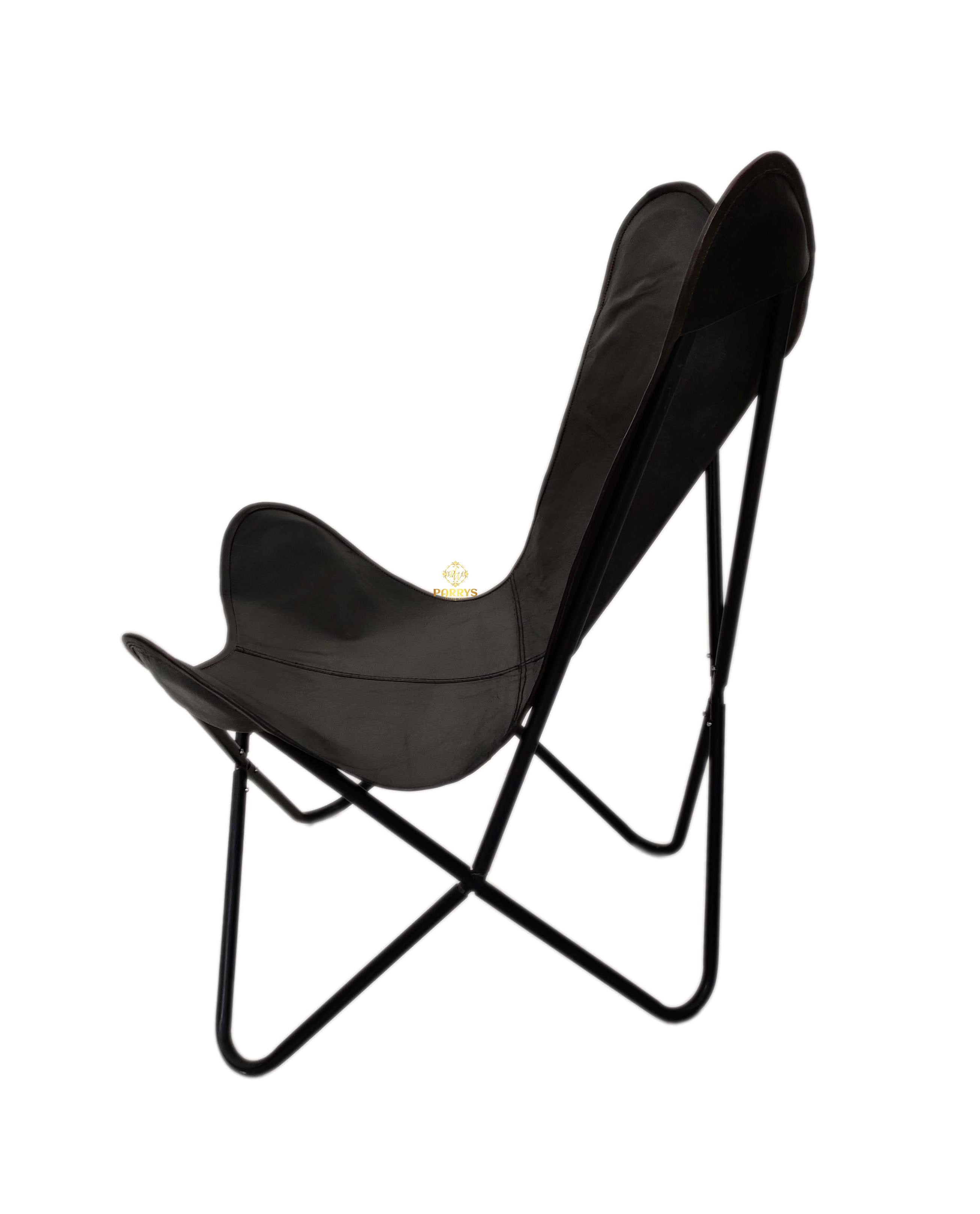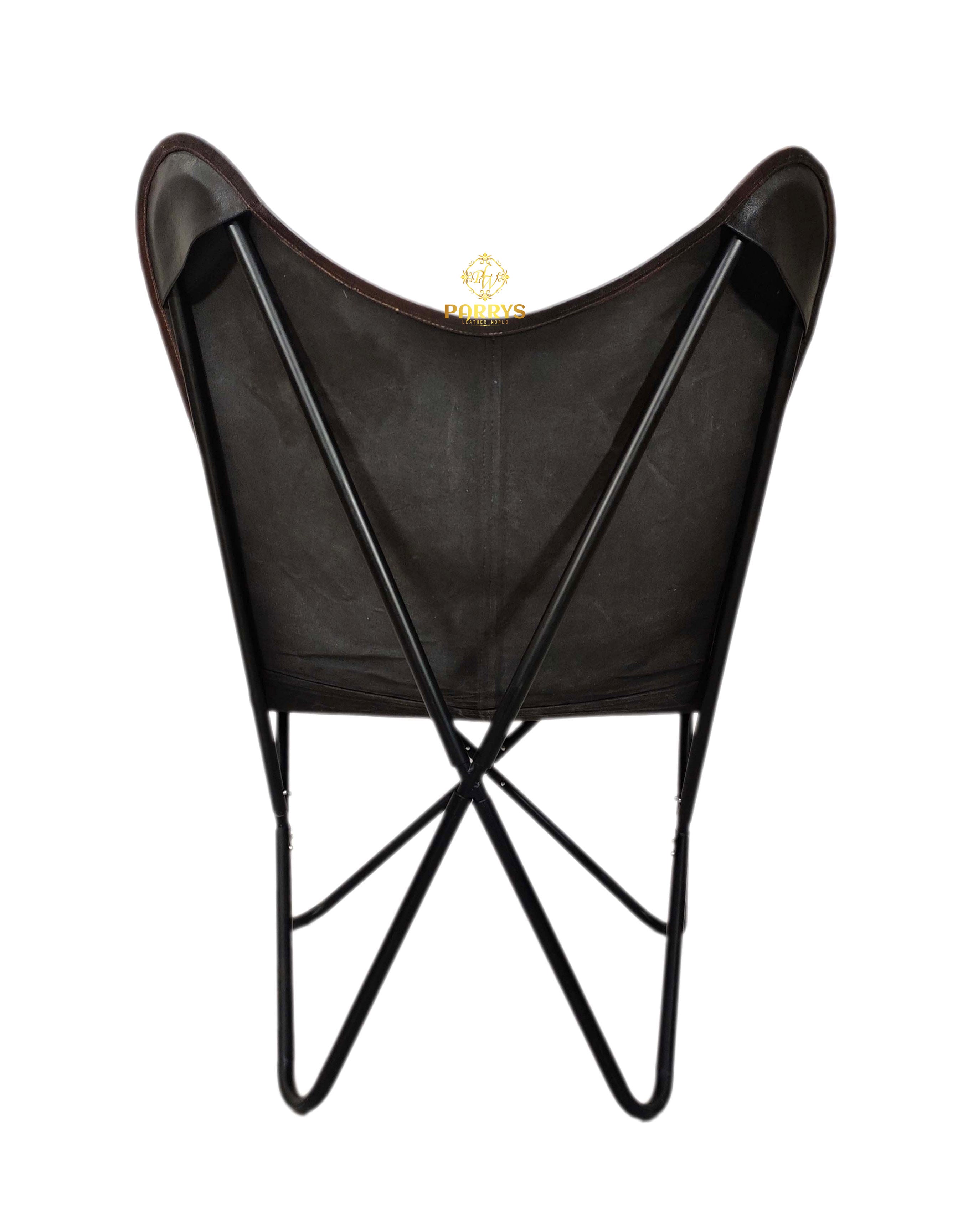 Sleek, timeless, and effortlessly modern, the Classic Black Leather Butterfly Chair brings a crisp black finish to the iconic sling silhouette. Handcrafted from premium top‑grain leather, the seat has a smooth sheen that softens beautifully with use, developing a subtle patina. Clean panel stitching and hand‑laced edging highlight artisan craftsmanship, while the powder‑coated iron frame delivers a minimalist profile with dependable stability. A versatile accent for living rooms, reading nooks, studios, and contemporary office lounges.