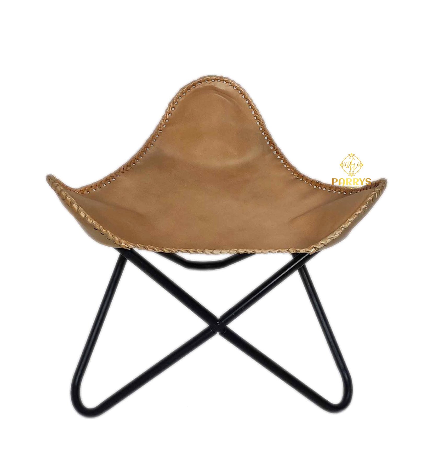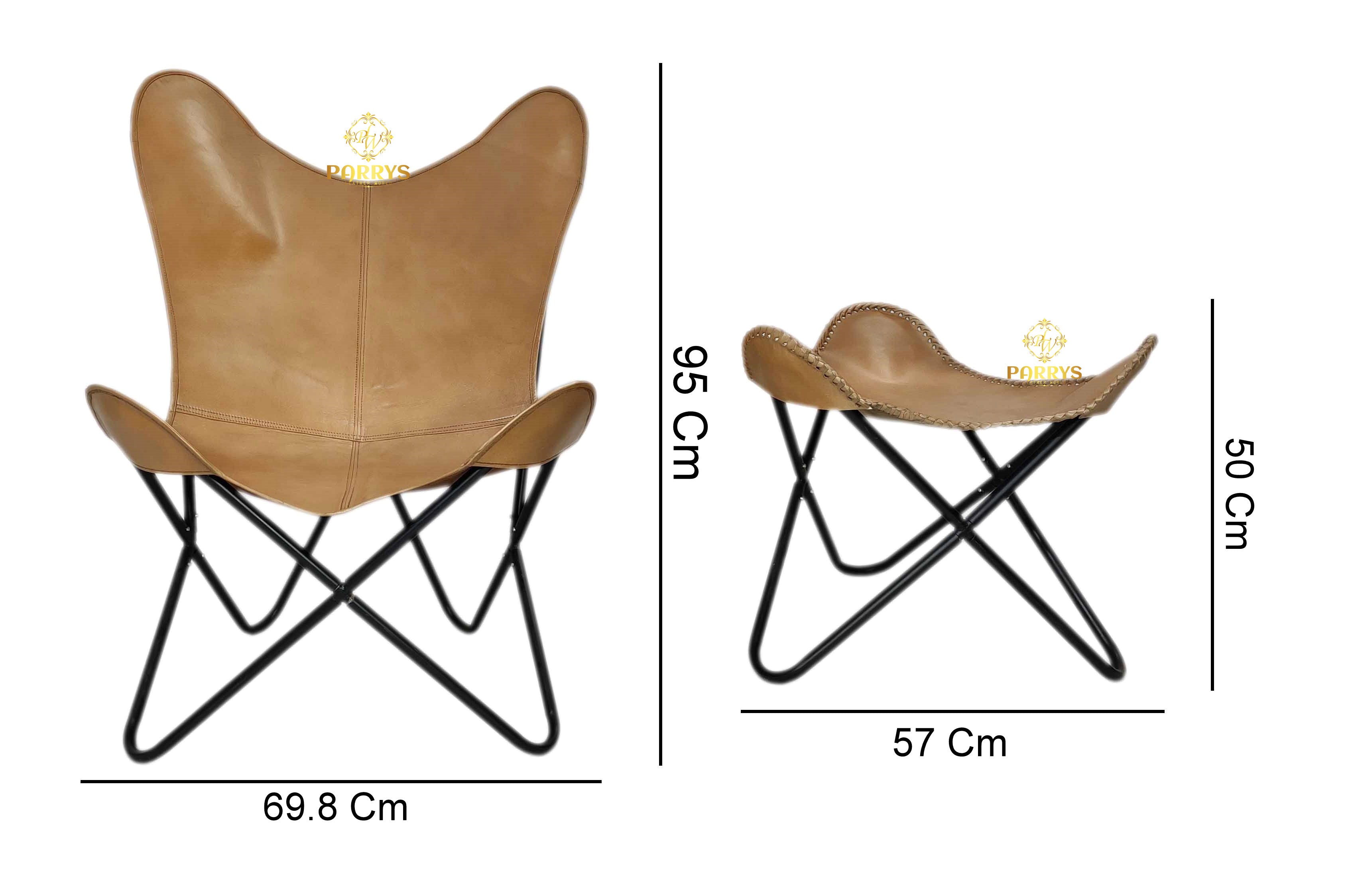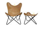 Add a warm and inviting touch to your interiors with the Classic Tan Leather Butterfly Chair with Ottoman. Crafted with premium top-grain tan leather, this chair and ottoman set provides a soft, supple seating experience that blends timeless style with modern comfort. The signature butterfly silhouette offers ergonomic support, while the sturdy powder-coated iron frame ensures lasting stability. With hand-stitched edges and a natural patina that deepens over time, this set is perfect for living rooms, home offices, or cozy reading corners.