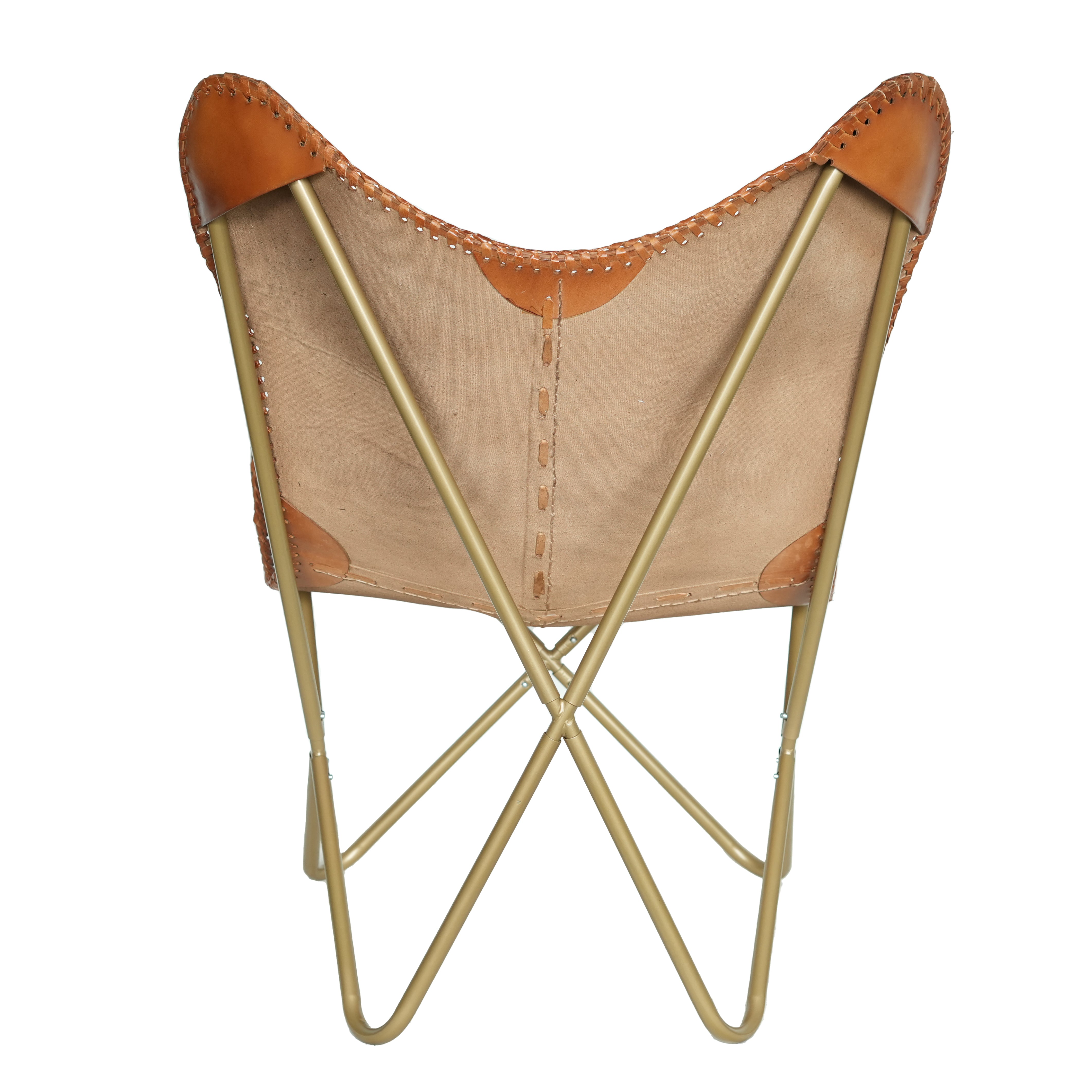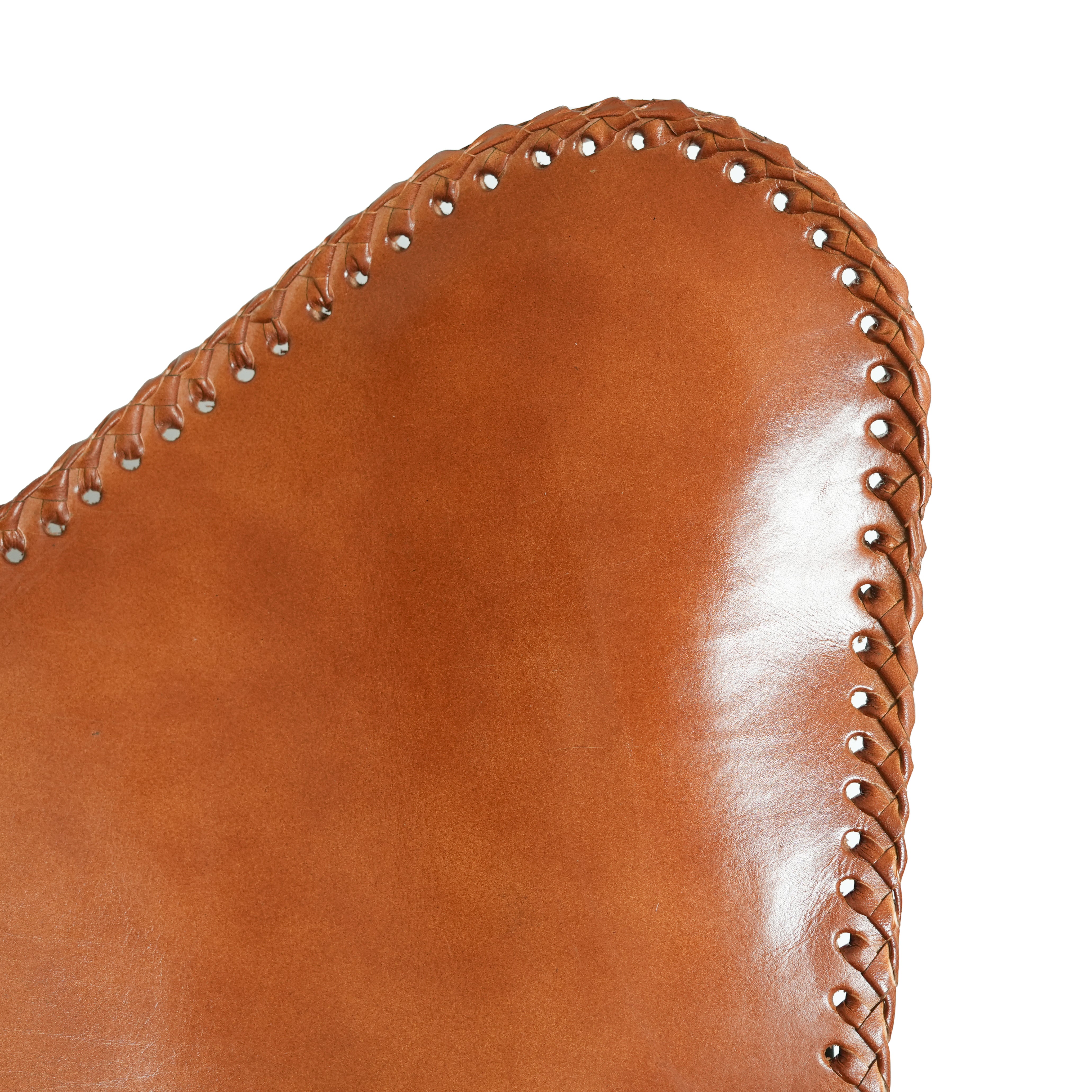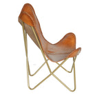 Bold and radiant, the Copper Glow Leather Butterfly Chair infuses any space with vibrant warmth and sophisticated flair. The seat is crafted from supple full‑grain leather in a rich copper‑orange tone, finished with hand whip‑stitched edging that adds artisanal character. The iconic butterfly silhouette gently cradles the body for comfortable lounging, while a brass‑toned cross frame maintains an airy yet sturdy profile. A striking statement piece for modern, eclectic, and co