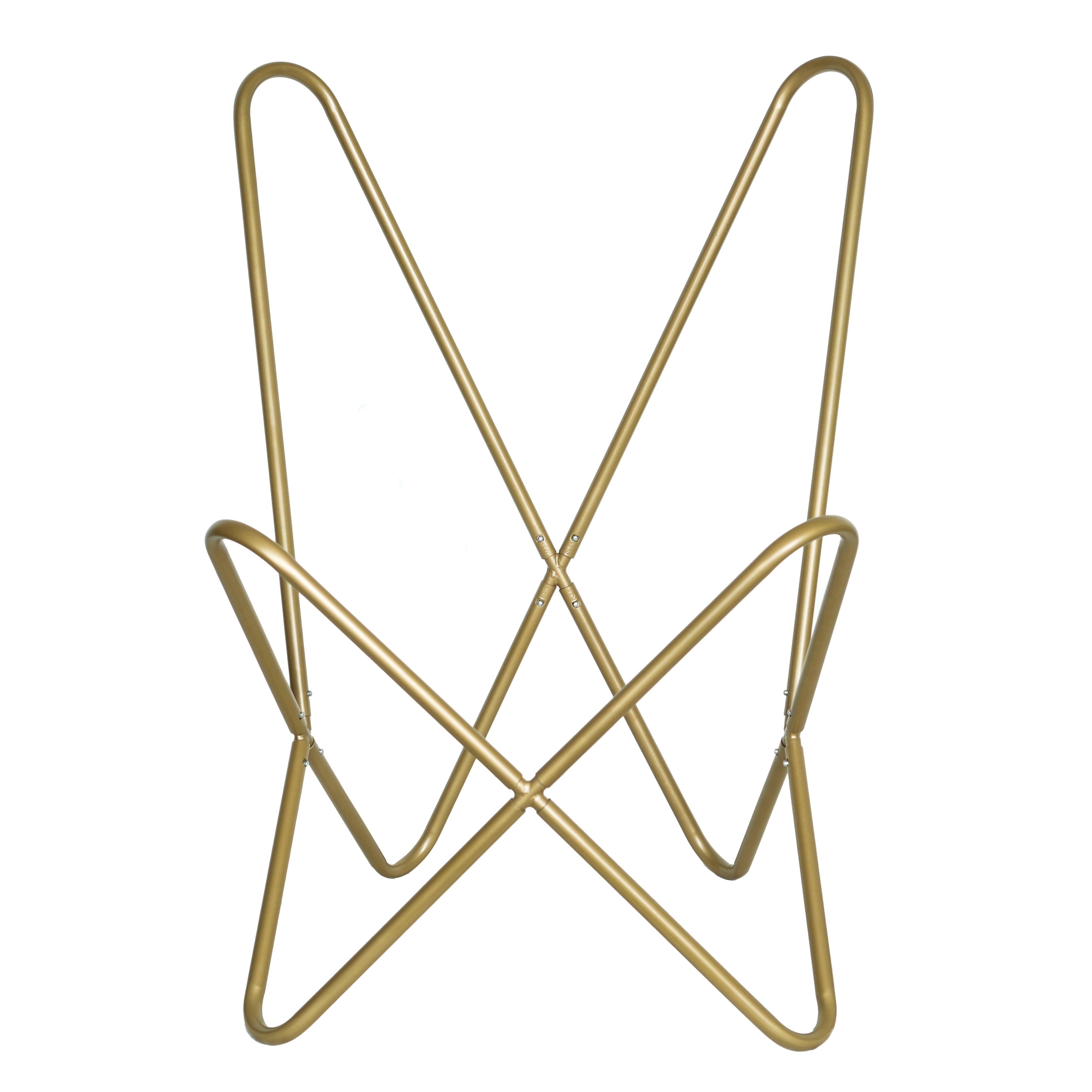 • Frame: Durable metal X‑base in a brushed brass tone with floor‑friendly caps