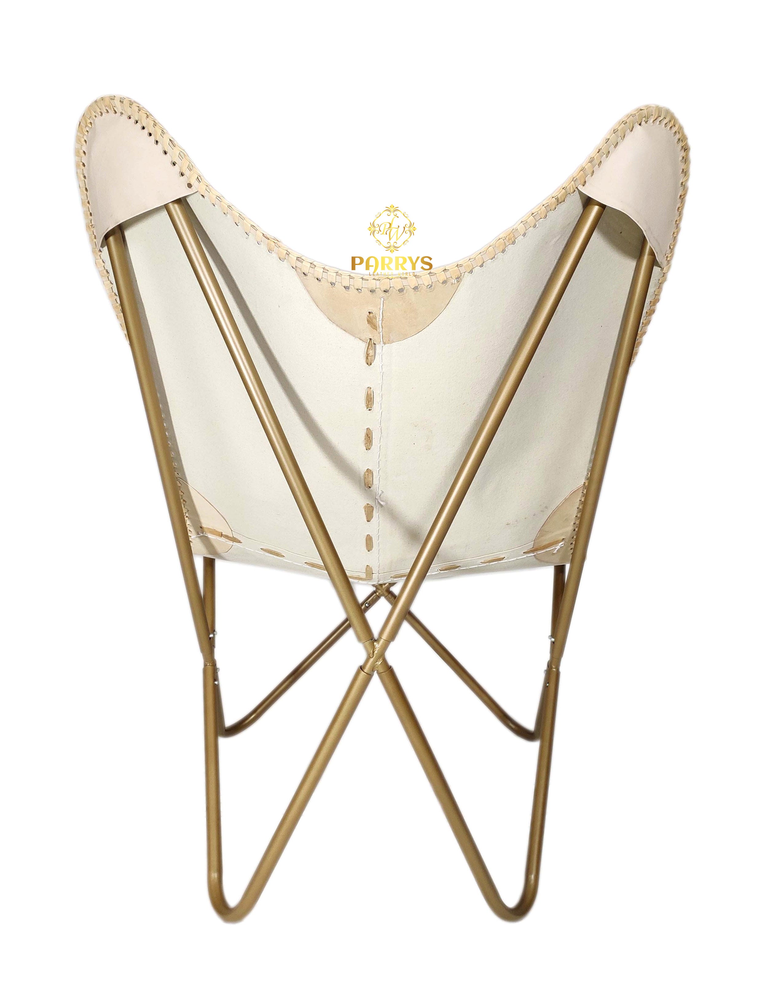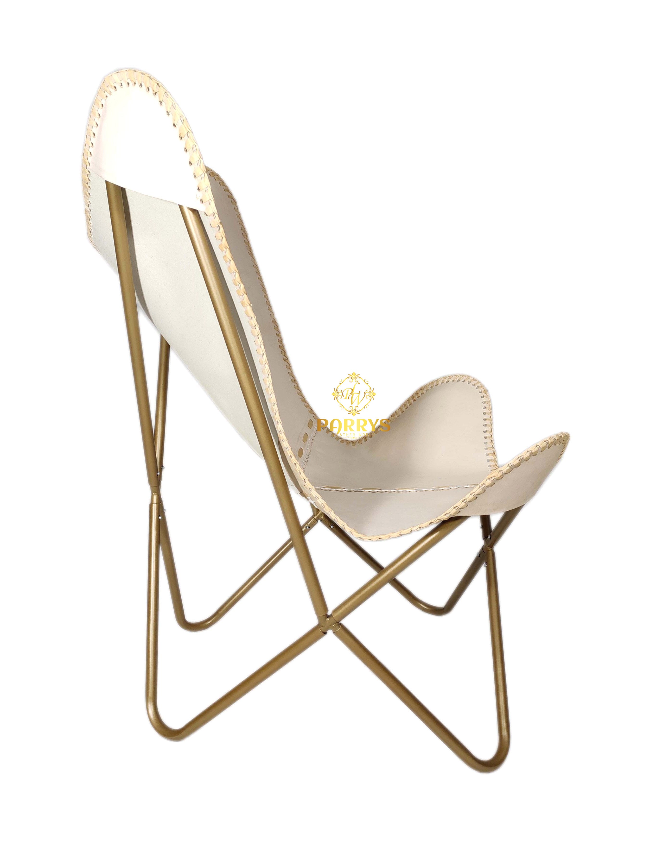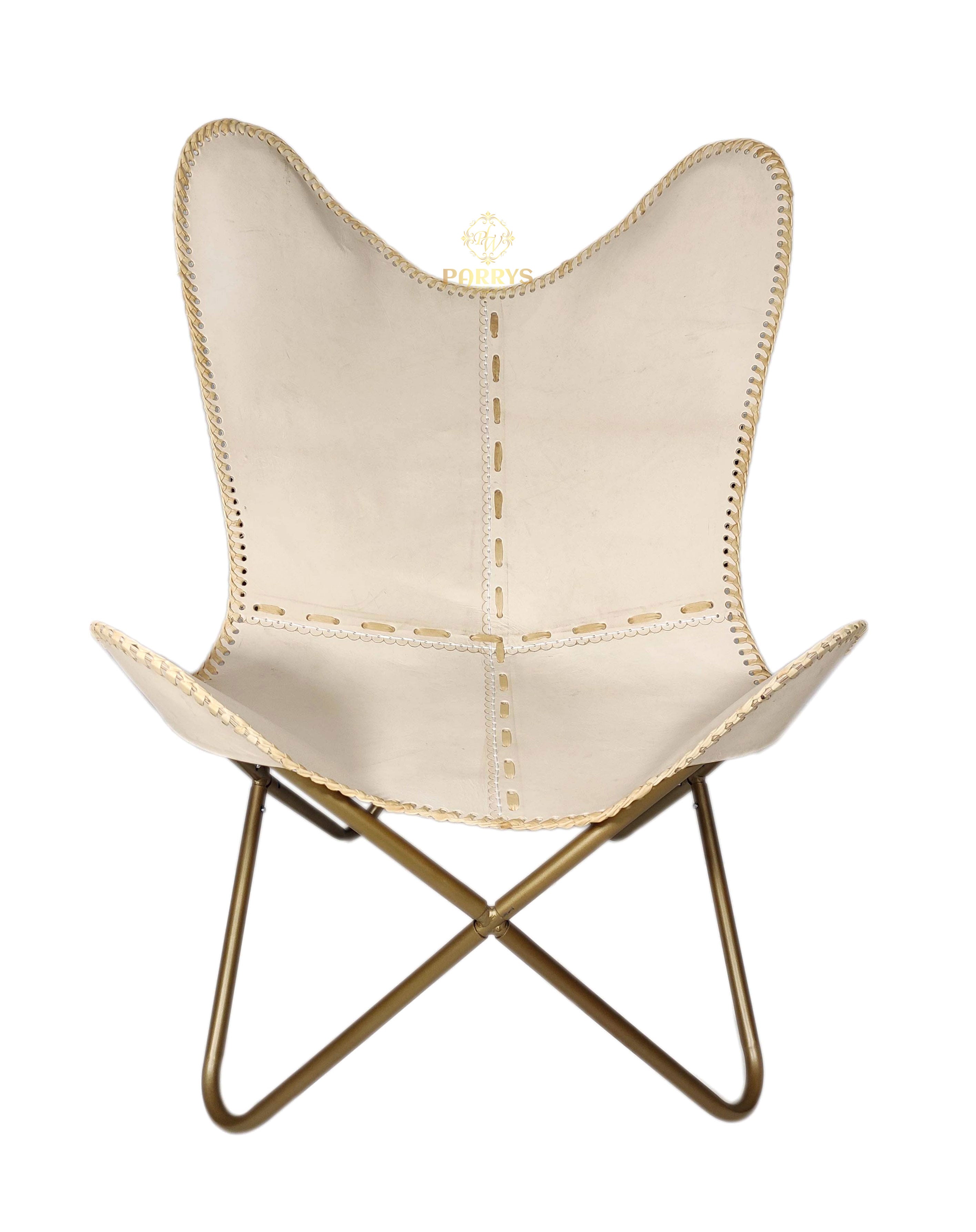 Cream Stitch Leather Butterfly Chair
