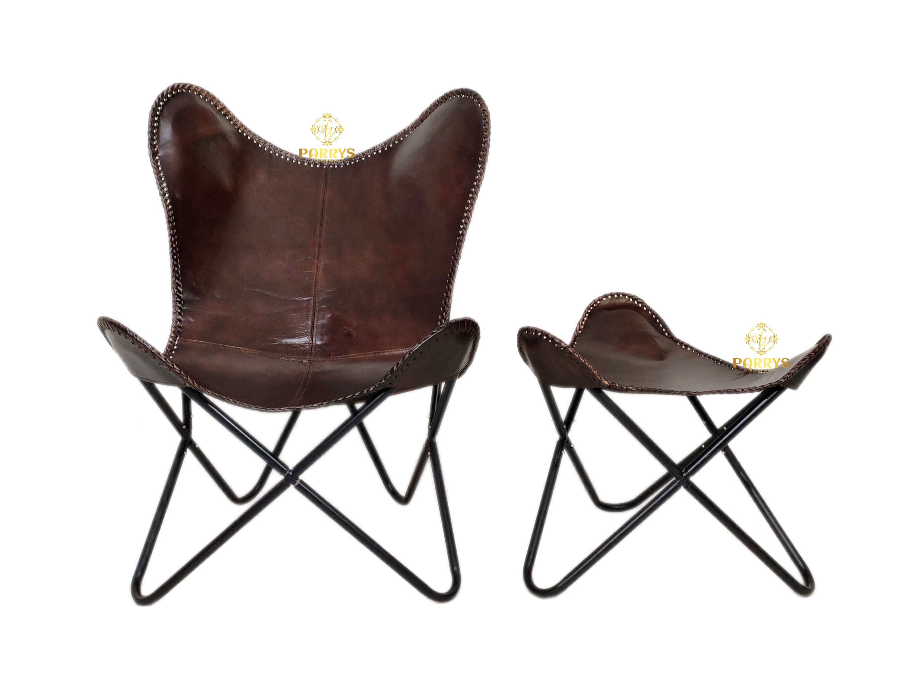 Elevate your living space with this stylish and comfortable Dark Brown Butterfly Chair and Stool Set. Designed for both relaxation and style, this unique seating set combines the iconic butterfly chair shape with a matching, compact stool. The result is a versatile and elegant addition to any room. It's perfect for your living room, reading nook, bedroom, or a cozy corner in your office.