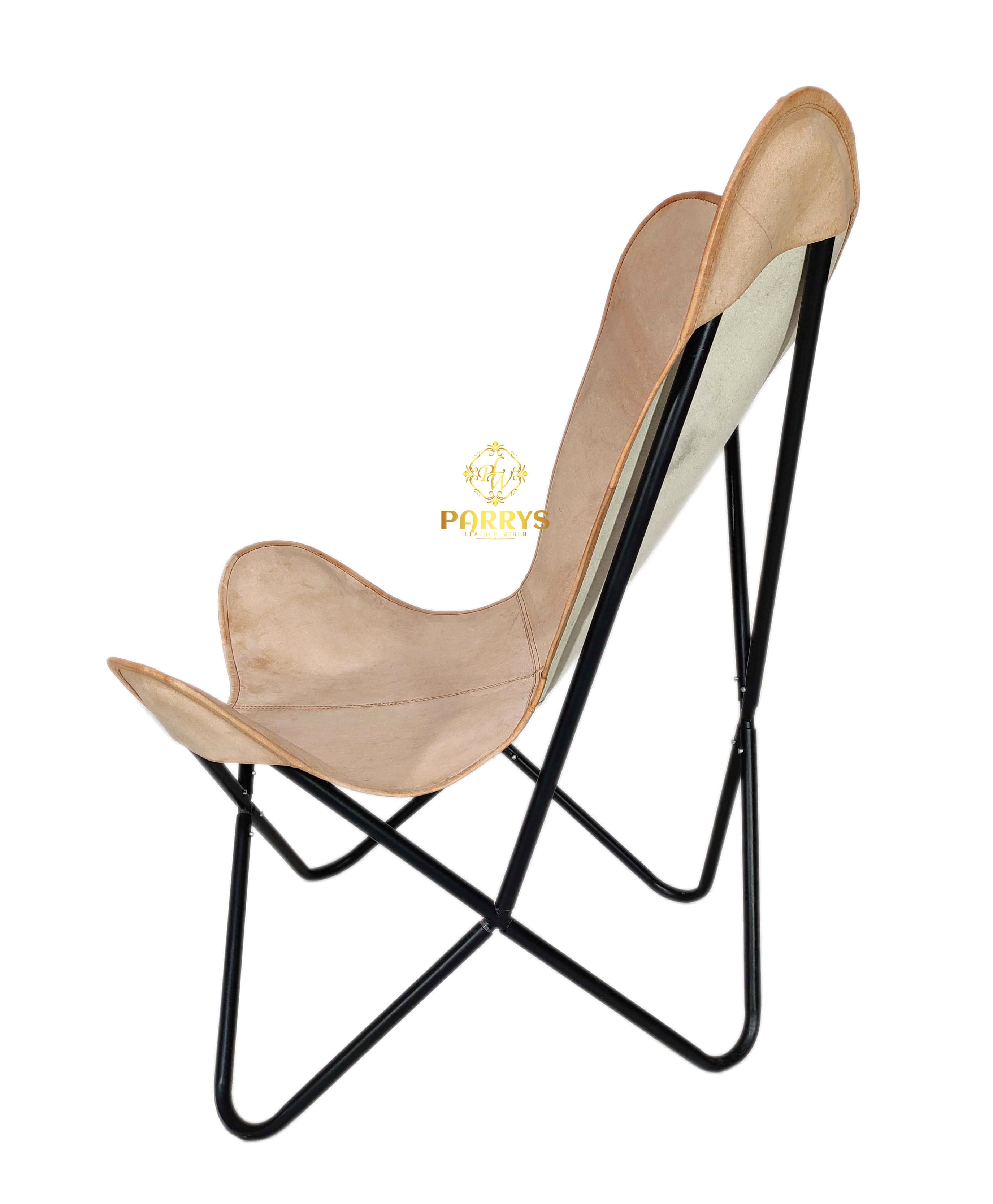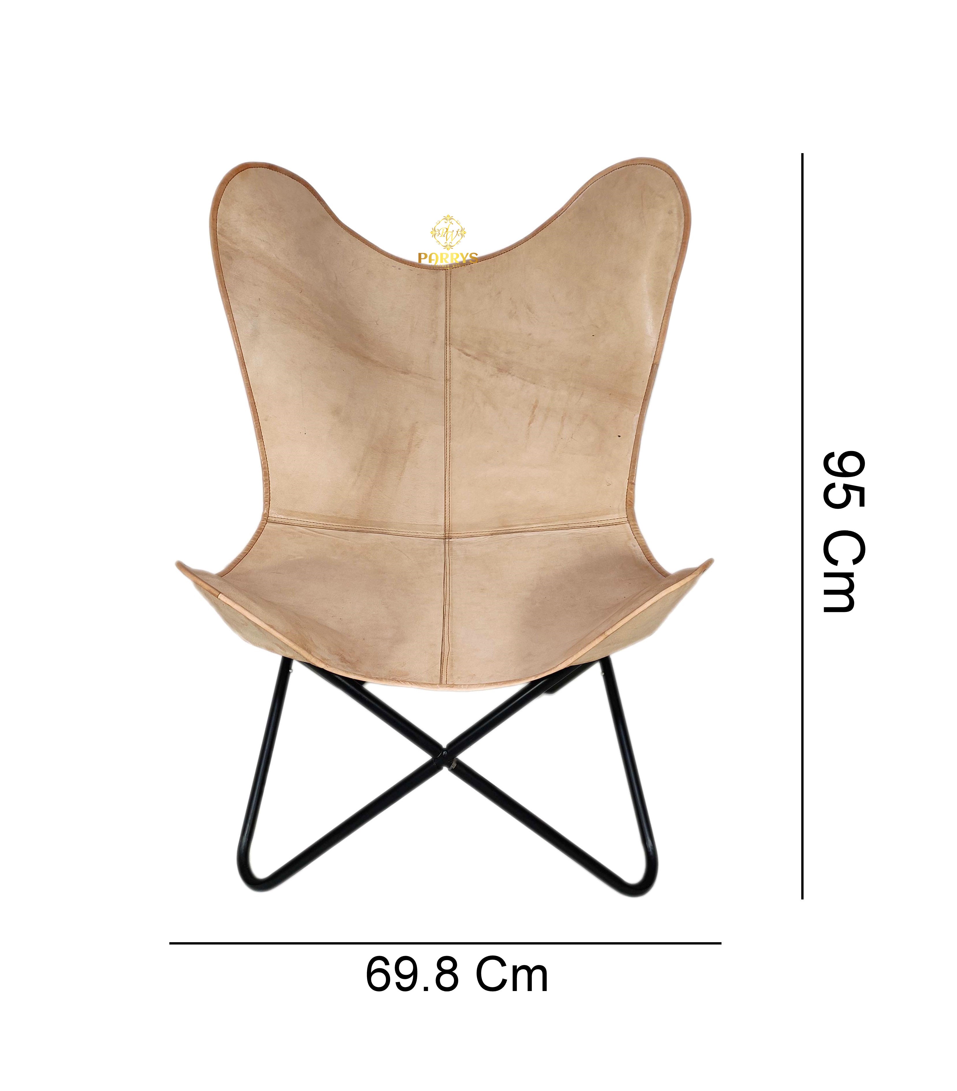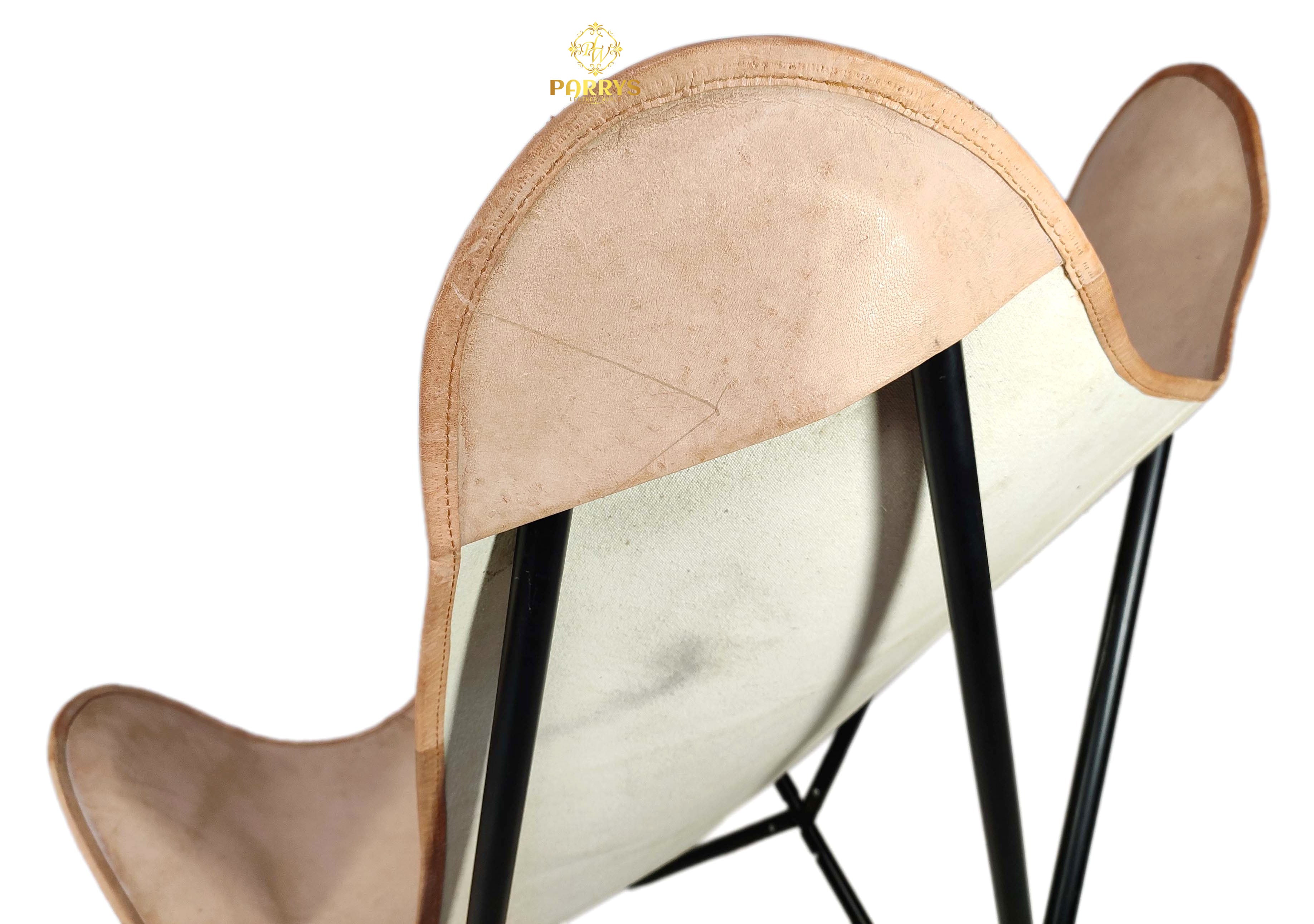 Airy, versatile, and effortlessly refined, the Drift Beige Leather Butterfly Chair introduces a soft sand‑beige tone that lightens any space. Handcrafted from premium top‑grain leather, the seat shows natural grain variation and a gentle matte sheen that will develop a beautiful patina with everyday use. The iconic butterfly silhouette naturally cradles the body, while clean panel stitching highlights artisan craftsmanship. A powder‑coated iron frame completes the minimalist profile with dependable stability for living rooms, reading nooks, bedrooms, studios, and office lounges.