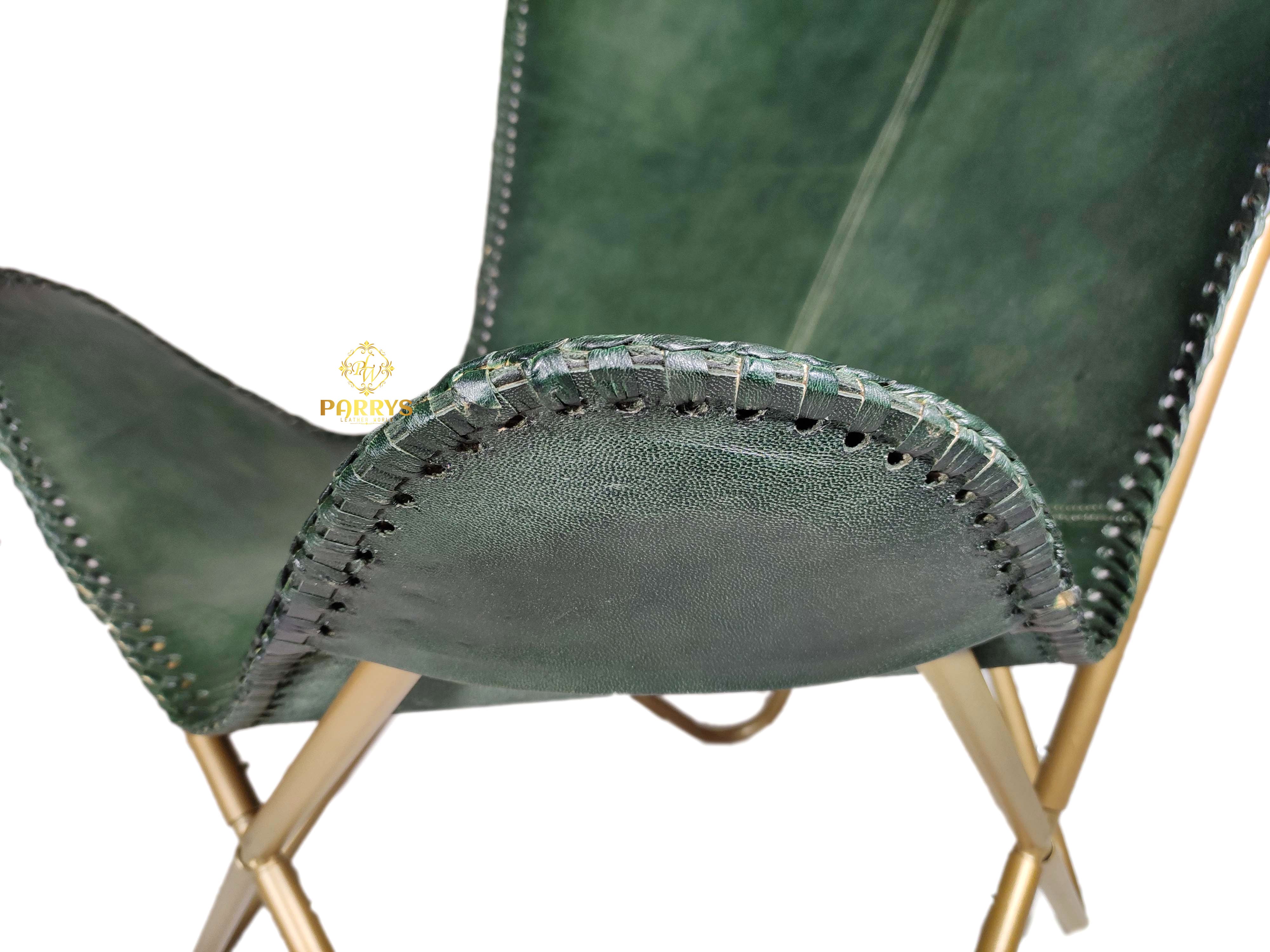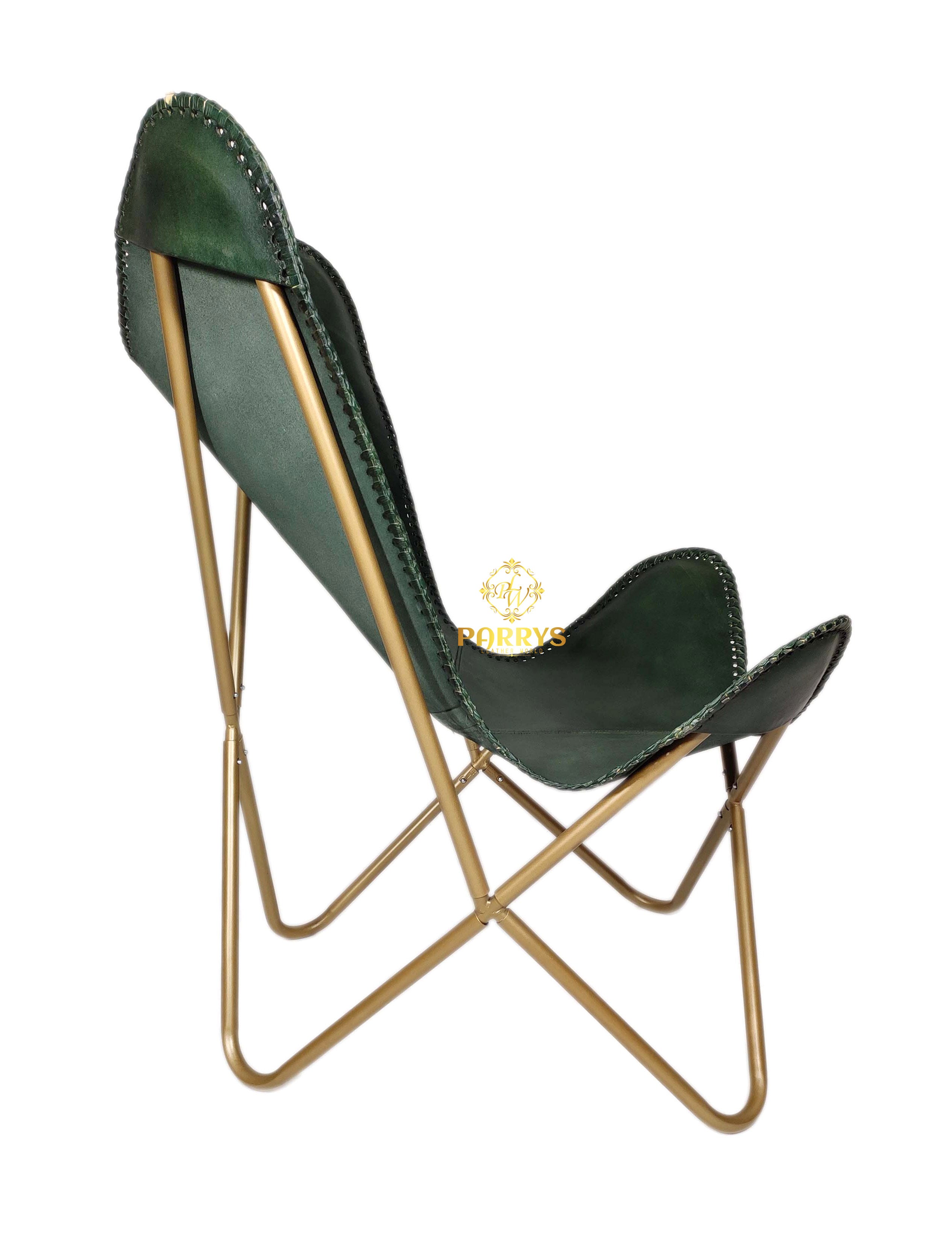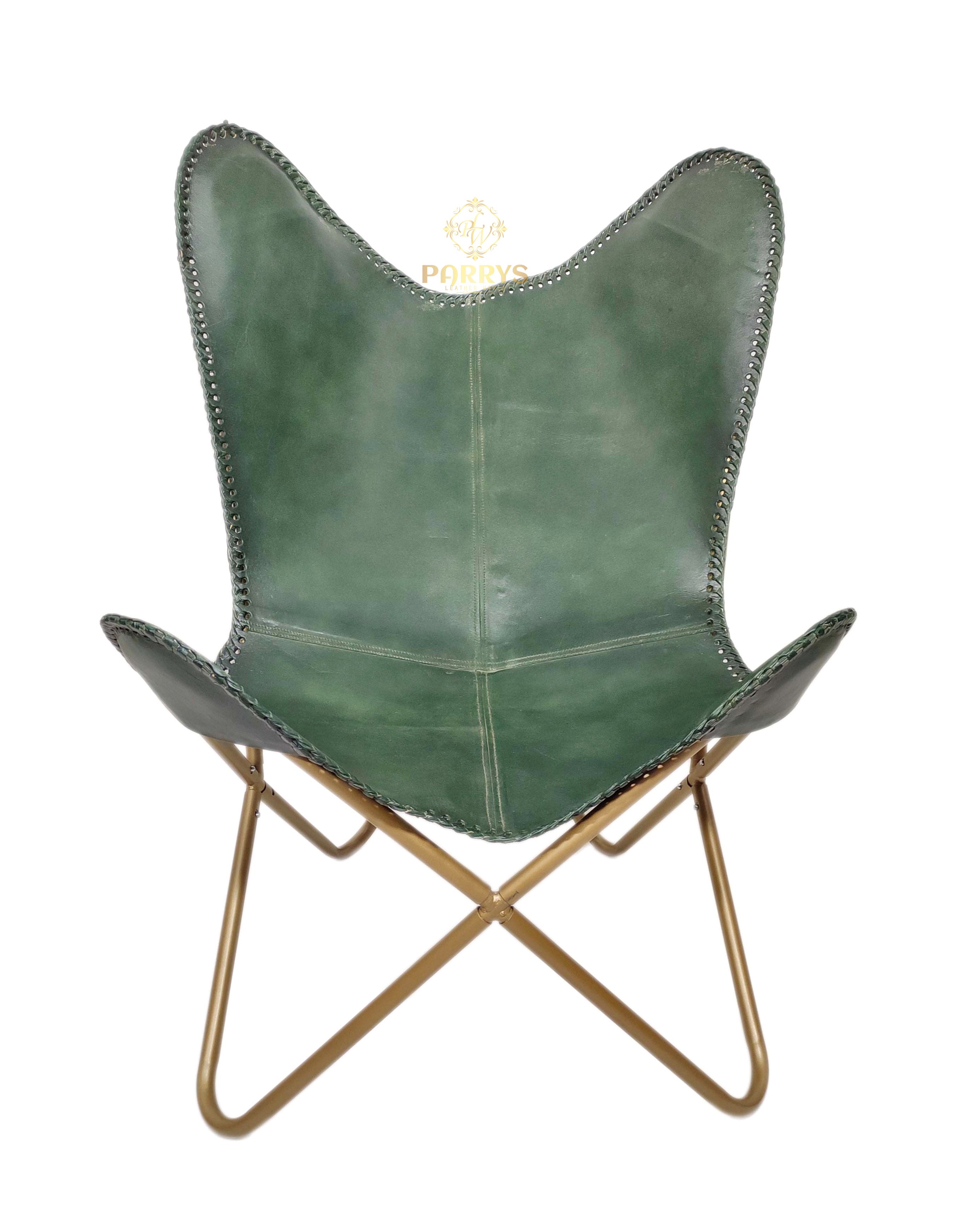 Forest Green Leather Butterfly Chair