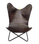 Moss Brown Leather Butterfly Chair