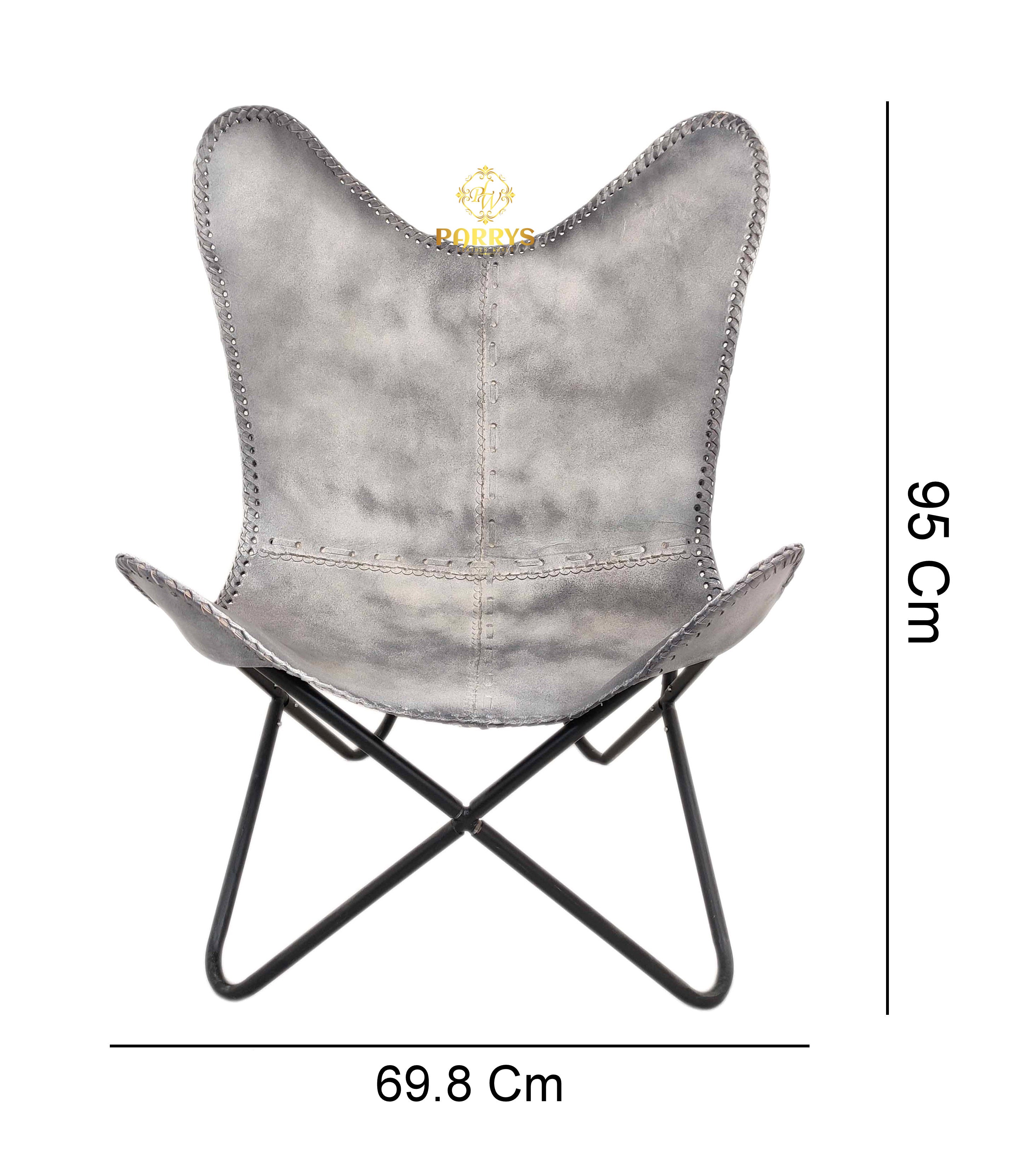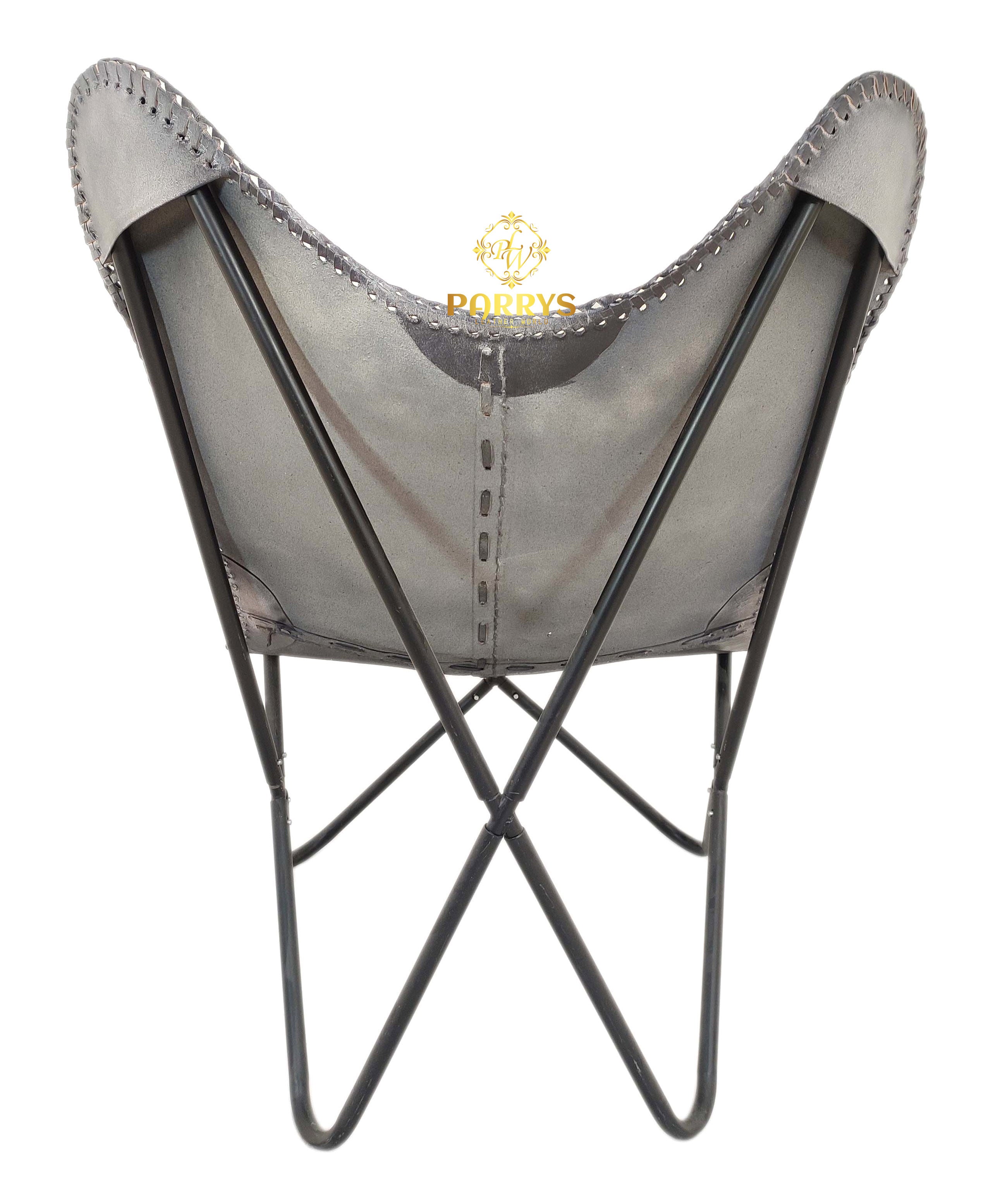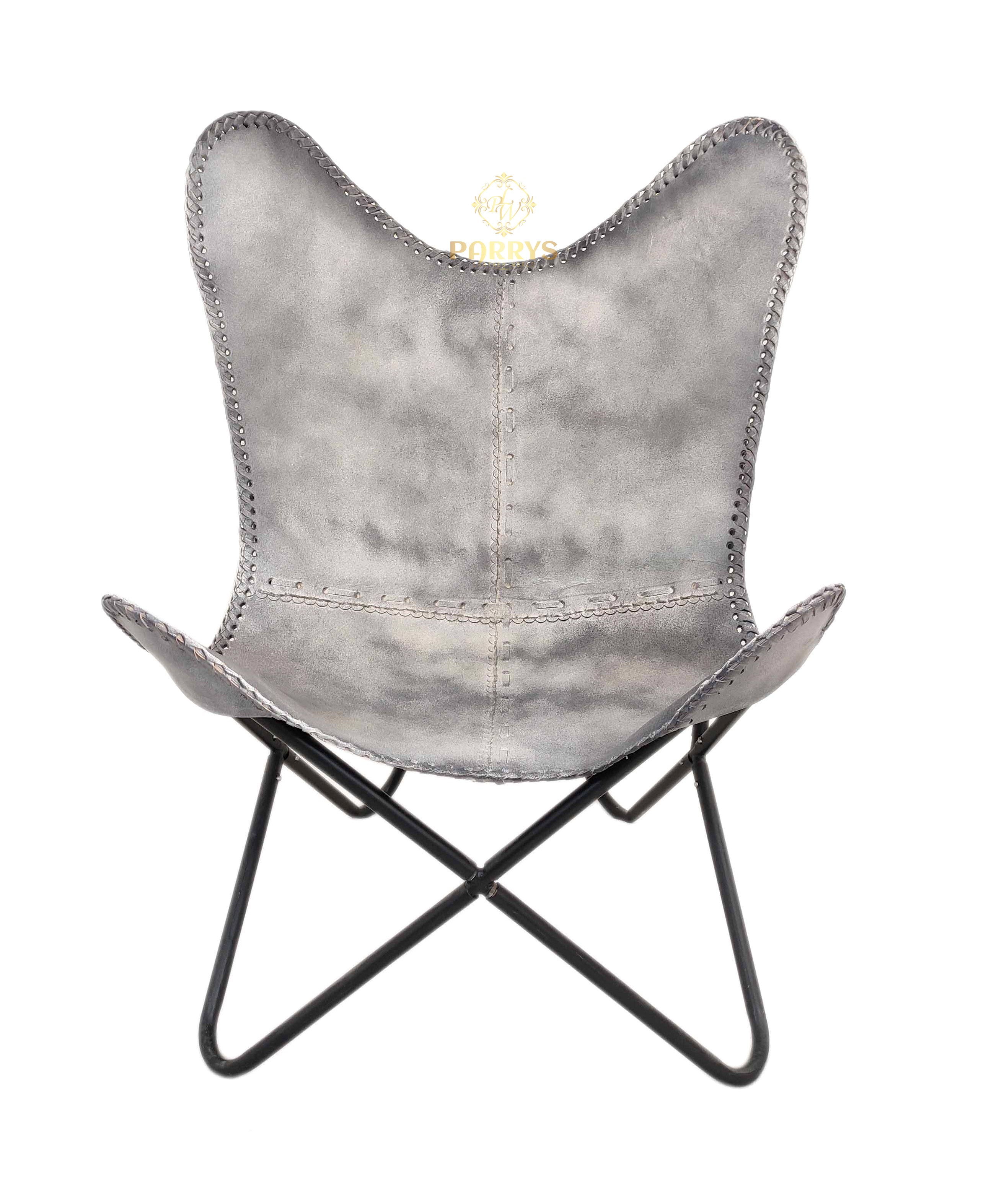 Modern sophistication meets relaxed comfort in the Silver Ash Leather Butterfly Chair. Handcrafted from premium top‑grain leather, its distinctive silver‑ash finish features subtle tonal variations that create depth and visual interest. The iconic butterfly silhouette offers a naturally cradling seat, while hand‑laced edging and precise panel stitching highlight artisan craftsmanship. A powder‑coated iron frame completes the sleek, minimalist profile with dependable stability perfect for contemporary living rooms, reading nooks, studios, and modern office lounges.