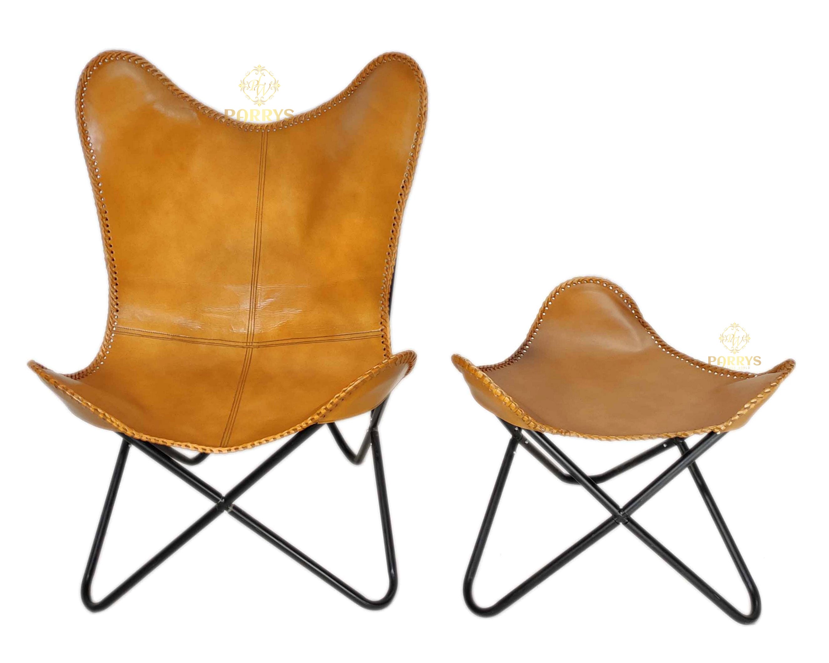 Elevate your living space with this stylish and comfortable Tan Butterfly Chair and Stool Set. Designed for both relaxation and style, this unique seating set combines the timeless, iconic butterfly chair shape with a matching, compact stool. The result is a versatile and elegant addition to any room. It's perfect for your living room, reading nook, bedroom, or a cozy corner in your office.