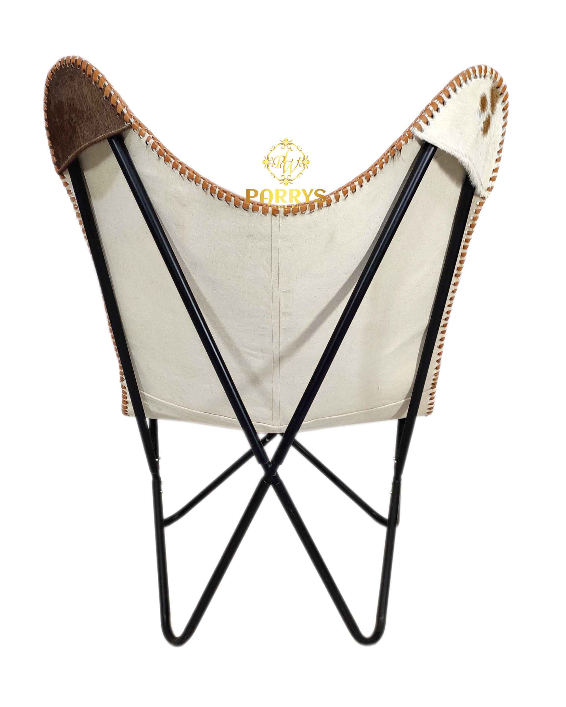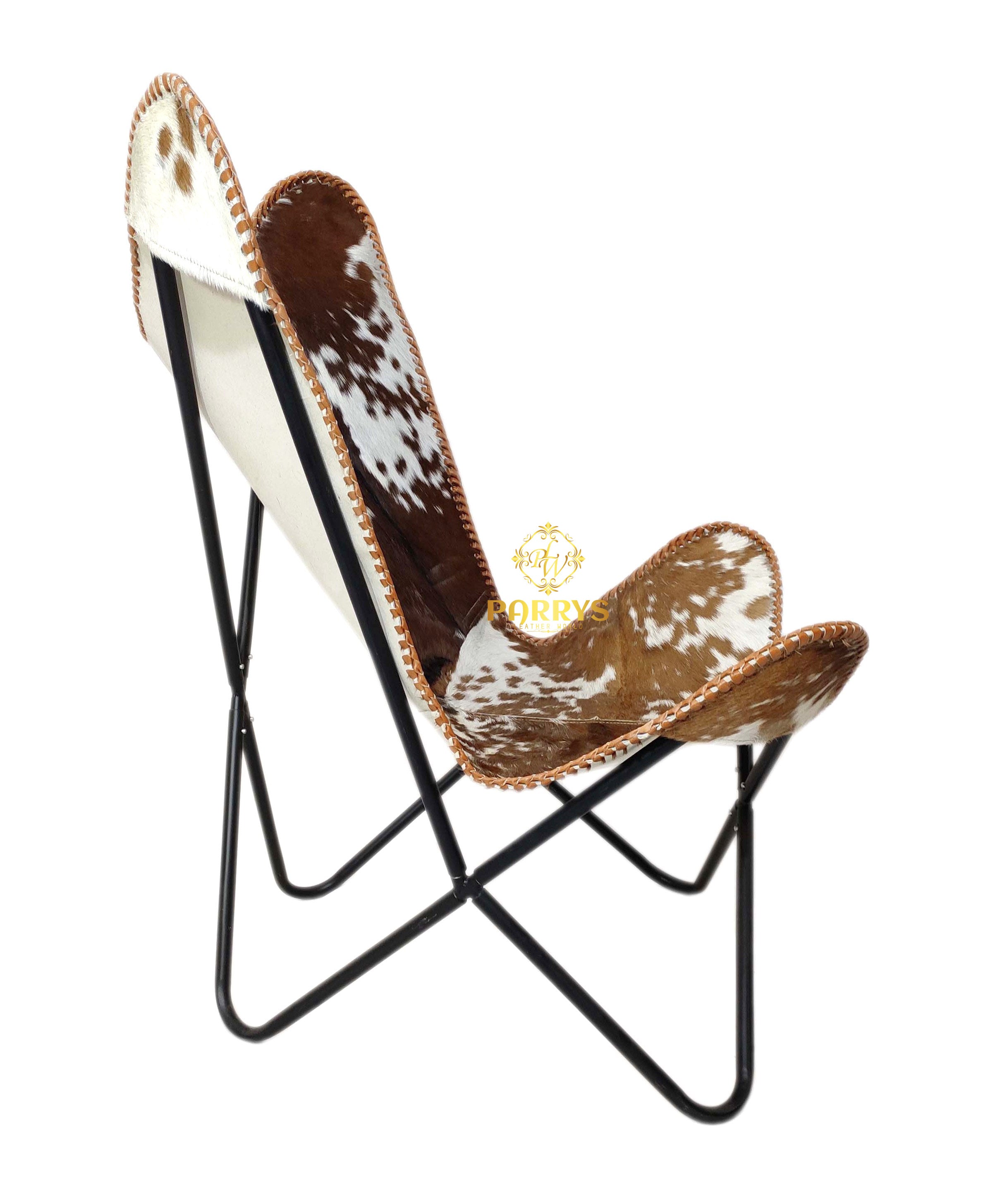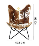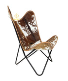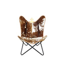 Vintage Brown & White Cowhide Leather Butterfly Chair