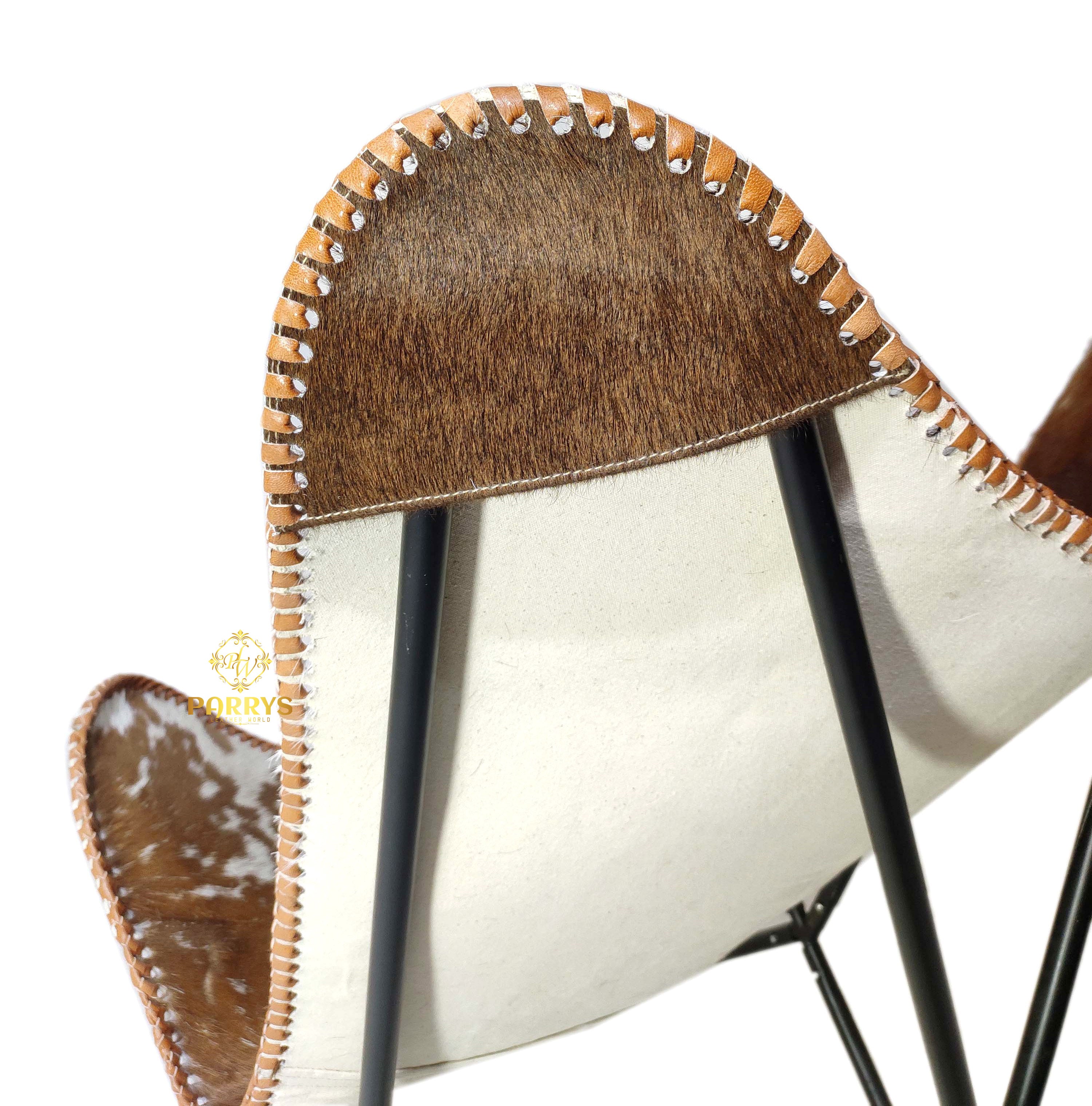 Add a touch of vintage charm to your living space with our Vintage Brown & White Cowhide Leather Butterfly Chair. Crafted from genuine Cowhide leather, this chair showcases a beautiful natural pattern in rustic brown and white tones, making each piece truly unique. The iconic butterfly frame design ensures comfort and style, while the rich texture of the Cowhide leather adds warmth and sophistication to any room. Perfect as an accent piece for your living room, reading nook, or lounge area.
