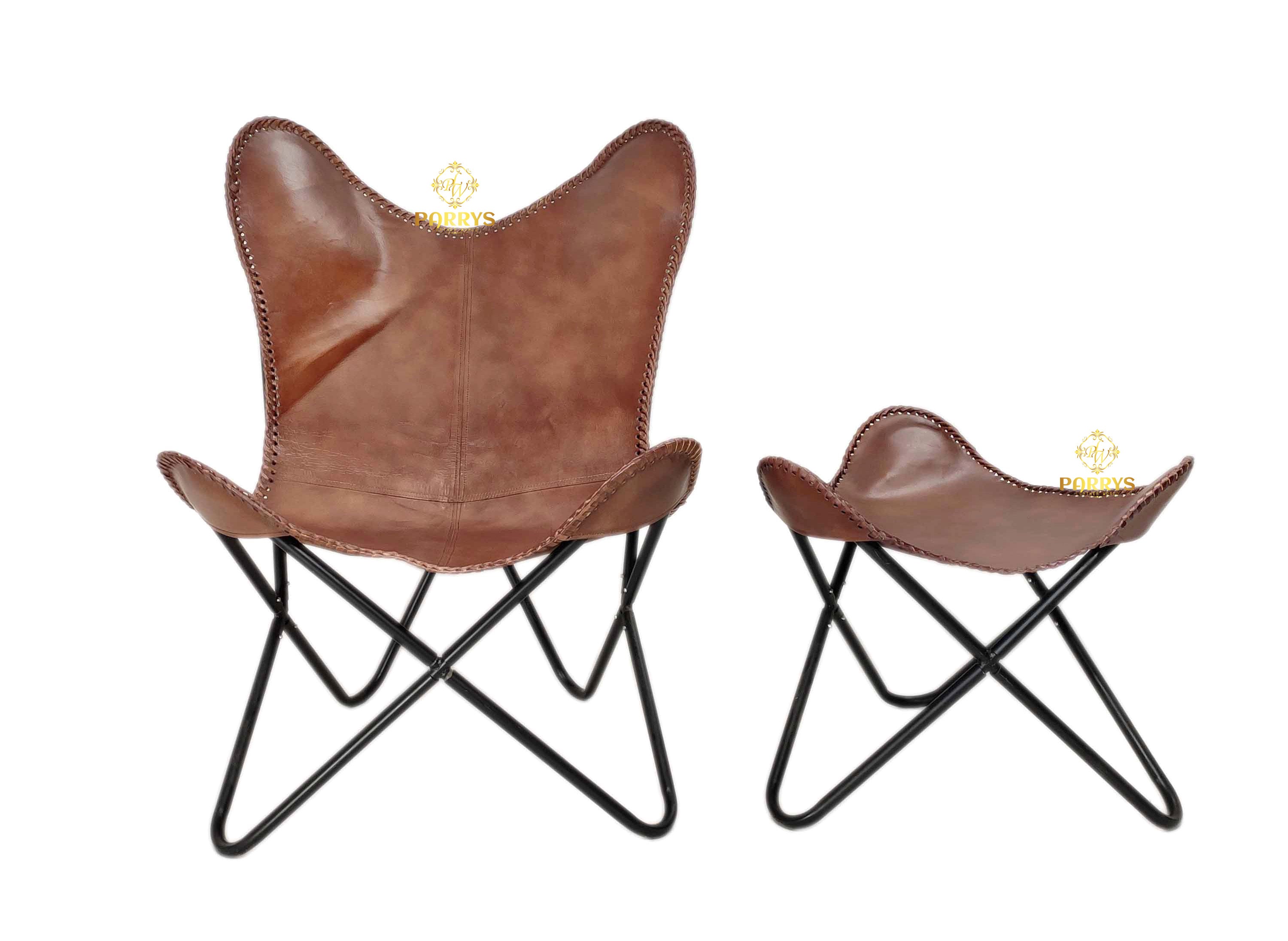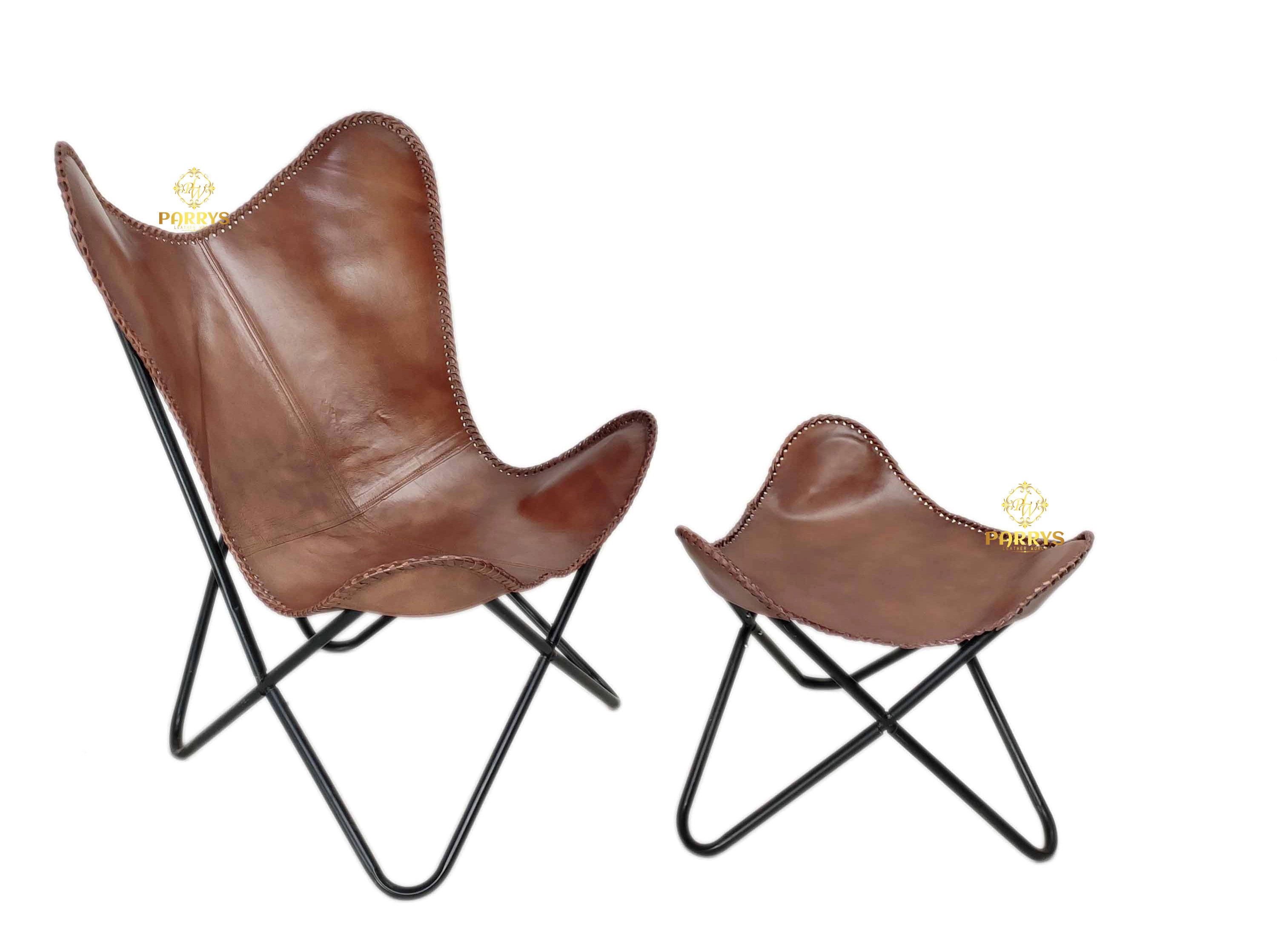 Elevate your living space with this stylish and comfortable Vintage Brown Butterfly Chair with Footrest. Designed for both relaxation and style, this unique seating set combines the timeless, iconic butterfly chair shape with a matching, compact footrest. The result is a versatile and elegant addition to any room. It's perfect for your living room, reading nook, bedroom, or a cozy corner in your office.