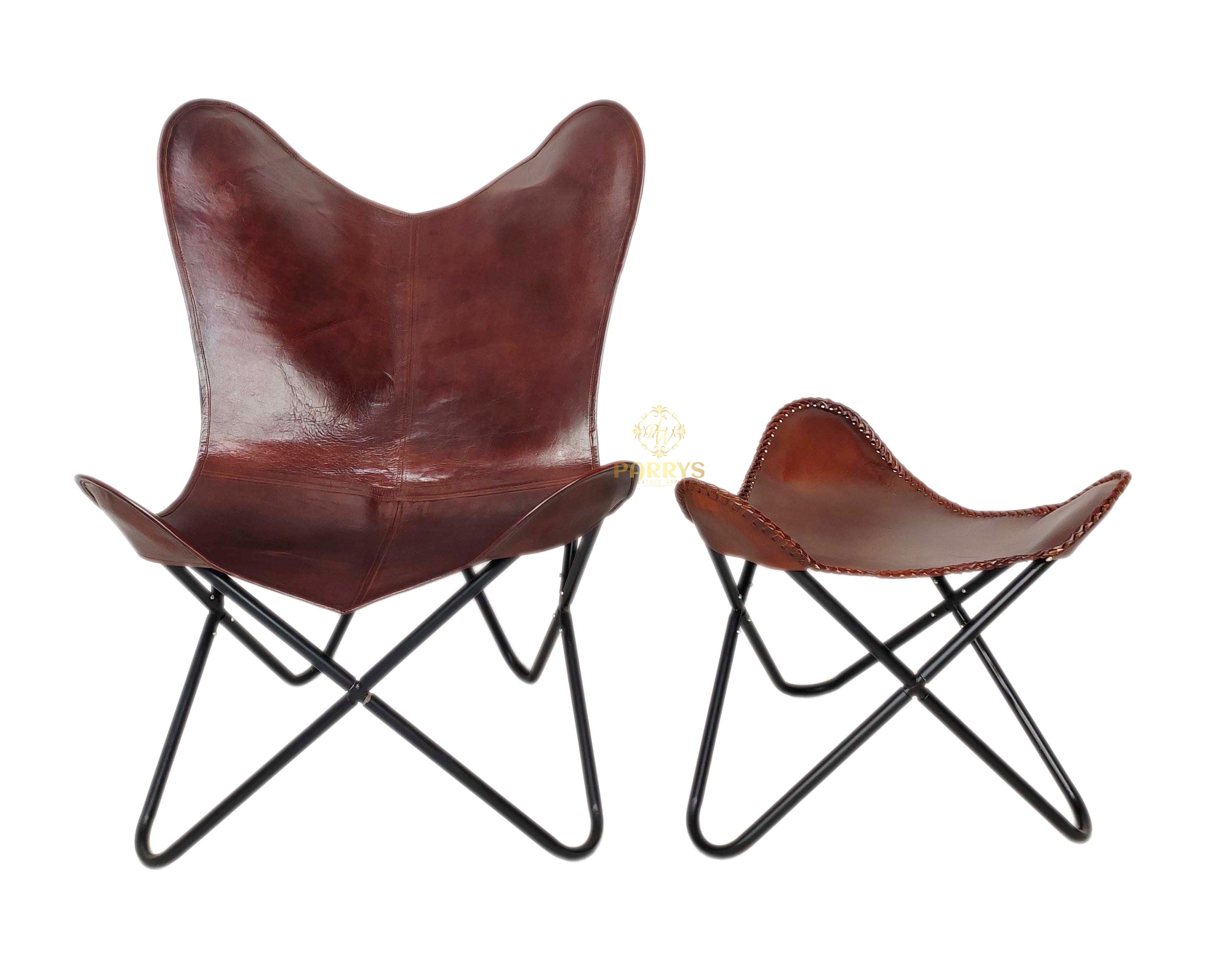 Transform any space with the Vintage Chocolate Brown Leather Butterfly Chair with Ottoman, where luxurious comfort meets mid-century elegance. Upholstered in rich chocolate brown top-grain leather, this chair-and-ottoman duo offers a supple, inviting seat that gracefully contours to your body. The minimalist powder-coated iron frame provides sturdy support and a sleek silhouette, making it an eye-catching focal point in living rooms, home offices, or reading nooks. Hand-stitched seams and a weathered patina enhance the authentic vintage appeal, ensuring this set matures beautifully over time.
