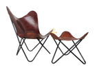 Vintage Chocolate Brown Leather Butterfly Chair with Ottoman