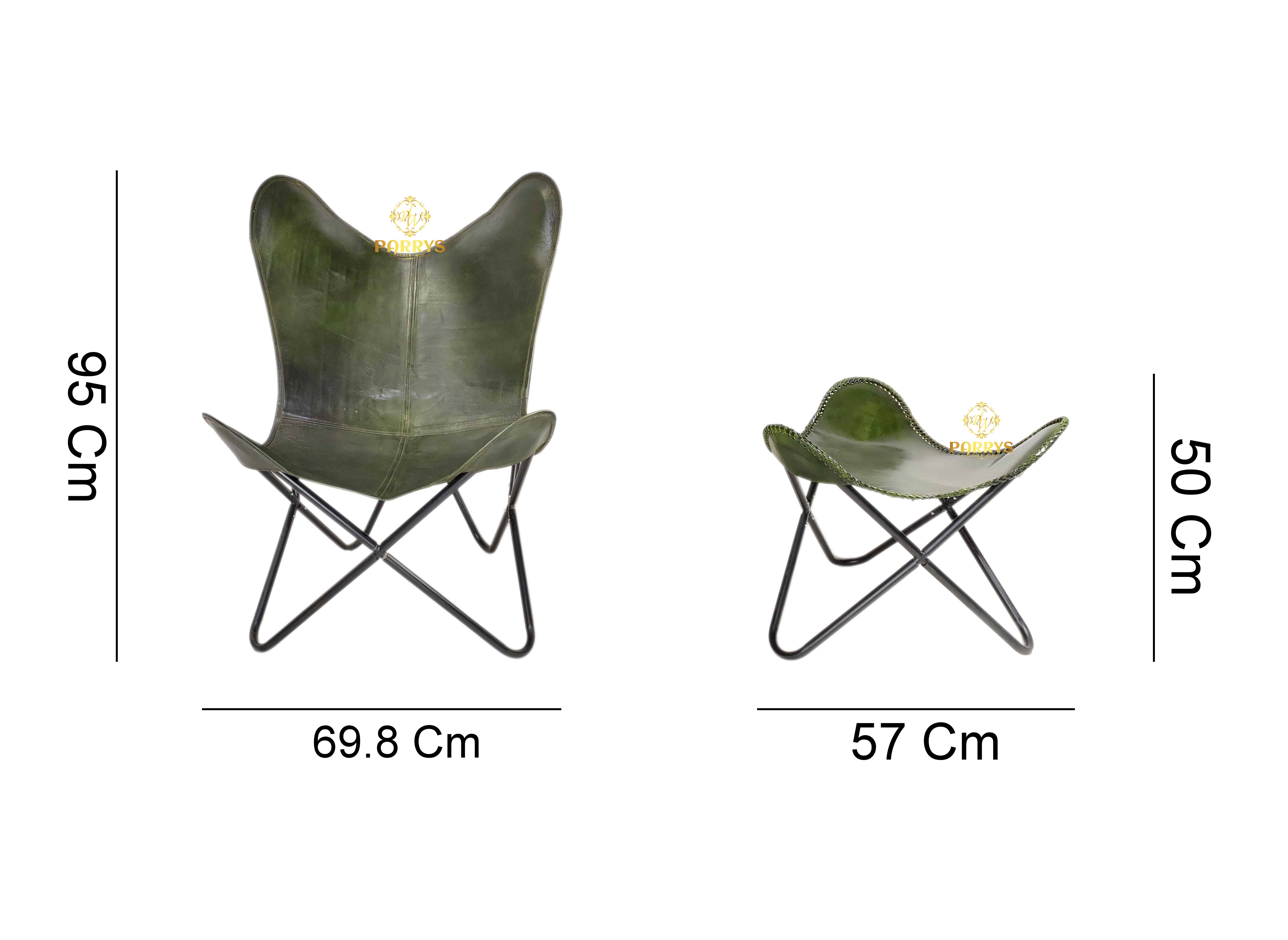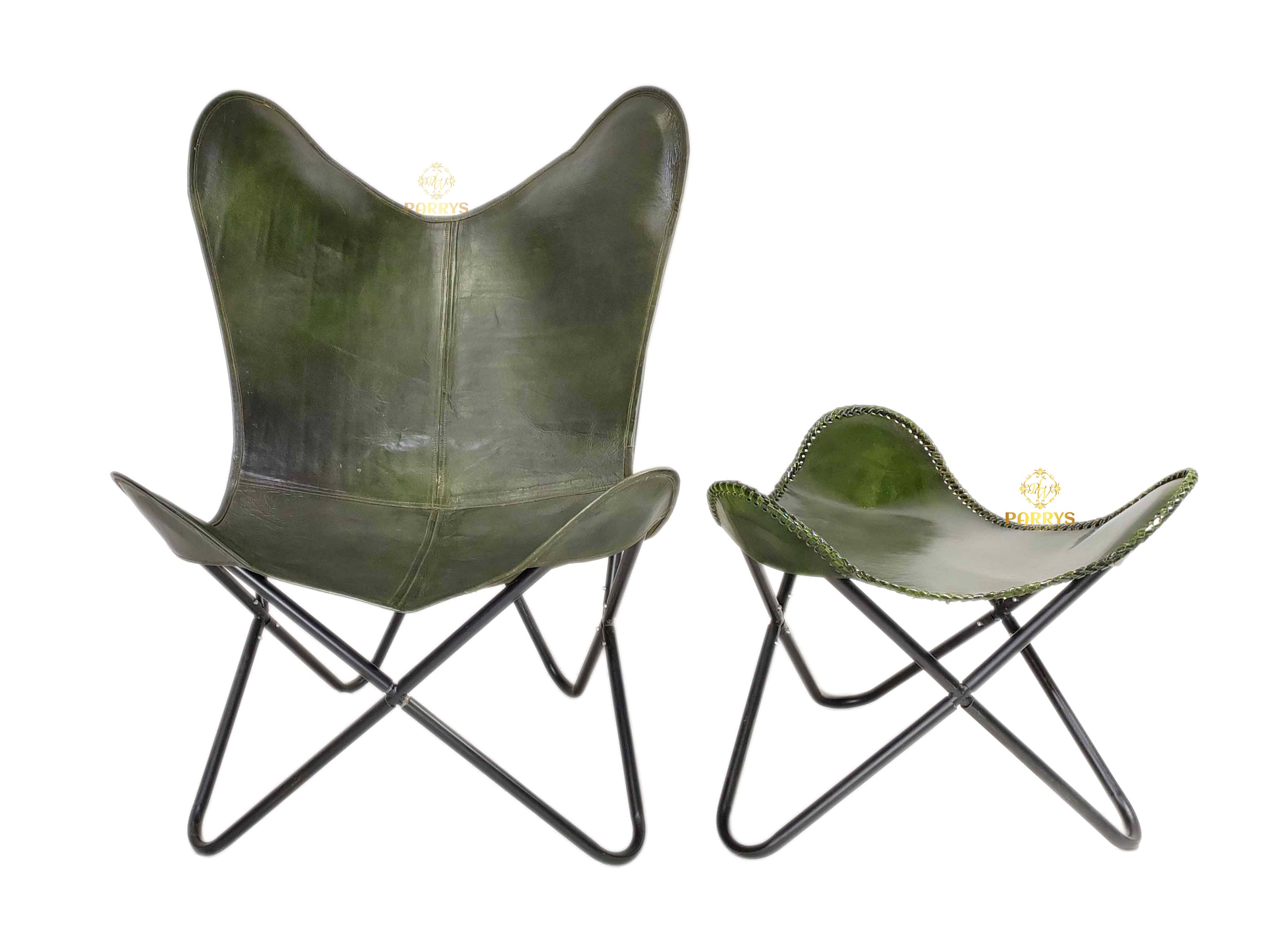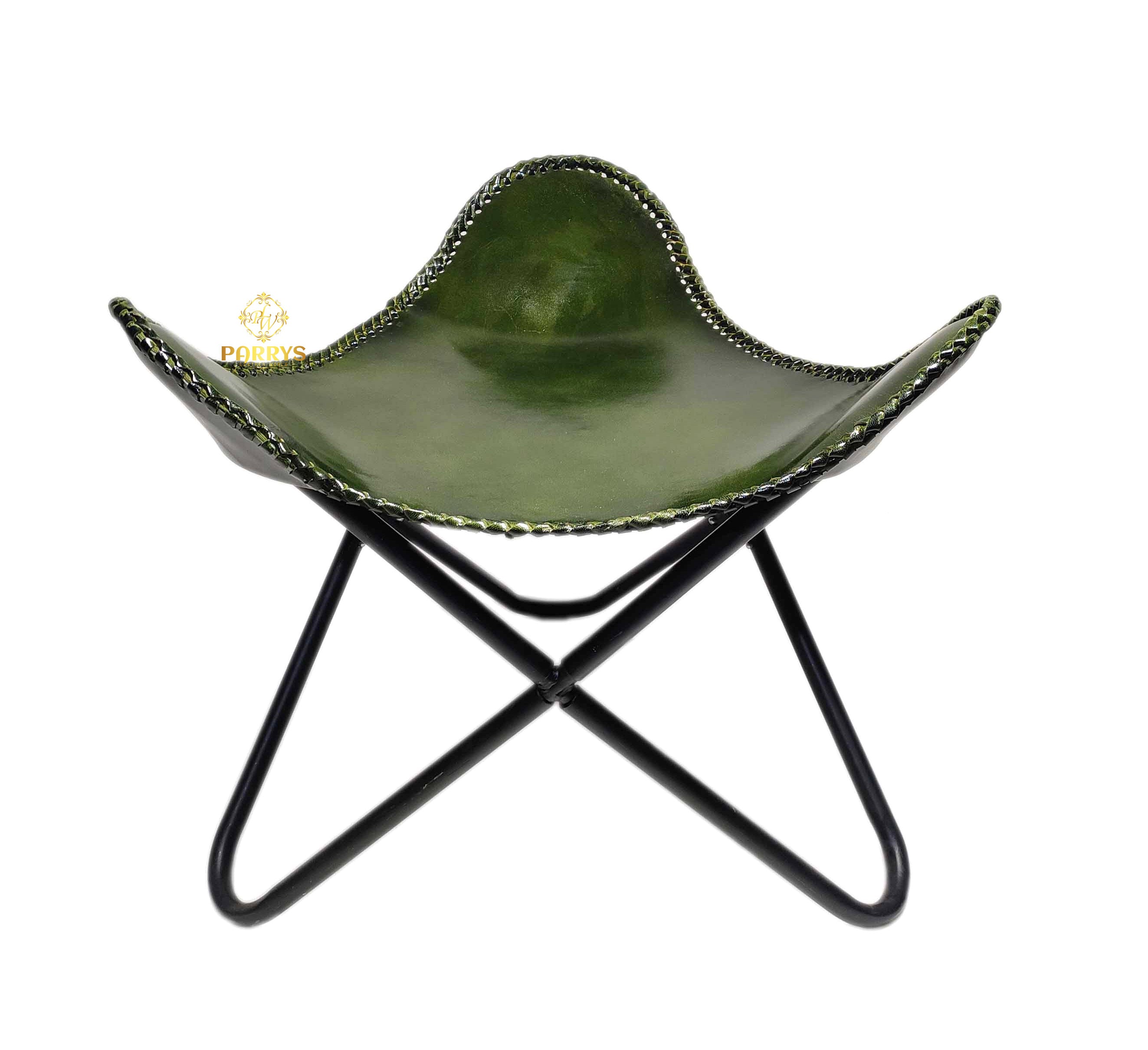 Infuse your space with a touch of refined style using the Vintage Olive Green Leather Butterfly Chair with Ottoman. Upholstered in supple olive green top-grain leather, this chair and ottoman set combines mid-century design flair with modern comfort. The gently sloping leather sling molds to your body for ergonomic support, while the minimalist powder-coated iron frame offers sturdy stability. Hand-stitched edges and a natural patina accentuate the vintage character, making this ensemble a standout accent in living rooms, studies, or sunlit reading nooks.