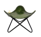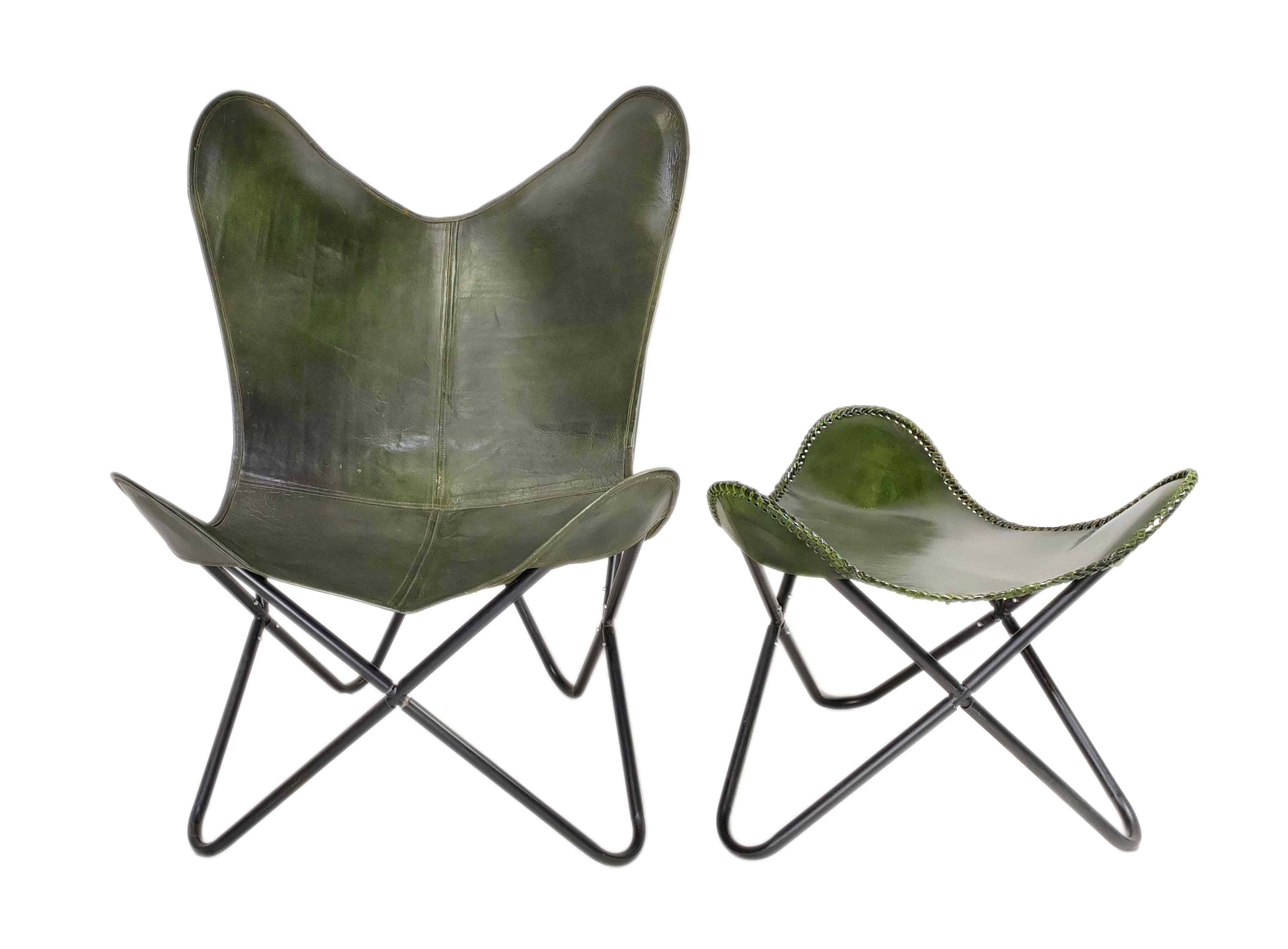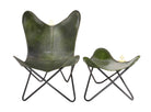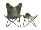 Vintage Olive Green Leather Butterfly Chair with Ottoman