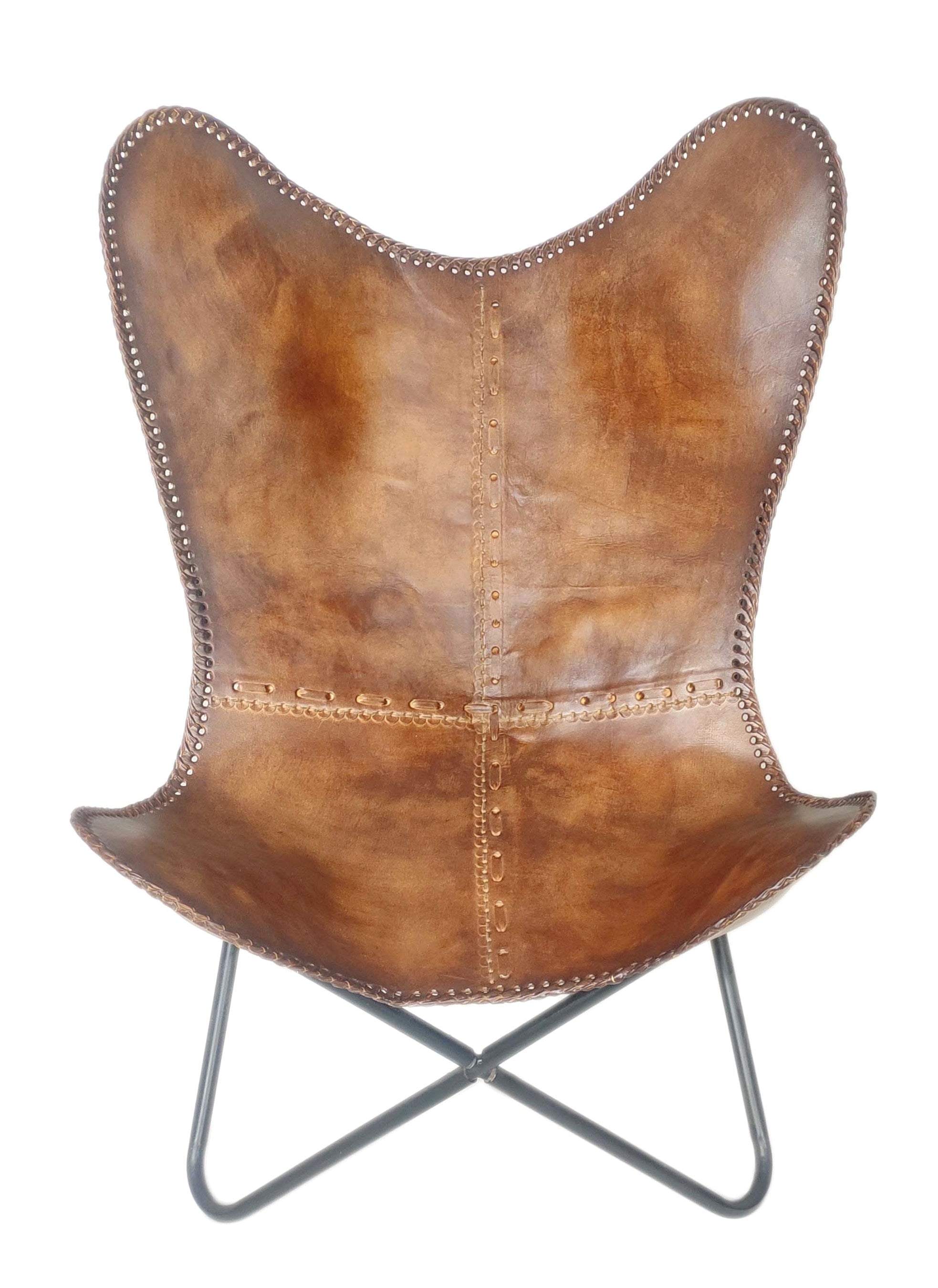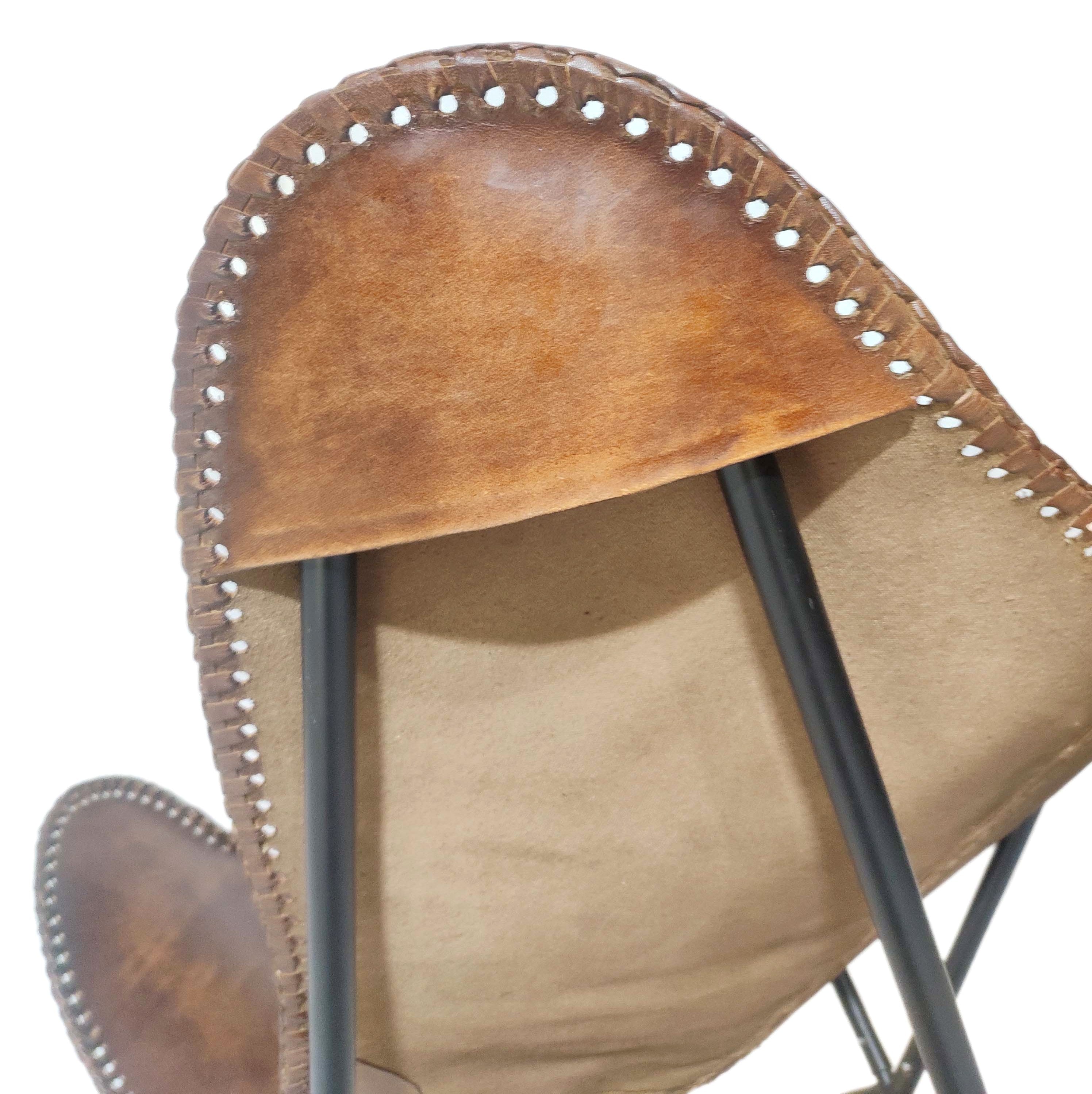 Timeless character meets relaxed comfort in the Vintage Saddle Leather Butterfly Chair. Handcrafted from premium top‑grain leather, its warm saddle finish showcases natural depth and gentle distressing that will develop a beautiful patina with everyday use. The iconic butterfly silhouette offers a naturally cradling seat, while hand‑laced edging and precise panel stitching highlight true artisan craftsmanship. A sleek, powder‑coated iron frame completes the minimalist profile with dependable stability an elevated accent for living rooms, reading nooks, studios, and modern office lounges.