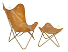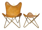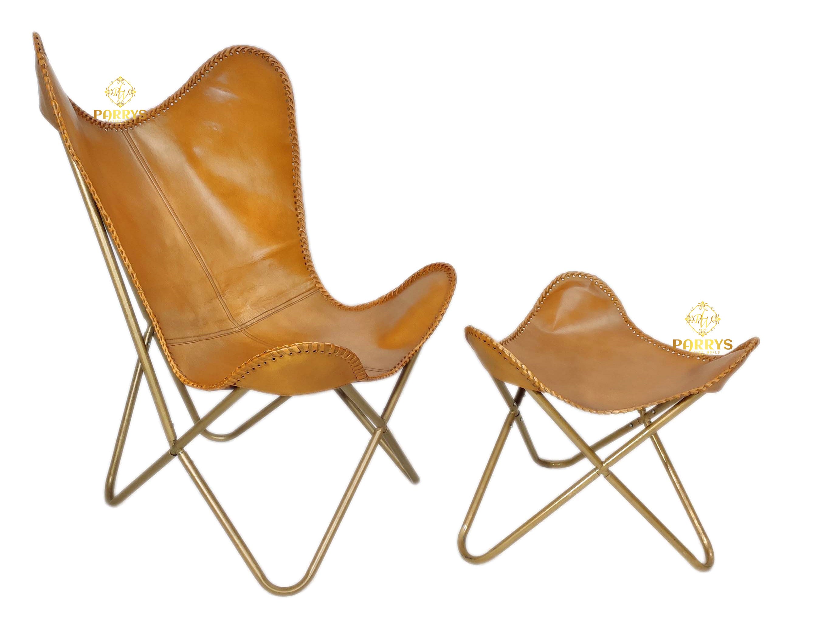 Warm, handcrafted, and lounge ready, the Caramel Stitch Leather Chair & Footstool pairs a rich caramel hue with a distinctive hand‑braided edge and warm brass tone bases. Premium top grain leather showcases natural grain character and a soft satin sheen that develops a graceful patina with everyday use. The ergonomic sling chair gently cradles the body, while the sculpted footstool supports calves and feet for full body relaxation. Clean panel seams and crossed tubular frames keep the silhouette slim and modern, making this set an easy fit for living rooms, reading corners, bedrooms, studios, and sophisticated office lounges.