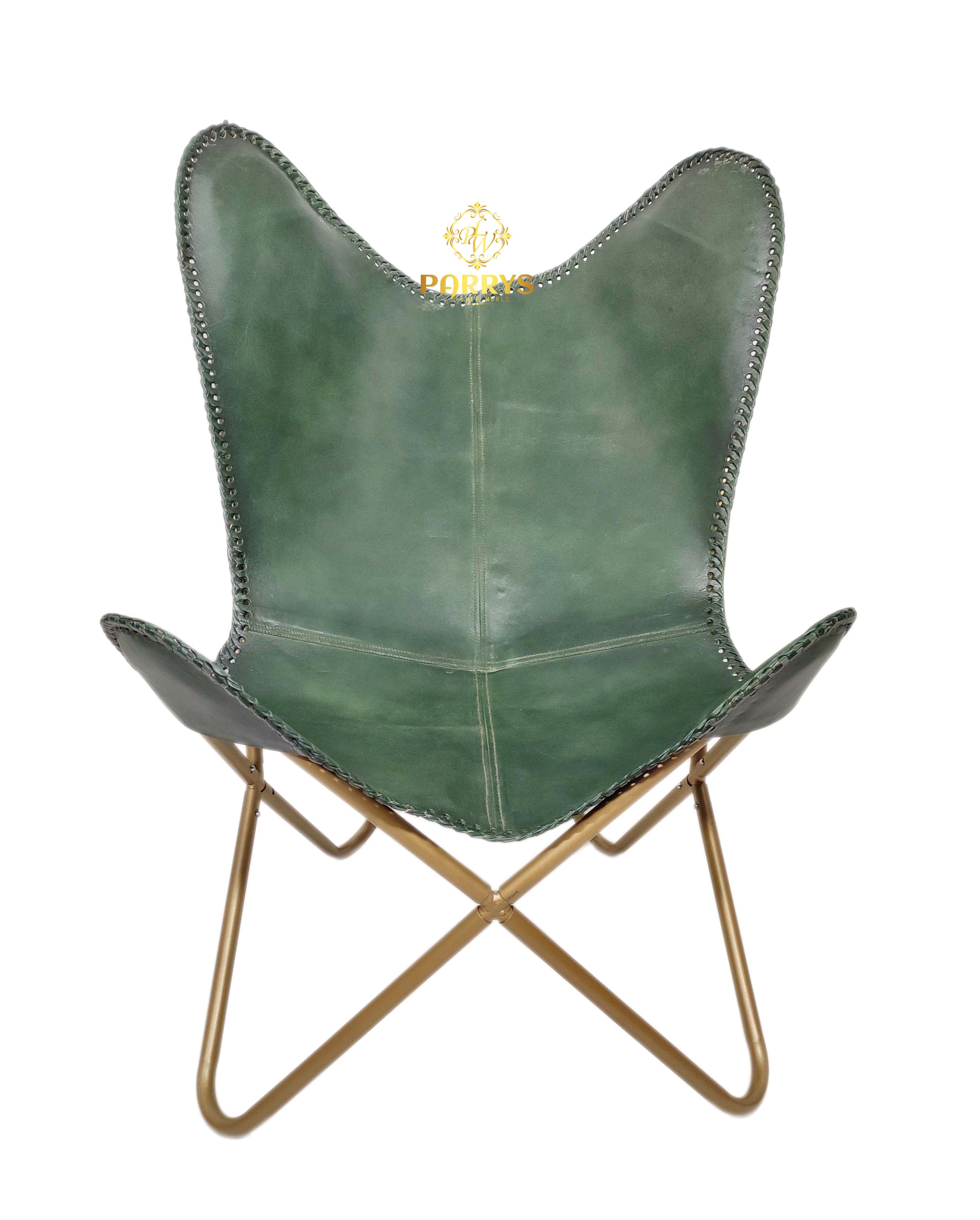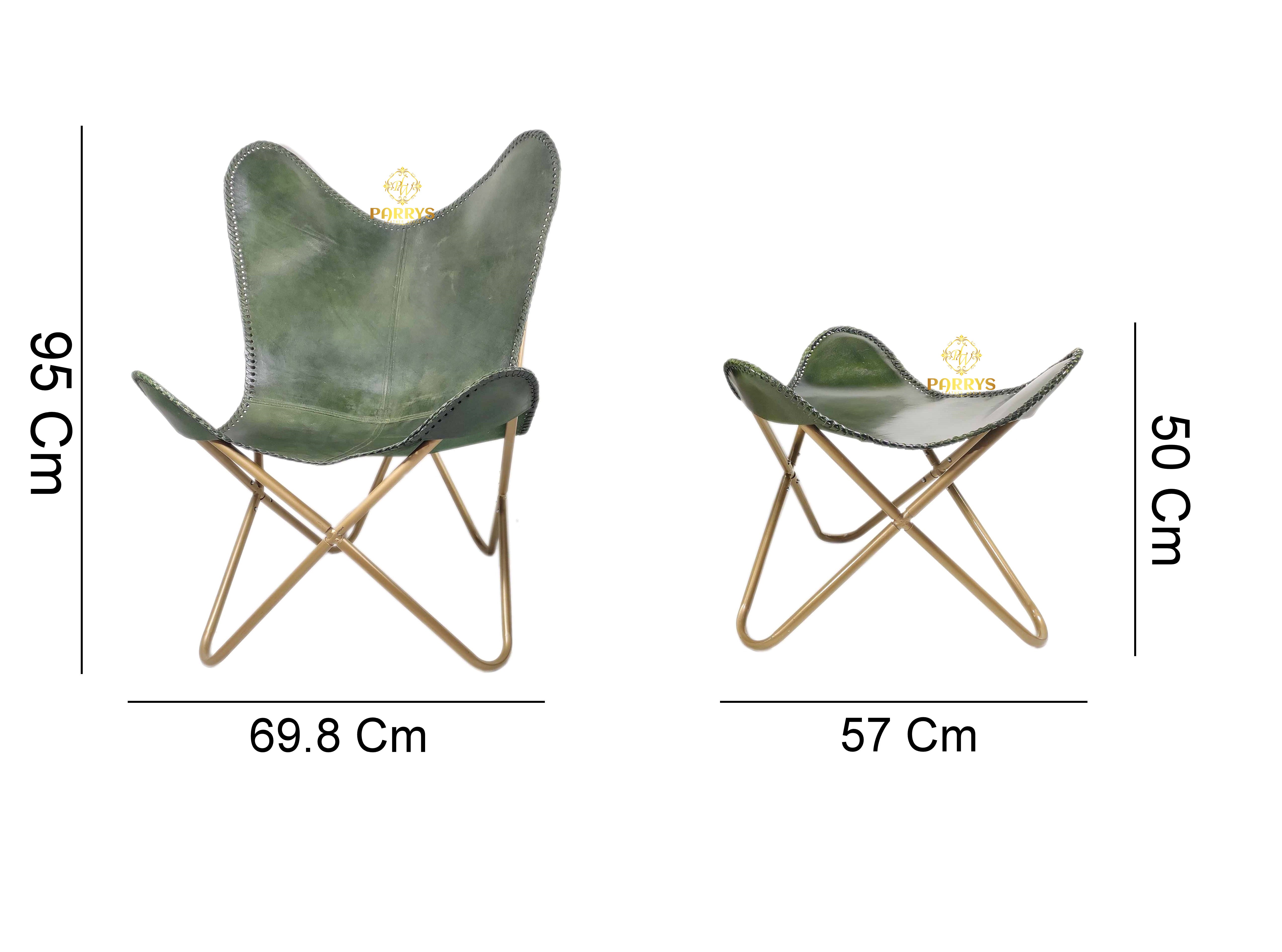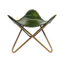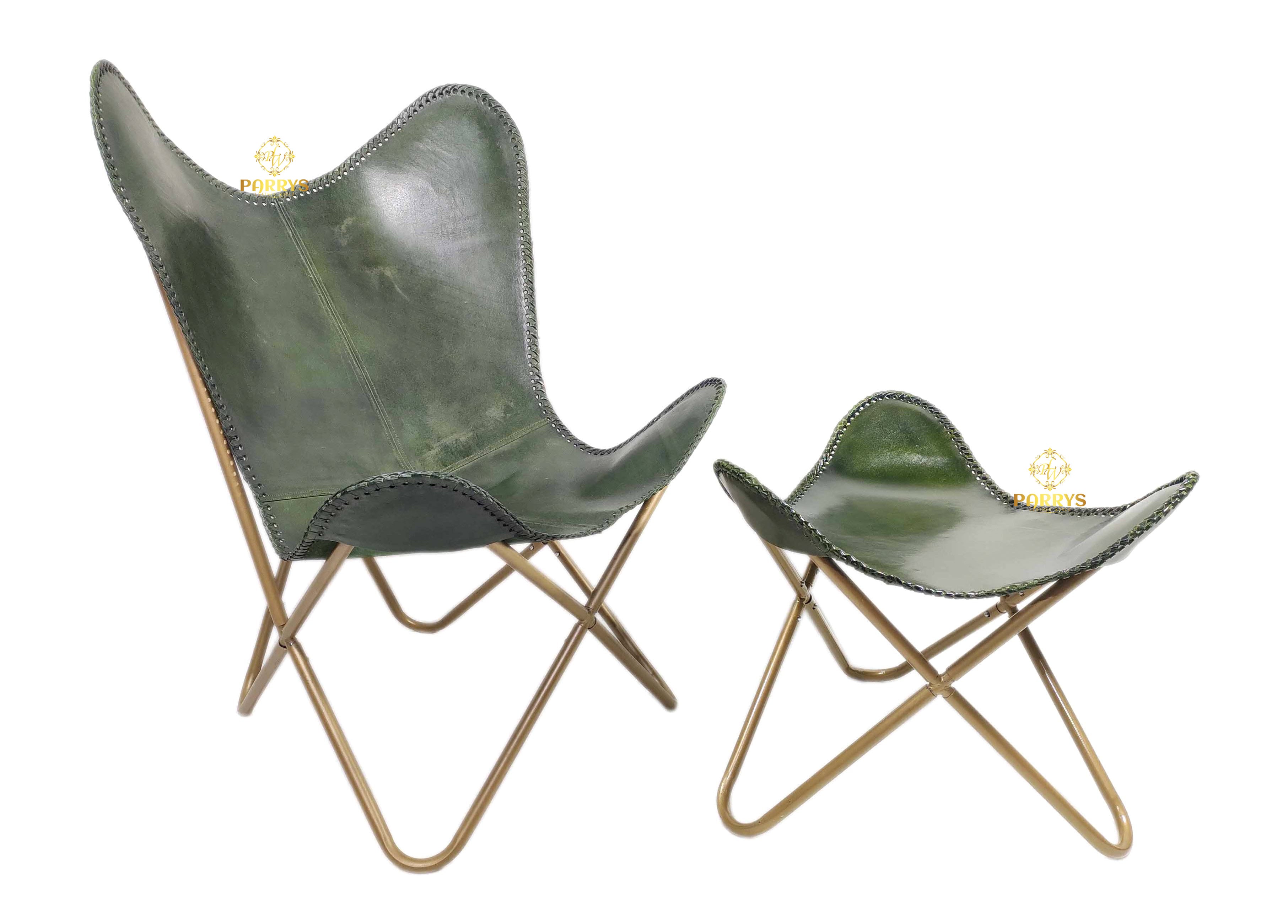 Earthy, refined, and lounge ready, the Forest Green Leather Chair & Ottoman blends a deep woodland hue with warm brass tone bases for a grounded yet modern statement. Handcrafted from premium top grain leather, both pieces show natural grain variation and a soft satin sheen that develops a graceful patina with everyday use. The ergonomic sling chair gently cradles the body, while the contoured ottoman supports calves and feet for full body relaxation. Clean panel seams, decorative edge stitching, and crossed tubular frames keep the silhouette slim and architectural, making this set a versatile fit for living rooms, reading corners, bedrooms, studios, and stylish office lounges.