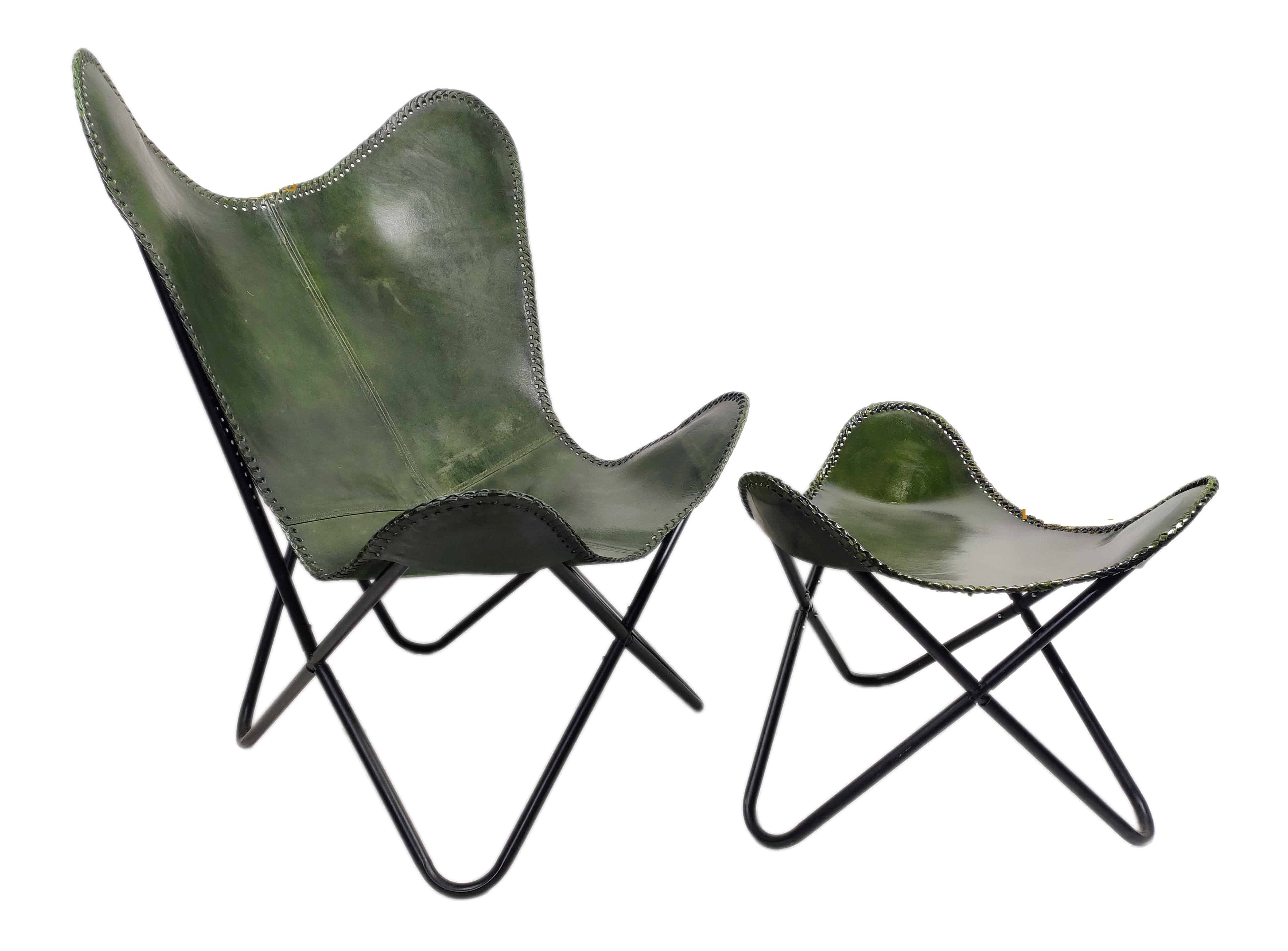 Elevate your living space with this stylish and comfortable Green Butterfly Chair and Stool Set. Designed for both relaxation and style, this unique seating set combines the timeless, iconic butterfly chair shape with a matching, compact stool. The result is a versatile and elegant addition to any room. It's perfect for your living room, reading nook, bedroom, or a cozy corner in your office.
