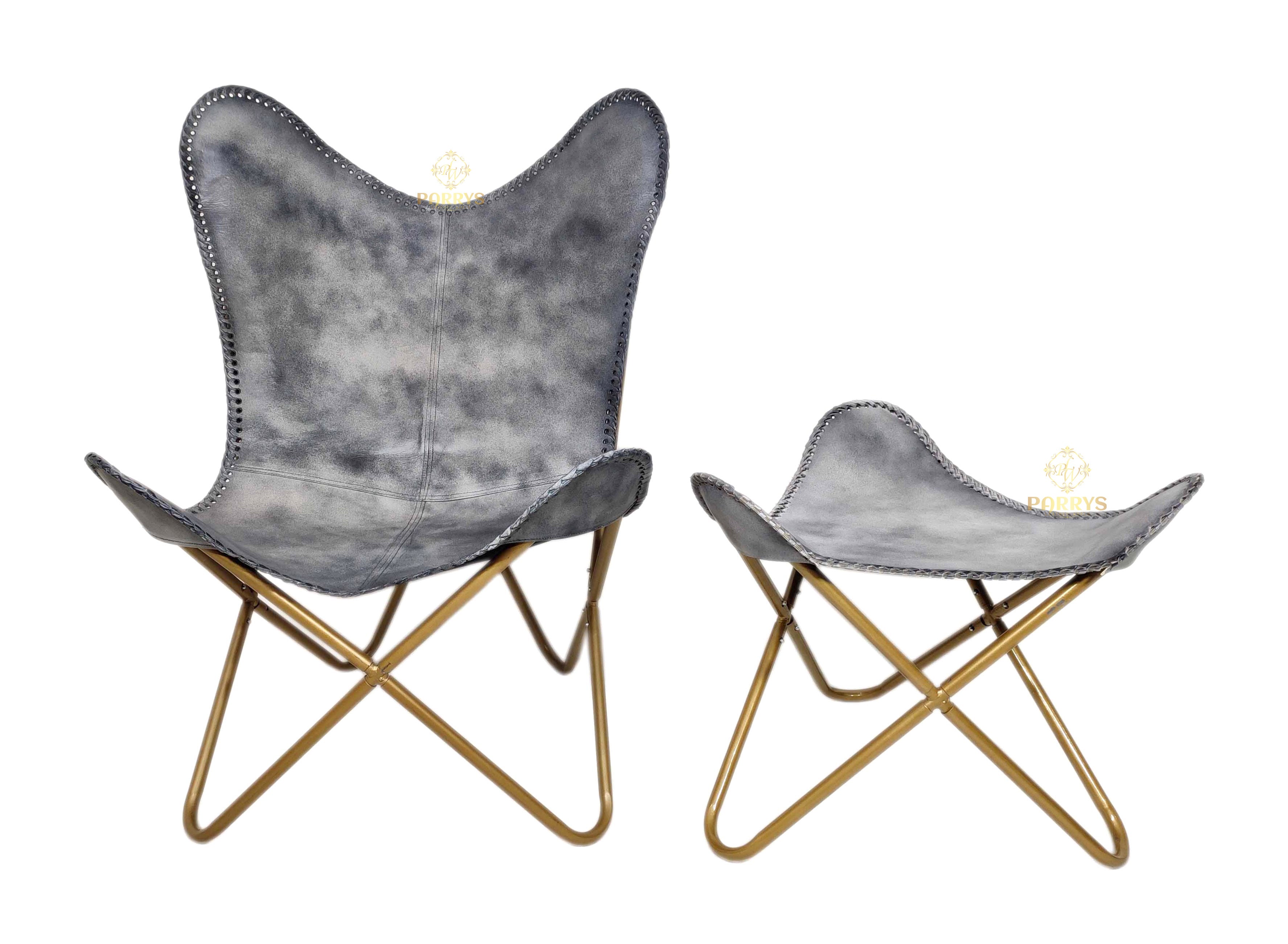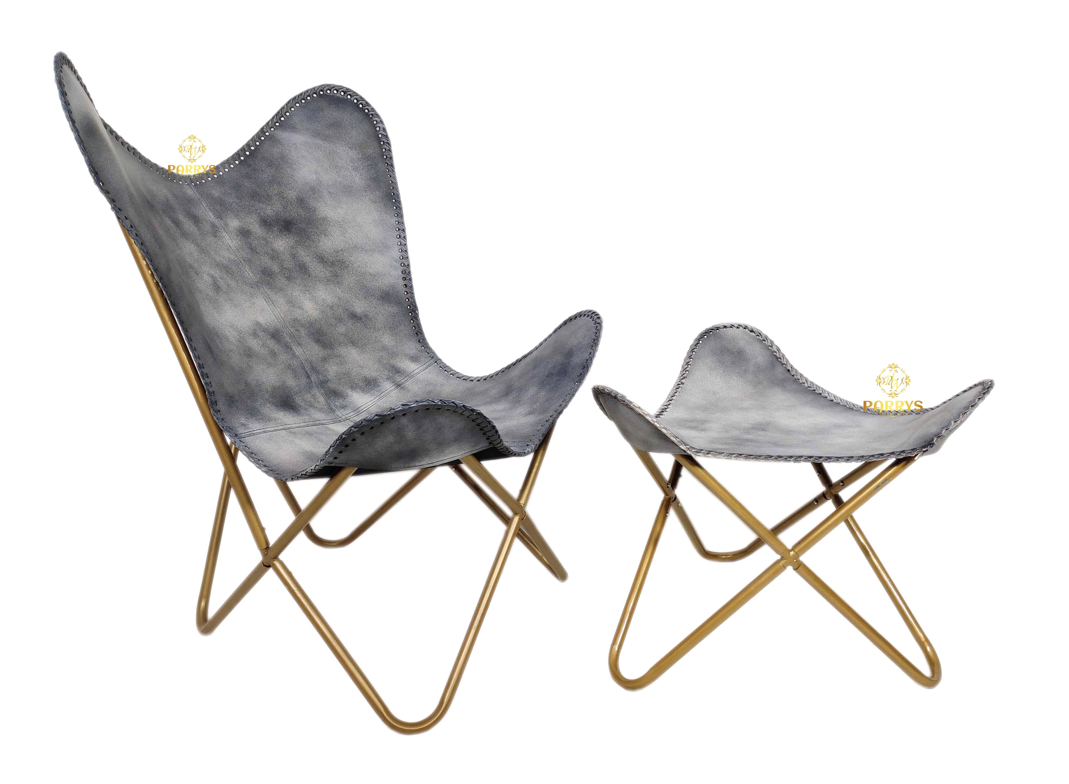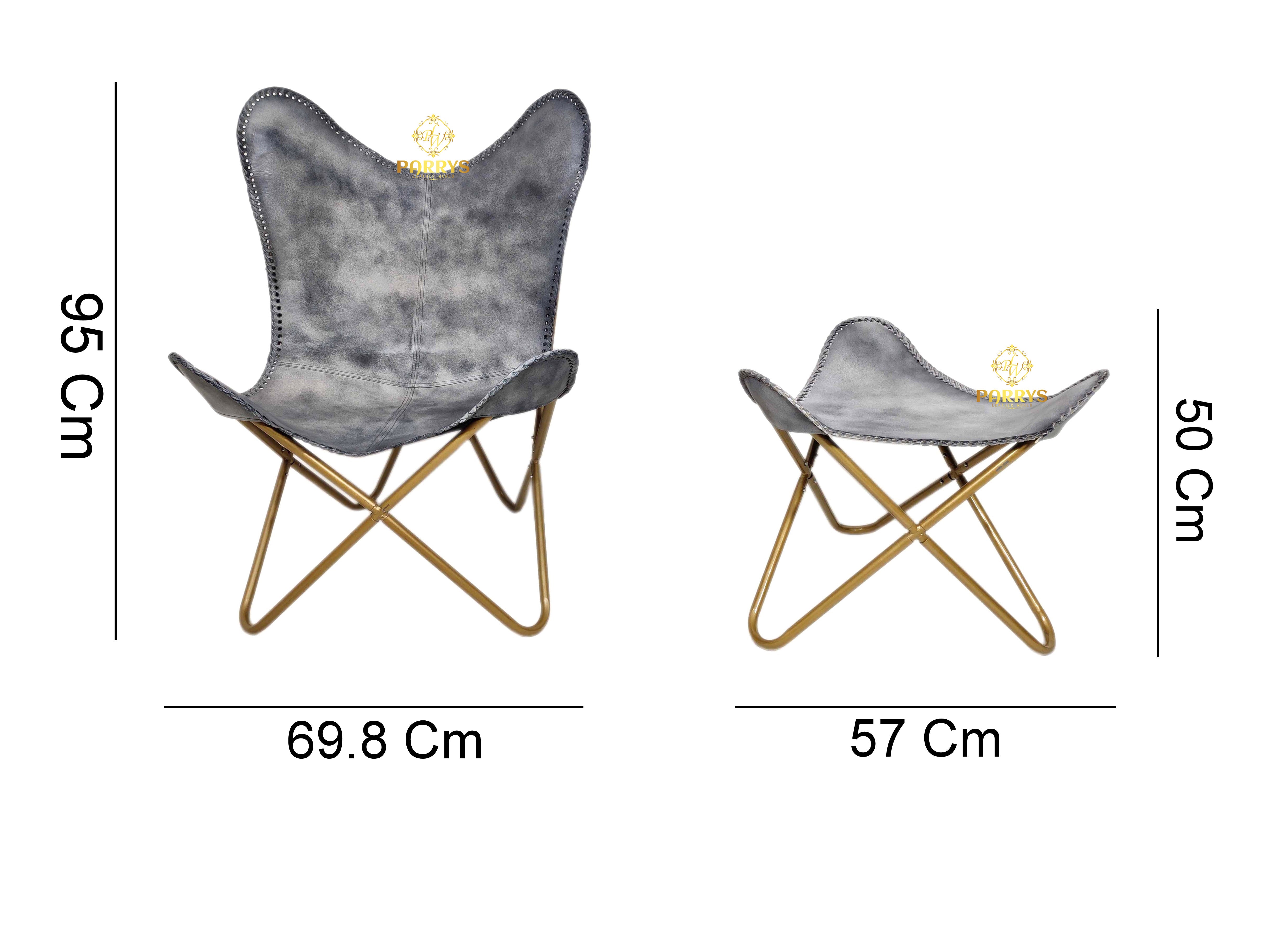 Calm, modern, and lounge ready, the Lunar Grey Leather Relax Set pairs a softly marbled lunar‑grey finish with warm brass tone bases for an elevated contrast. Handcrafted from premium top grain leather, both pieces show subtle clouding and a gentle satin sheen that will develop a graceful patina with everyday use. The ergonomic sling chair naturally cradles the body, while the sculpted ottoman supports calves and feet for full body relaxation. Clean panel seams, decorative edge stitching, and crossed tubular frames keep the silhouette slim and architectural, making this set an easy fit for living rooms, reading corners, bedrooms, studios, and sophisticated office lounges.