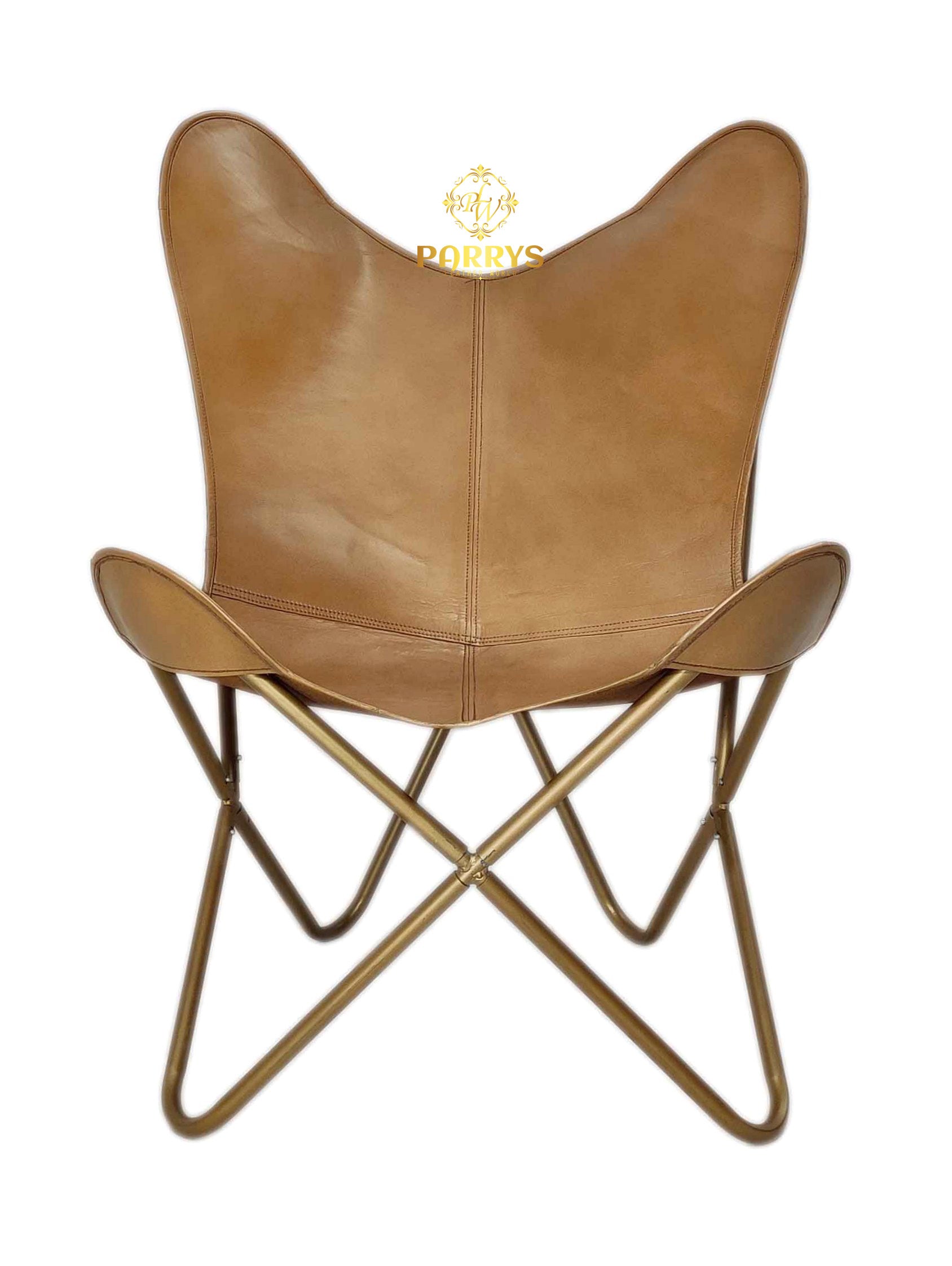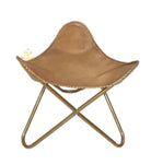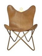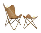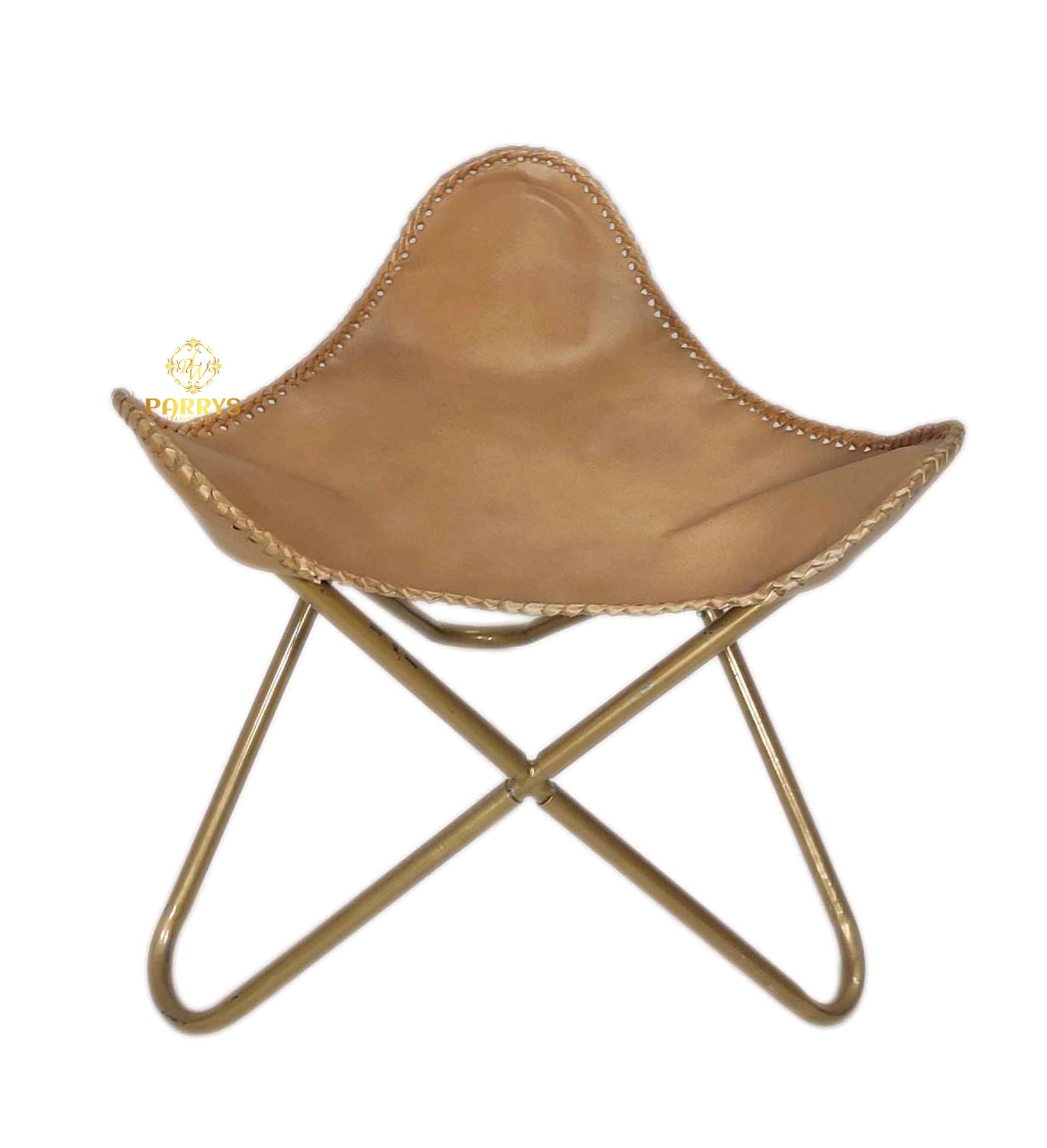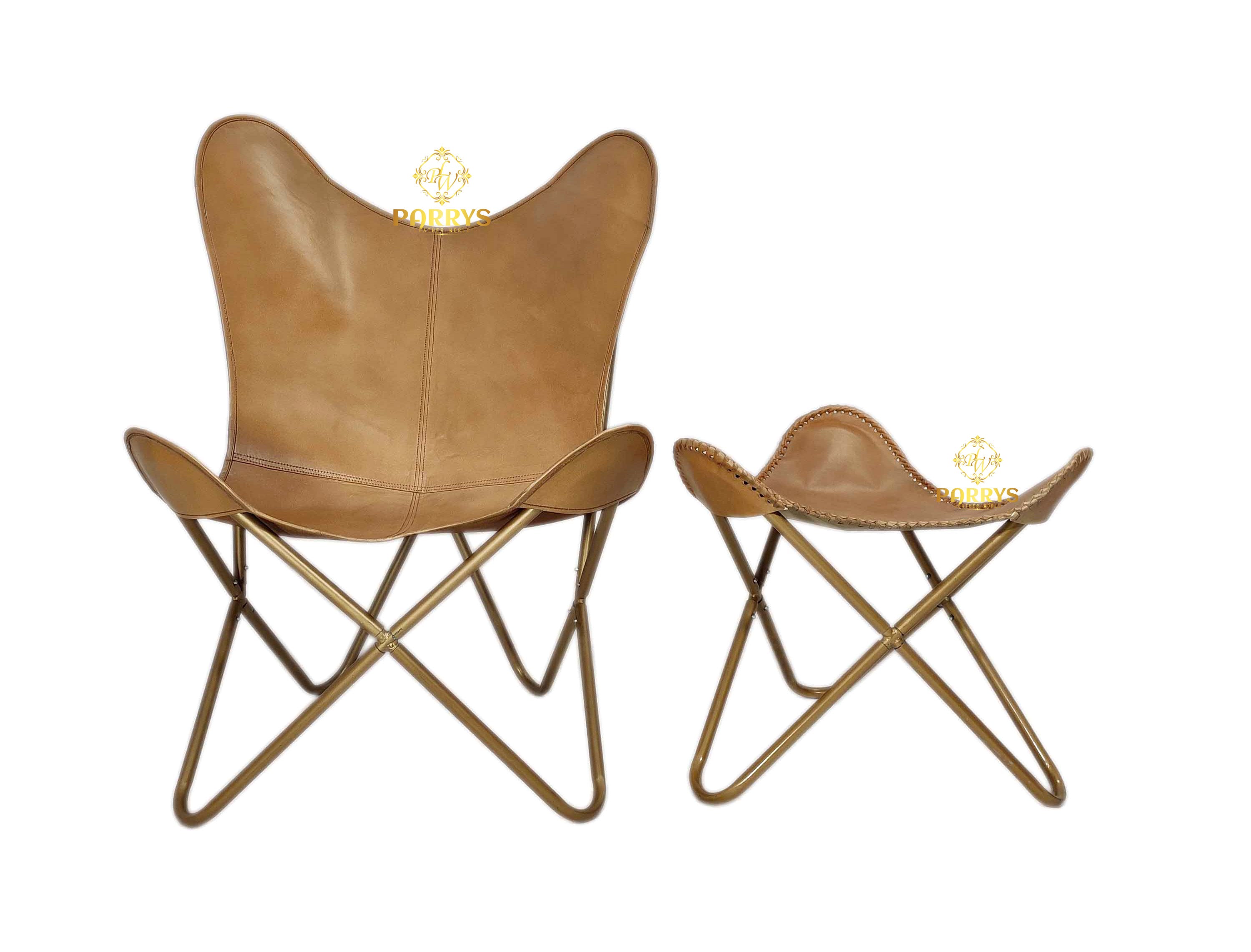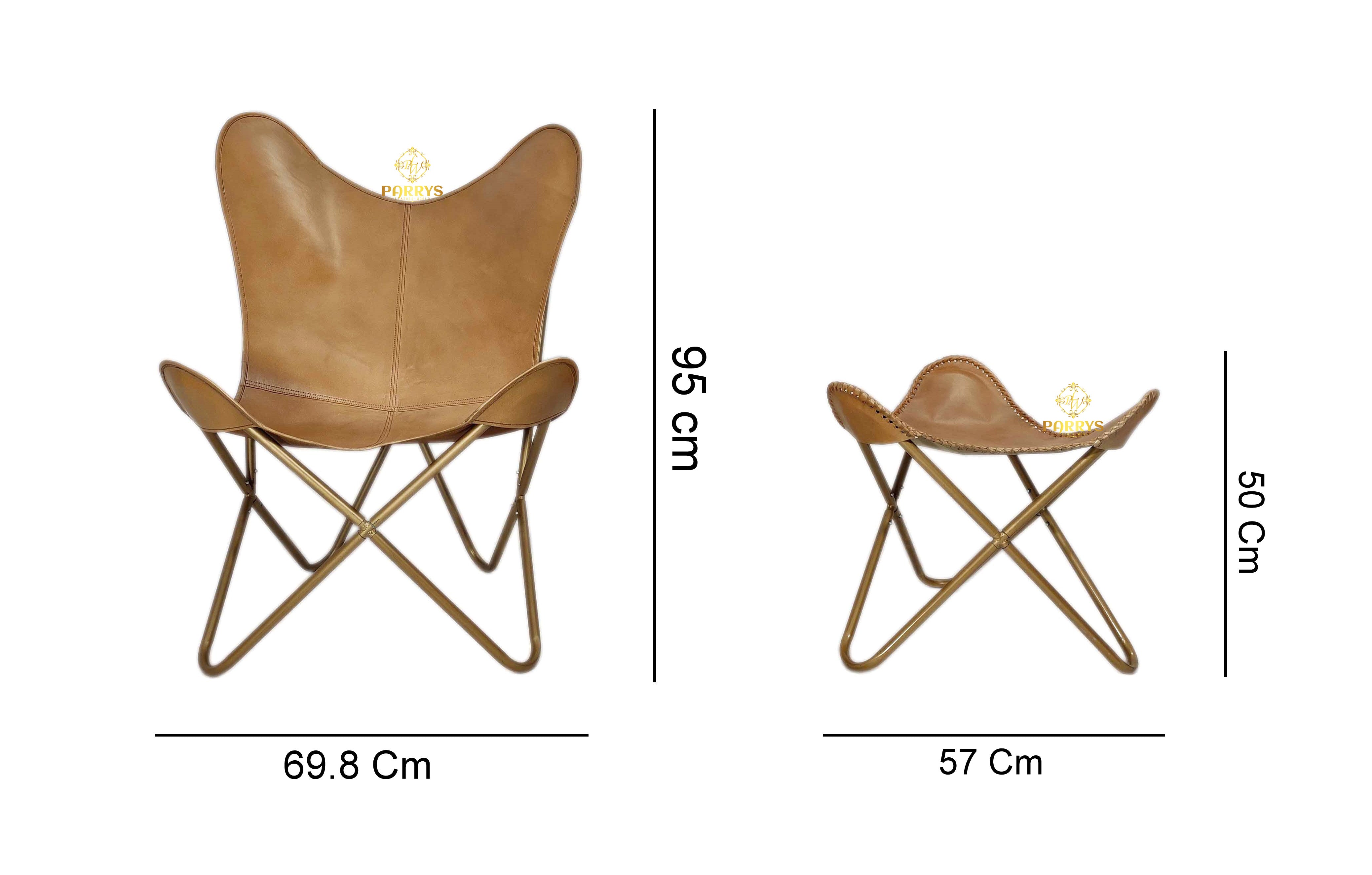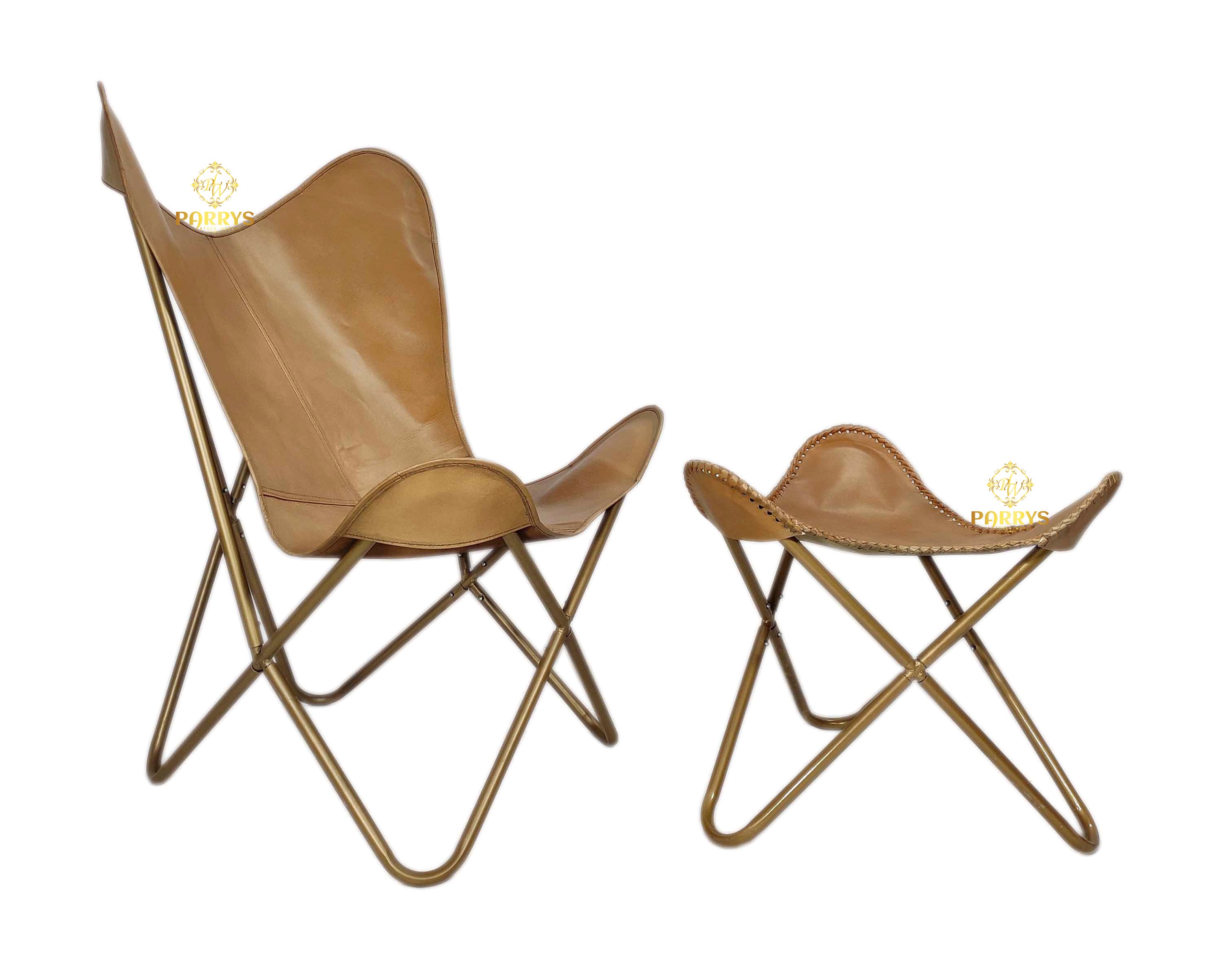 Relaxed, refined, and lounge ready, the Desert Tan Leather Chair & Footstool pairs a sun‑warmed tan finish with brass tone bases for a calm, modern statement. Handcrafted from premium top grain leather, both pieces showcase natural grain character and a soft satin sheen that develops a graceful patina over time. The ergonomic sling chair gently cradles the body, while the sculpted footstool supports calves and feet for full body ease. Clean panel seams, decorative edge stitching, and crossed tubular frames keep the silhouette slim and architectural, making this set an easy fit for living rooms, reading corners, bedrooms, studios, and elegant office lounges.
