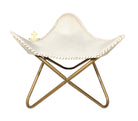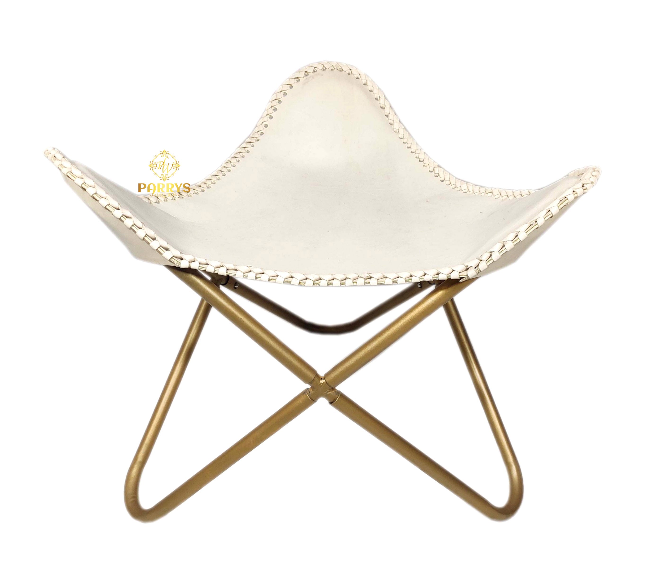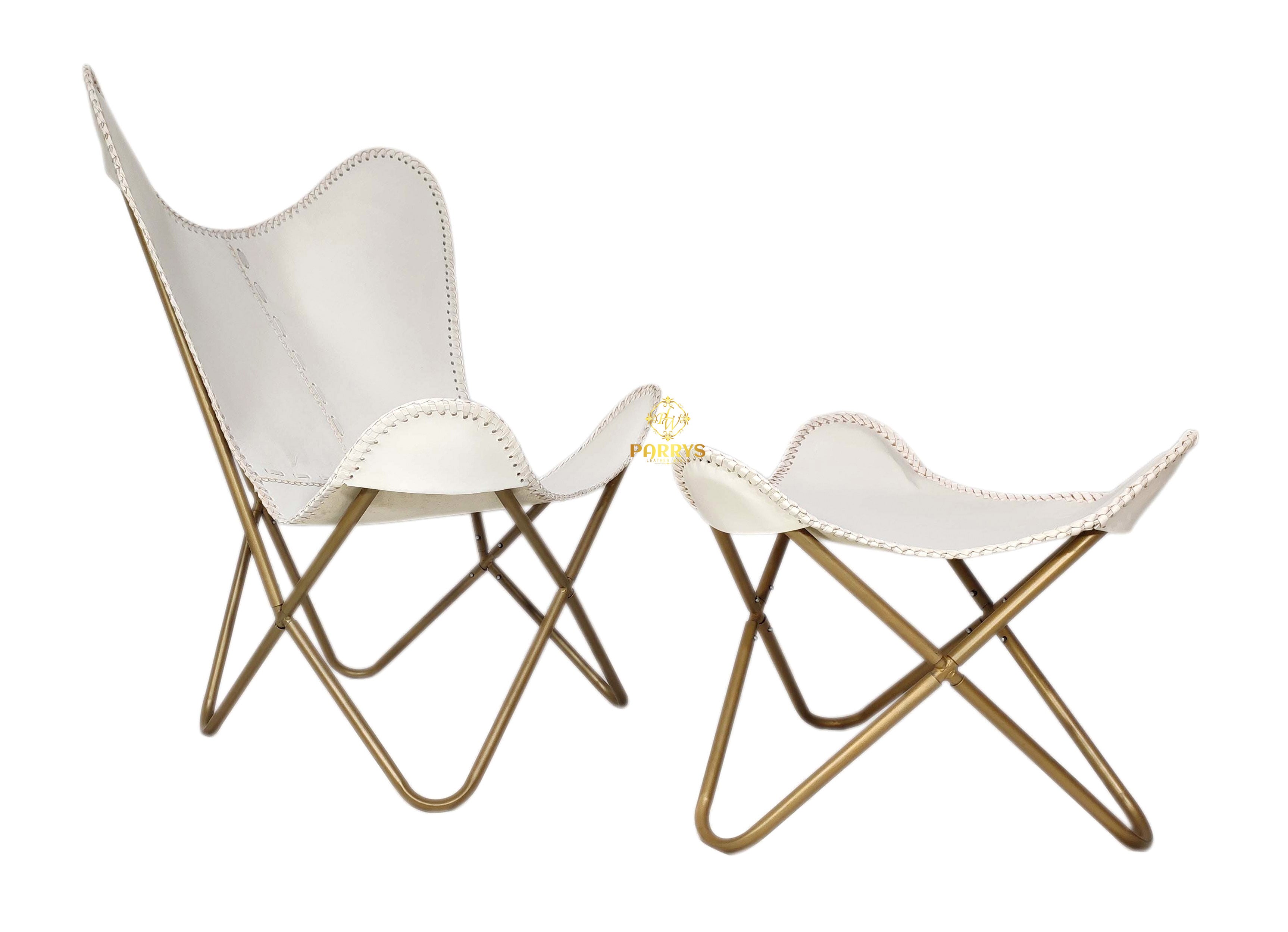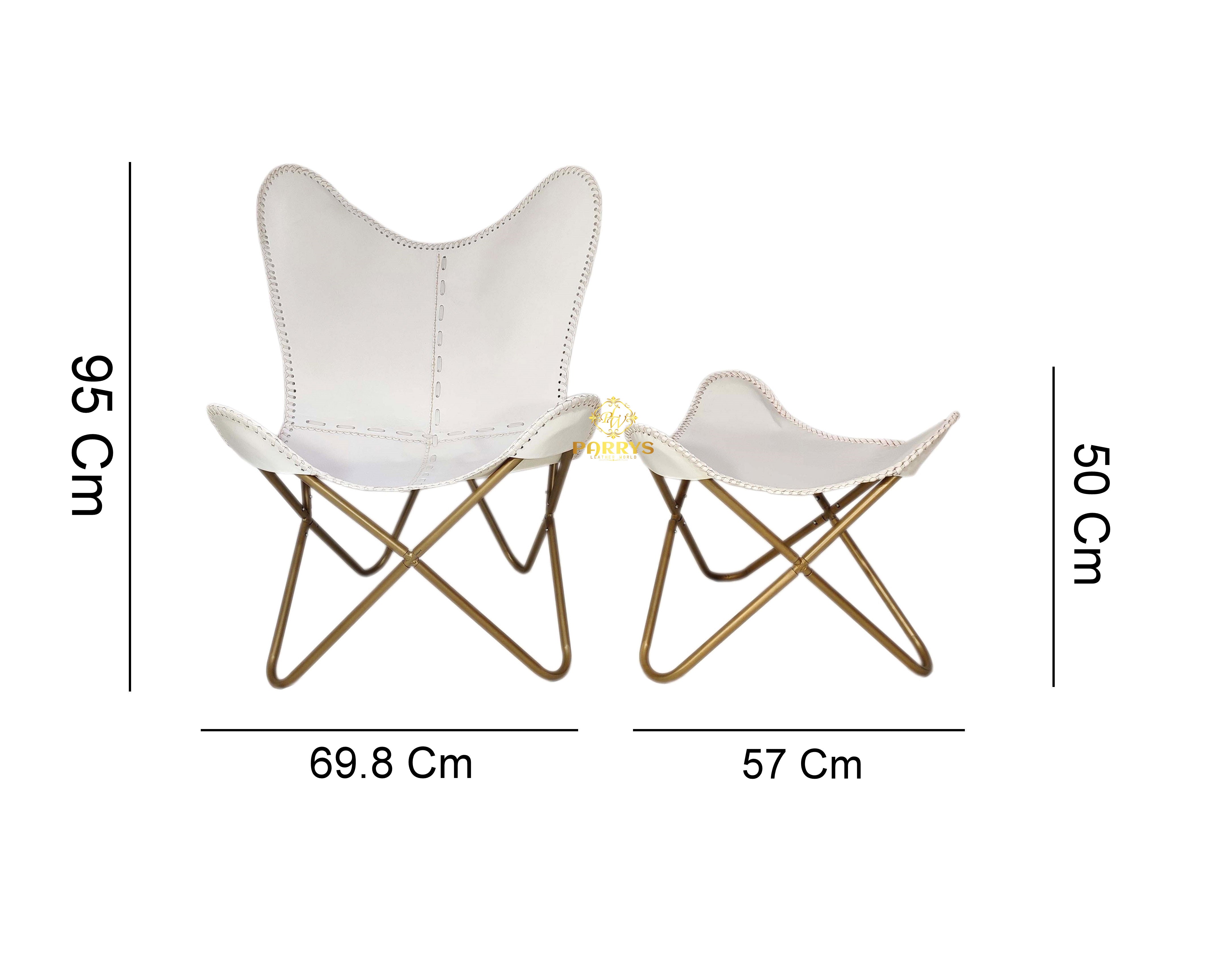 Crisp, luminous, and effortlessly refined, the Winter White Leather Lounge Set pairs a pristine white finish with warm brass tone bases for a striking, high‑contrast statement. Handcrafted from premium top grain leather, both the chair and ottoman showcase clean panel construction, subtle luster, and neatly finished edges that will develop a graceful patina over time. The ergonomic sling chair naturally cradles the body, while the contoured ottoman supports calves and feet for full‑body relaxation. Decorative edge stitching and crossed tubular frames keep the silhouette slim, modern, and gallery worthy ideal for living rooms, reading corners, bedrooms, studios, and sophisticated office lounges.