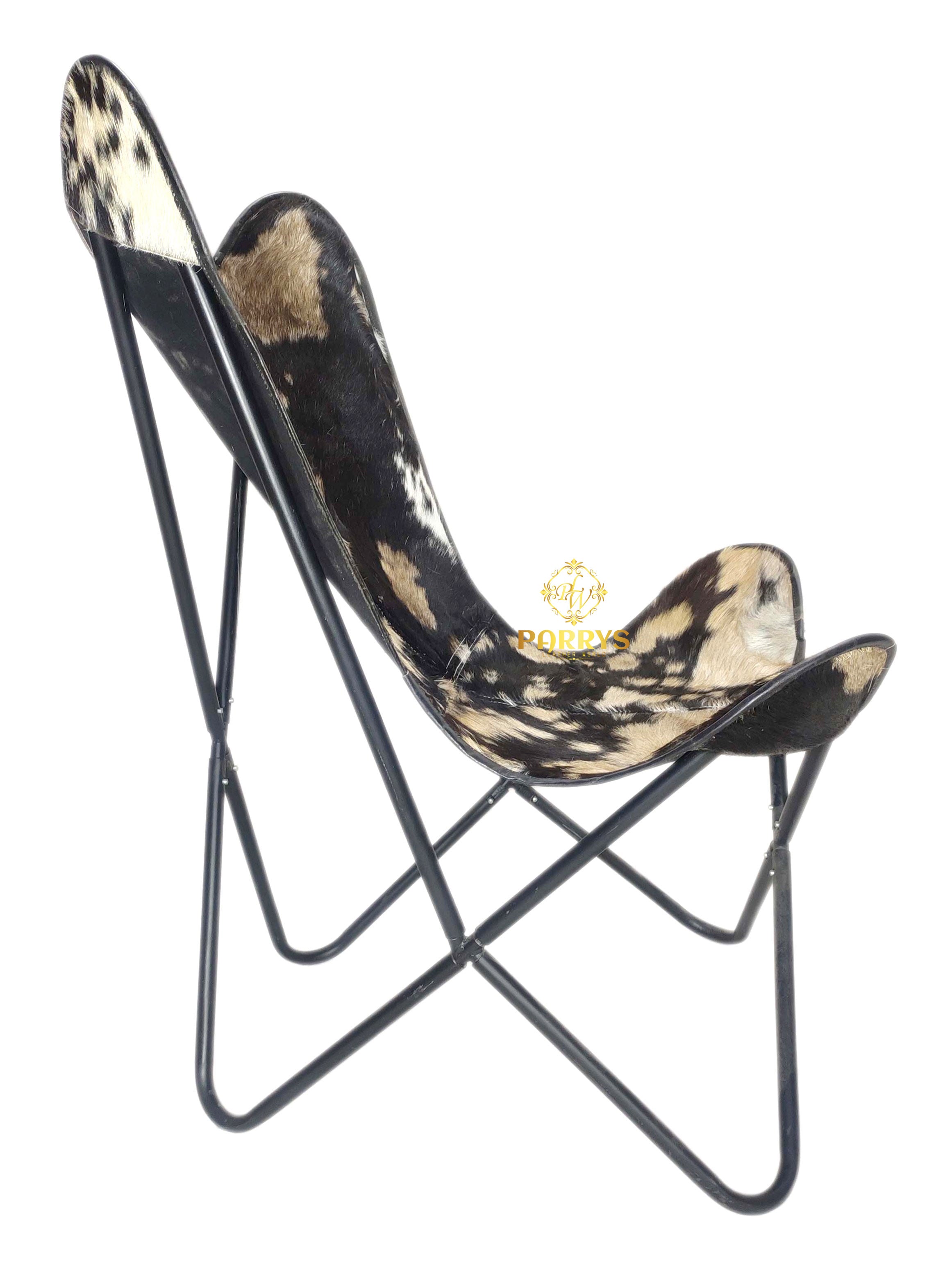 Ignite the look of any room with the Ember Speckle Cowhide Butterfly Chair. Handcrafted from premium hair‑on cowhide, its warm ember‑toned browns and natural ivory speckles create a richly textured, one‑of‑a‑kind pattern. The iconic butterfly silhouette gently cradles the body for relaxed lounging, while a sleek, powder‑coated iron frame delivers minimalist style and dependable stability. Leather‑bound edges with meticulous hand‑lacing showcase artisan detail, making this chair a striking focal point for rustic‑modern living rooms, cozy reading nooks, studios, or loft spaces.
