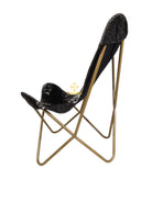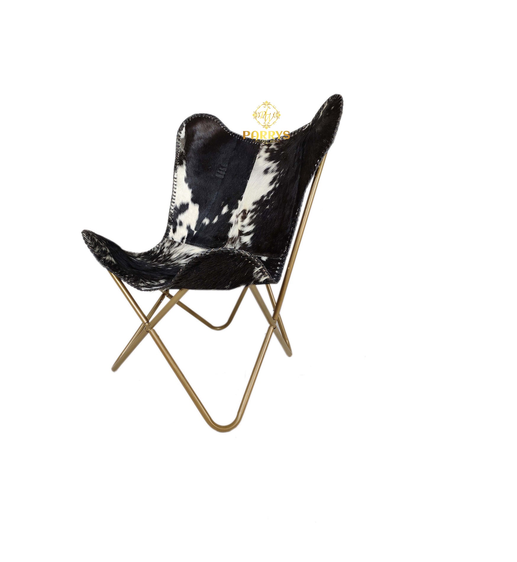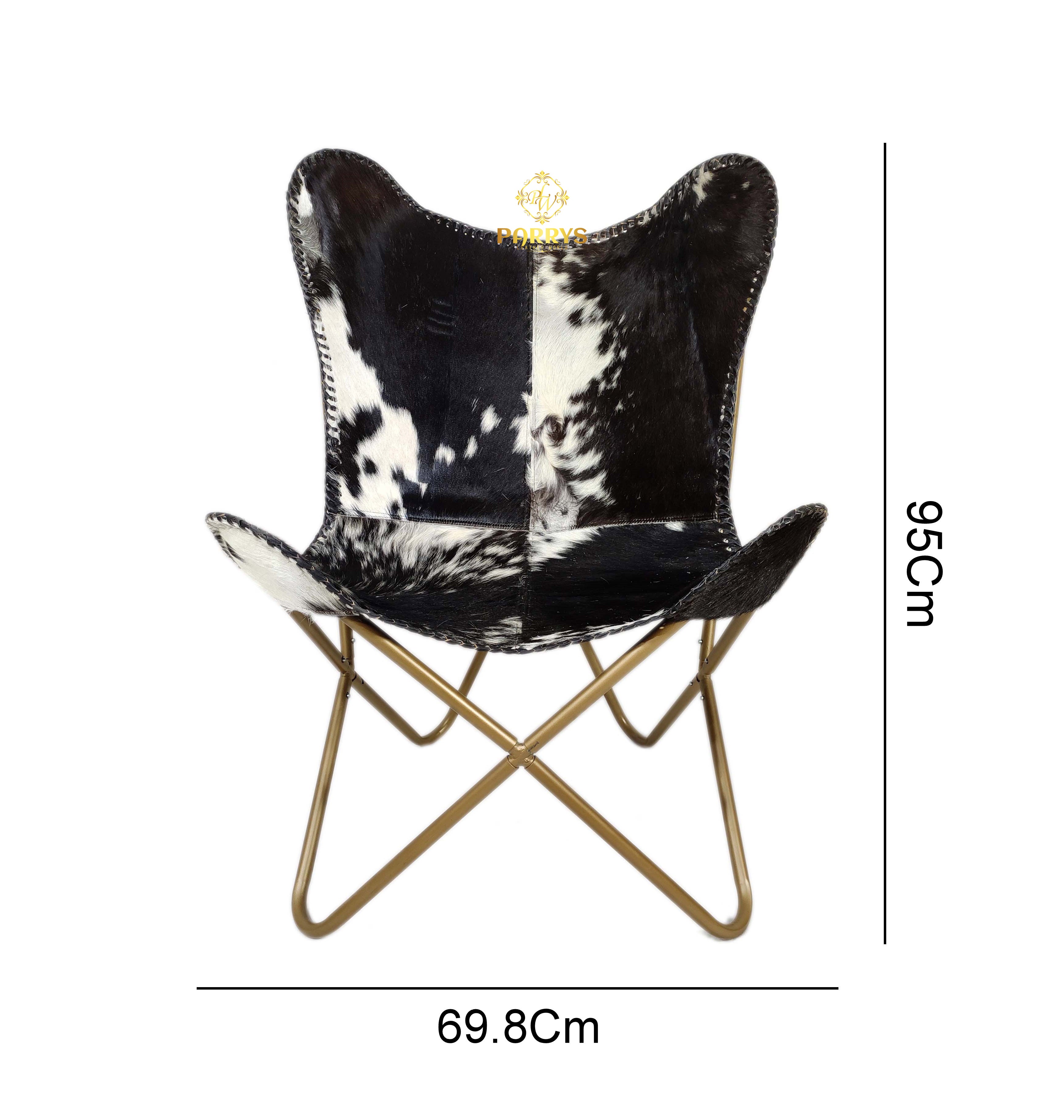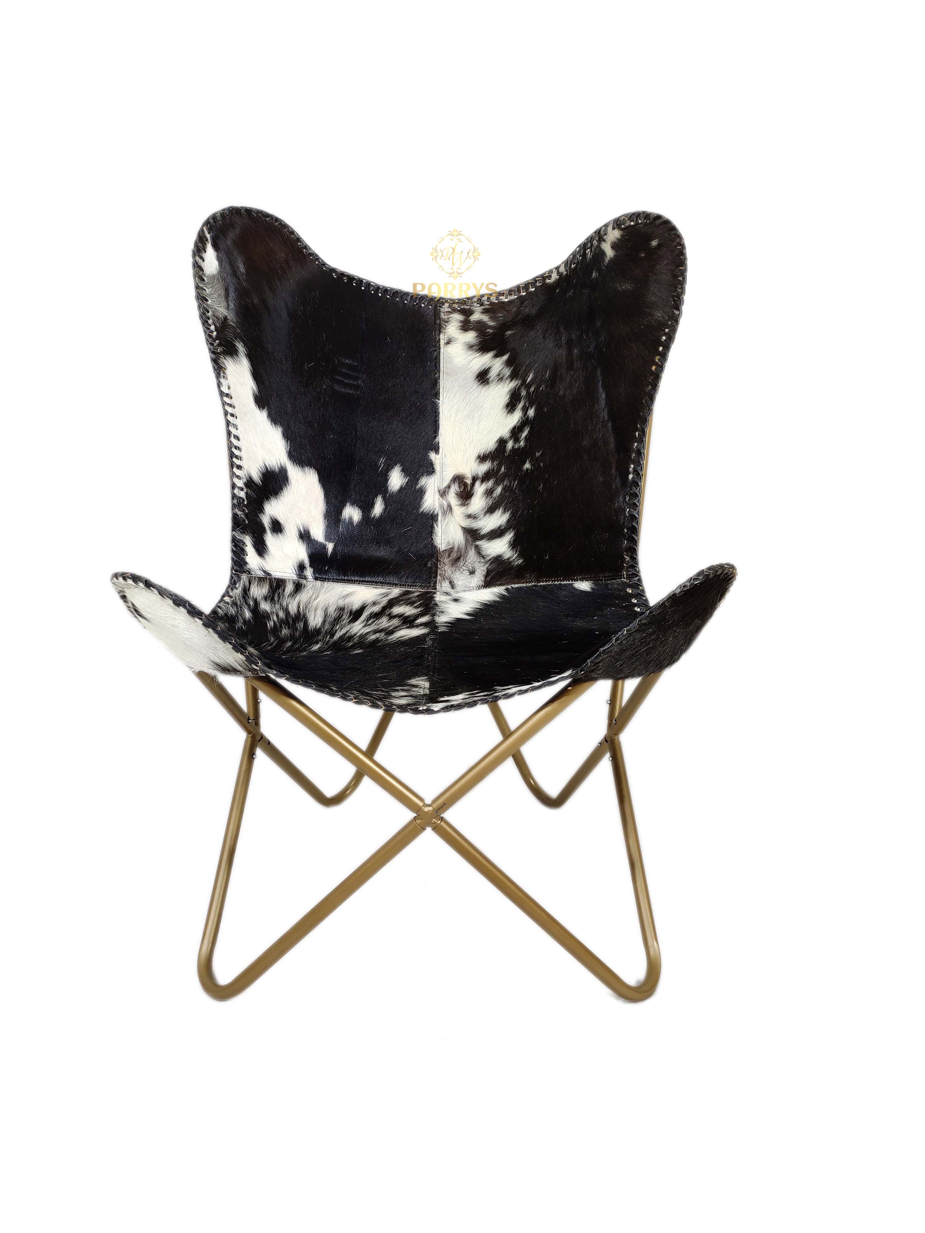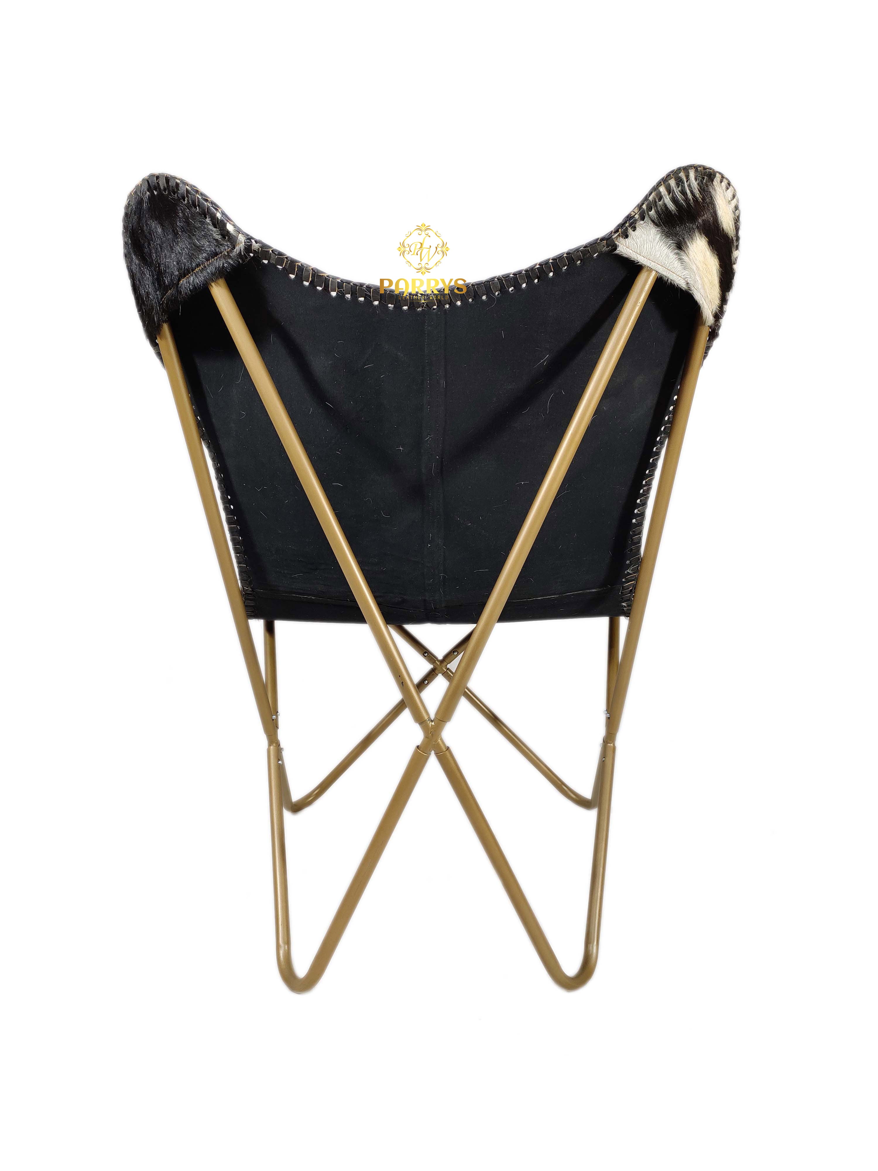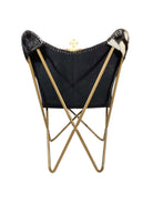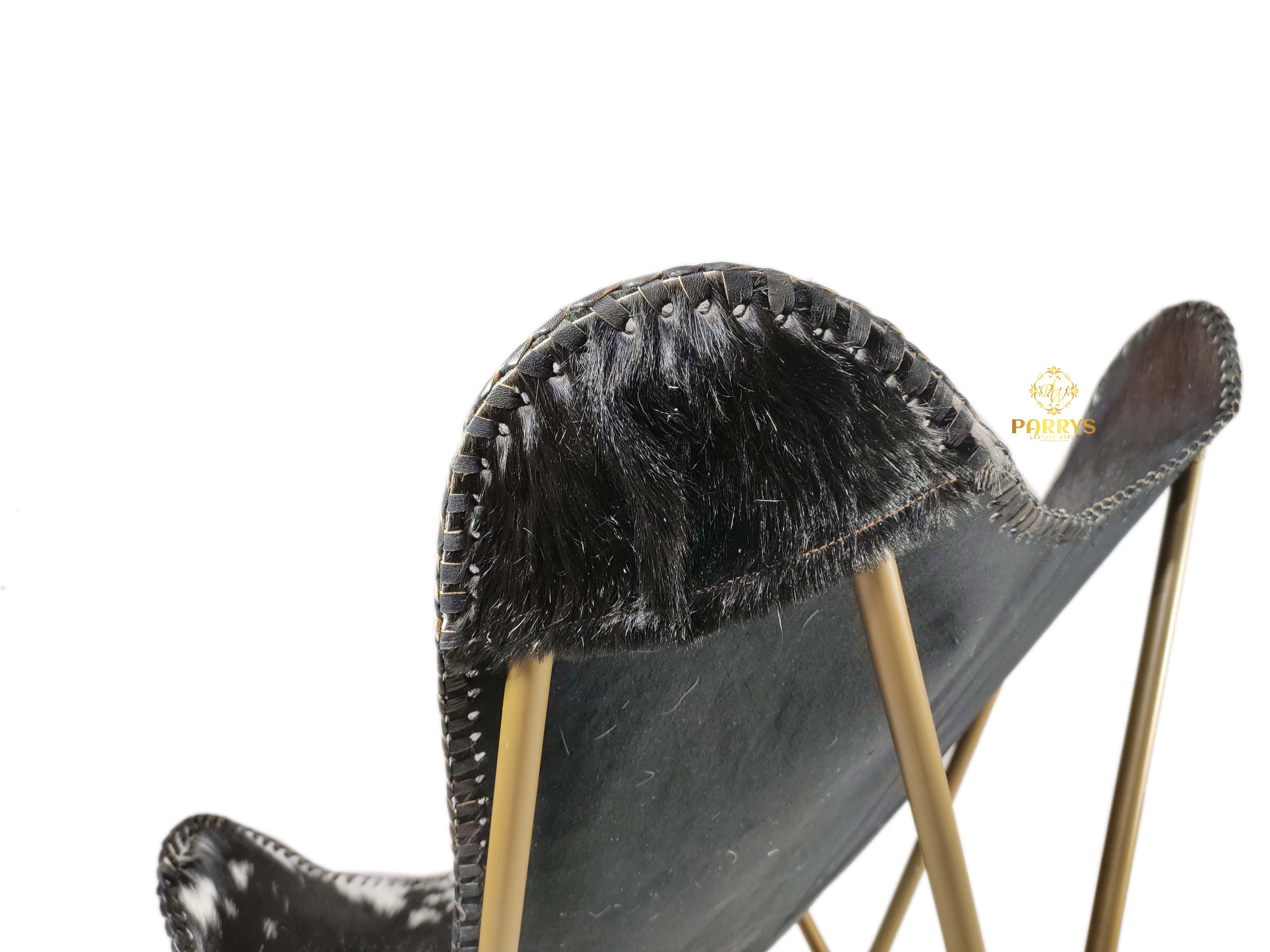 Dramatic and celestial, the Night Sky Cowhide Butterfly Chair showcases deep obsidian tones punctuated by ivory star‑like markings. Upholstered in authentic hair‑on cowhide with hand‑finished whip‑stitch edging, each chair captures the mesmerizing beauty of a starlit night sky. No two patterns are identical. The iconic butterfly silhouette gently cradles the body, while a brass‑toned cross frame keeps the look sculptural yet sturdy. Perfect for modern, industrial, and sophisticated rustic interiors.