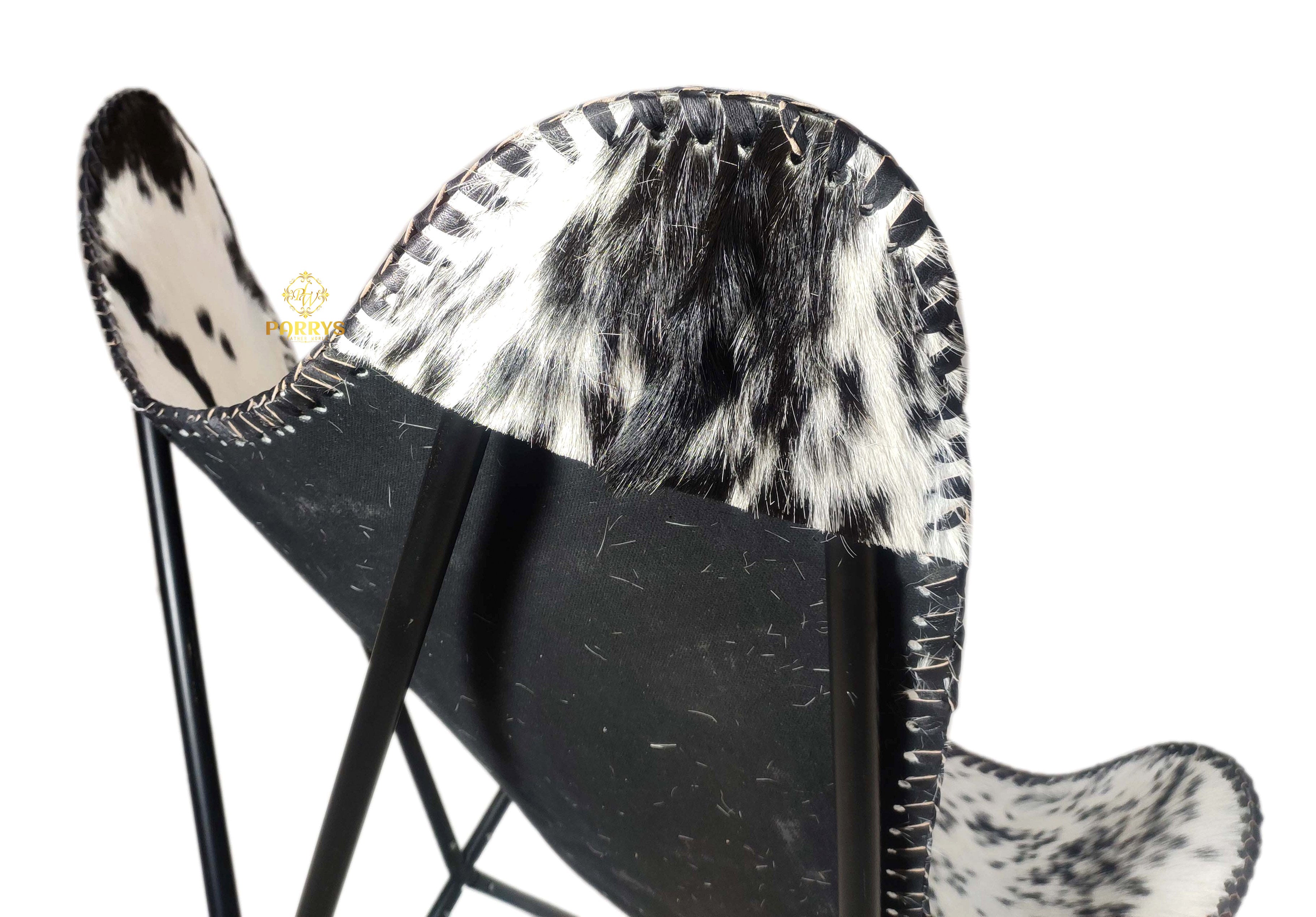 The Rustic Luxe Cowhide Leather Chair is where artisanal craftsmanship meets luxurious comfort. Handcrafted from premium Cowhide leather, this stunning butterfly-style chair features a striking natural black-and-white speckled pattern that adds texture, warmth, and character to any living space. Its sleek, powder-coated iron frame offers strength and stability, while the unique hide ensures that each piece is truly one-of-a-kind. Perfect as an accent chair in your living room, reading nook, or lounge area, the Rustic Luxe chair brings rustic elegance and modern charm together effortlessly.