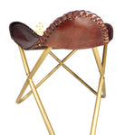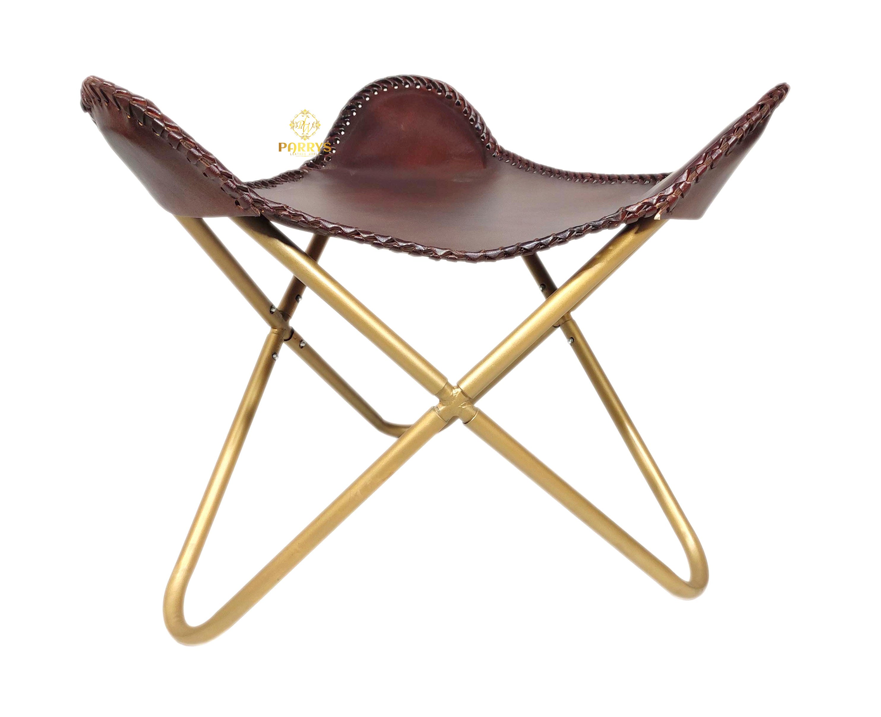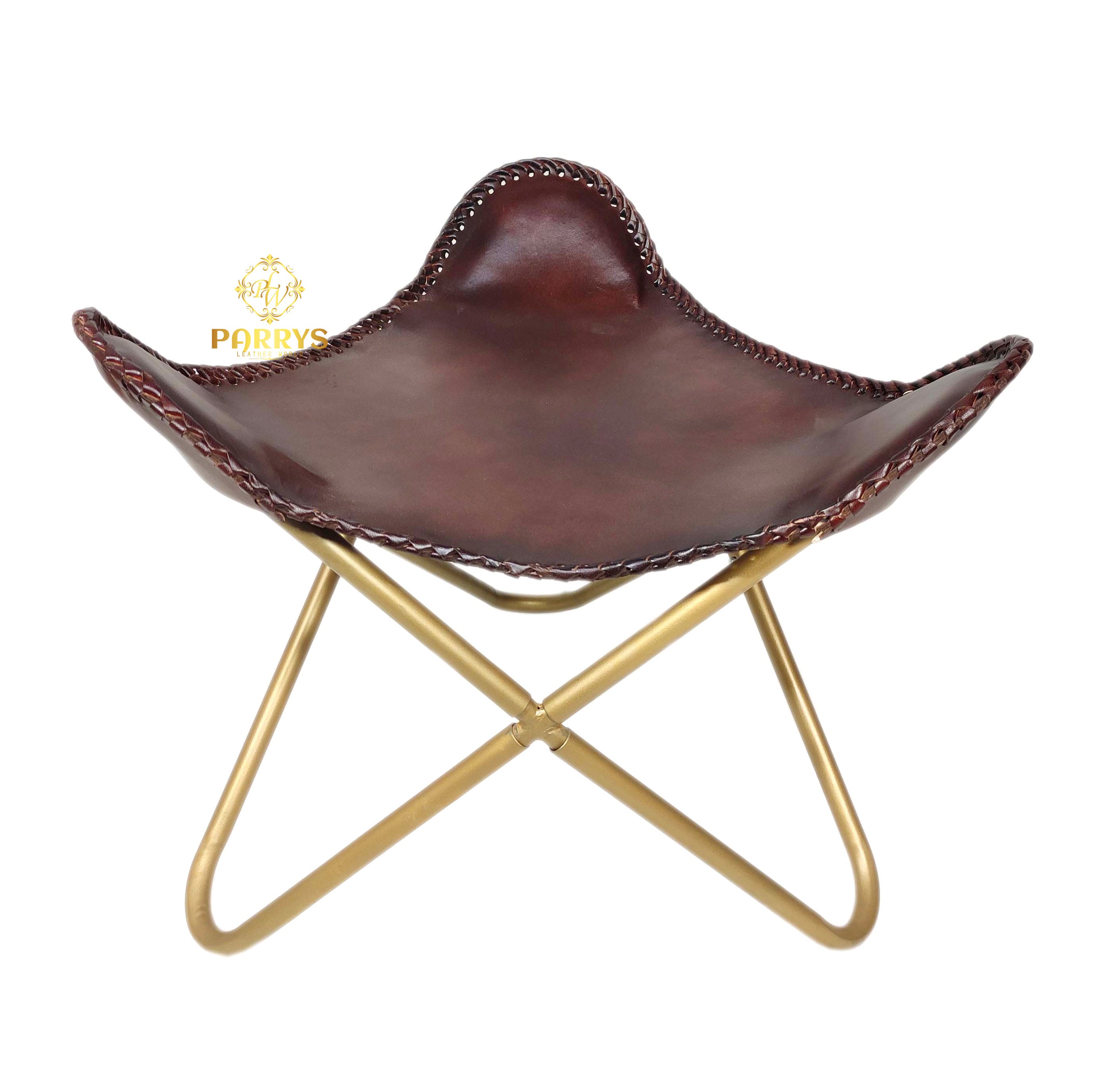 Elevate interiors with the Classic Wine-Tone Leather Ottoman a richly hued accent that blends vintage elegance with everyday utility. Handcrafted from supple, wine‑tone genuine leather, the contoured saddle seat features bold whip‑stitch edging that showcases artisanal craftsmanship. A refined, brass‑finished cross frame keeps the silhouette airy yet sturdy, making it ideal as a relaxed leg rest, an occasional perch, or a statement accent beside a sofa or lounge chair. Its deep, cellar‑inspired tone pairs effortlessly with modern, rustic, and classic décor.