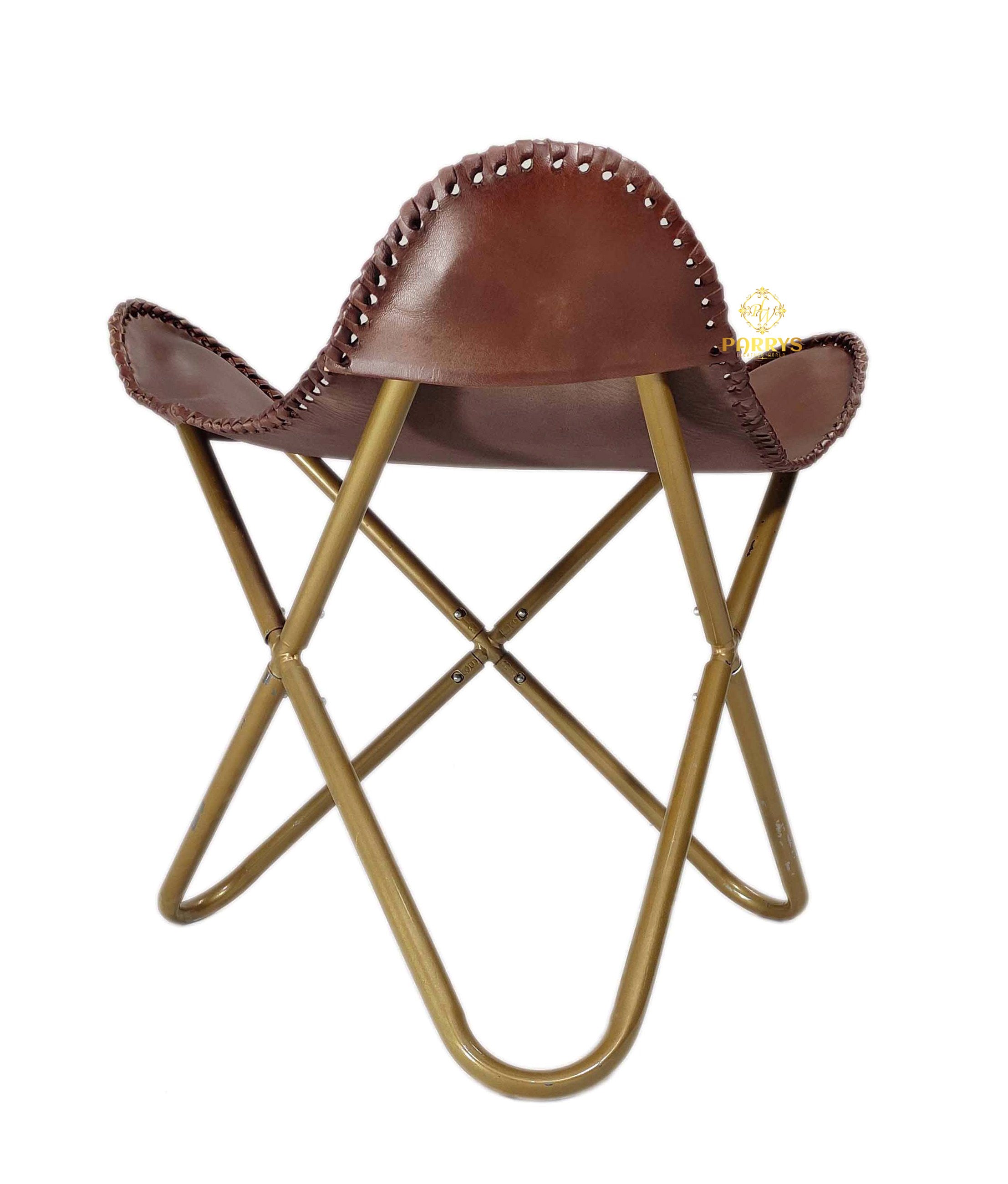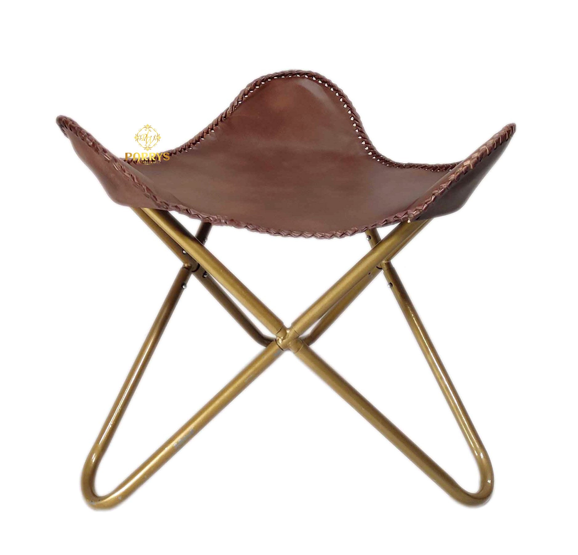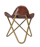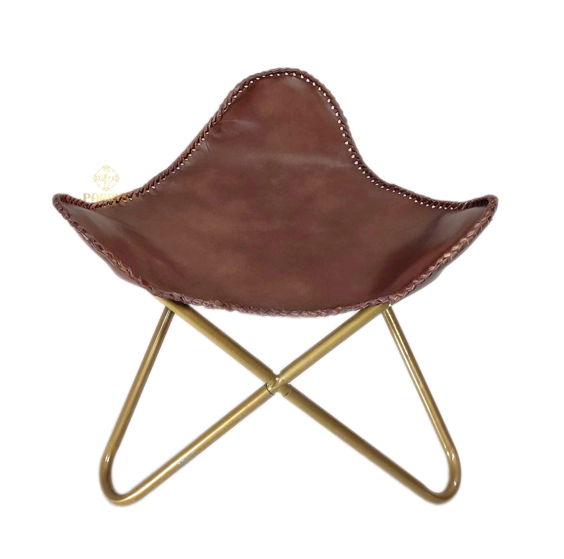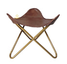 Ground the room with the rich warmth of the Coffee Brown Leather Ottoman. Handcrafted from supple, coffee‑brown genuine leather, its contoured saddle seat features bold whip‑stitch edging for an artisanal finish. The brushed‑brass cross frame keeps the silhouette light yet sturdy, making it a versatile accent perfect as a relaxed leg rest, an extra perch, or a refined companion to a sofa or lounge chair. Its deep, café‑inspired tone pairs seamlessly with modern, rustic, a