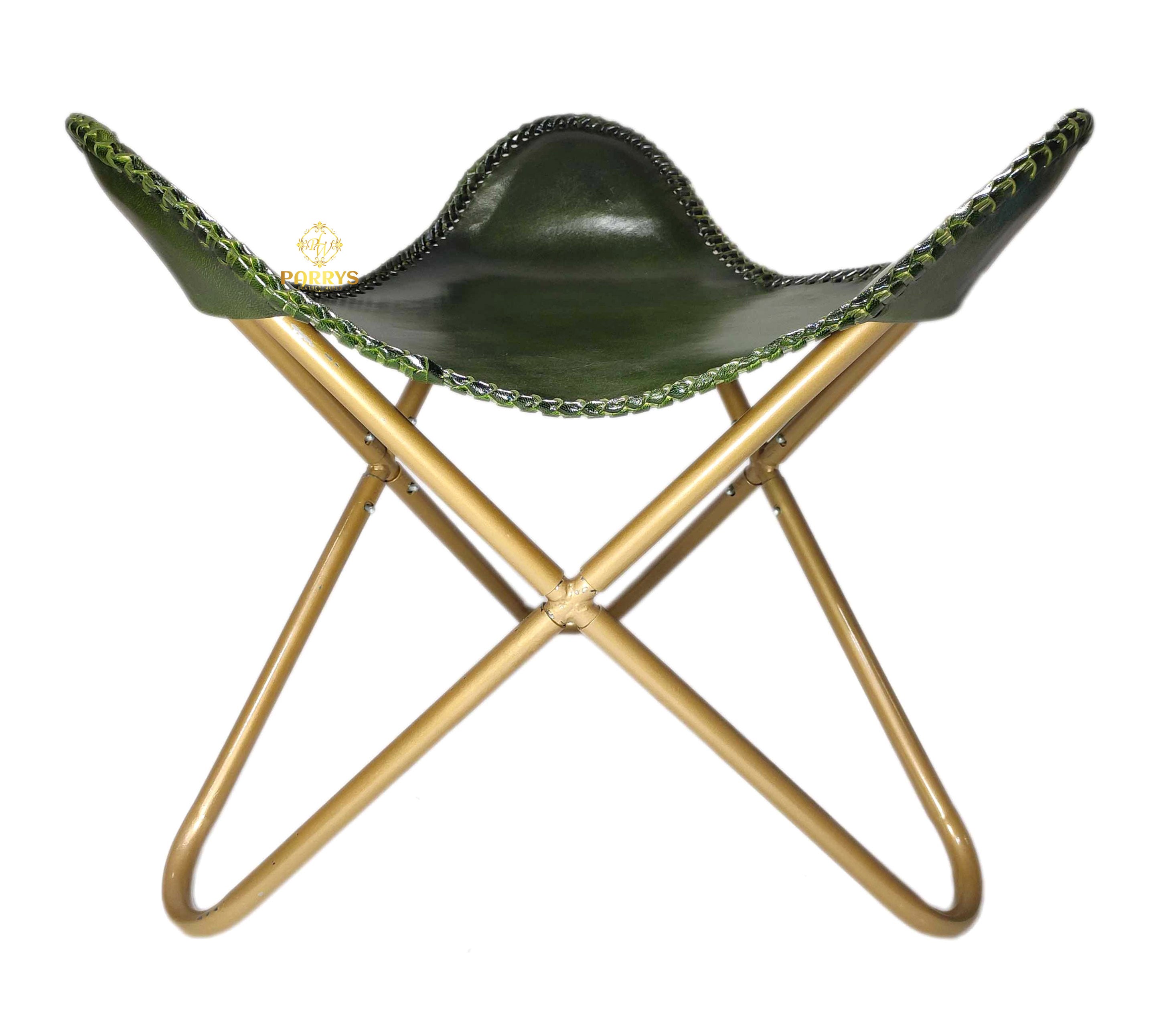 Bring grounded, organic richness to any room with the Forest Green Saddle Leather Ottoman. Handcrafted from supple, forest‑green genuine leather, its contoured saddle seat is finished with bold whip‑stitch edging that highlights the hide’s natural character. A brushed‑brass cross frame keeps the silhouette light yet sturdy, making it perfect as a relaxed leg rest, an extra perch, or a refined accent beside a sofa or lounge chair. The deep green tone layers beautifully with modern rustic, bohemian, a