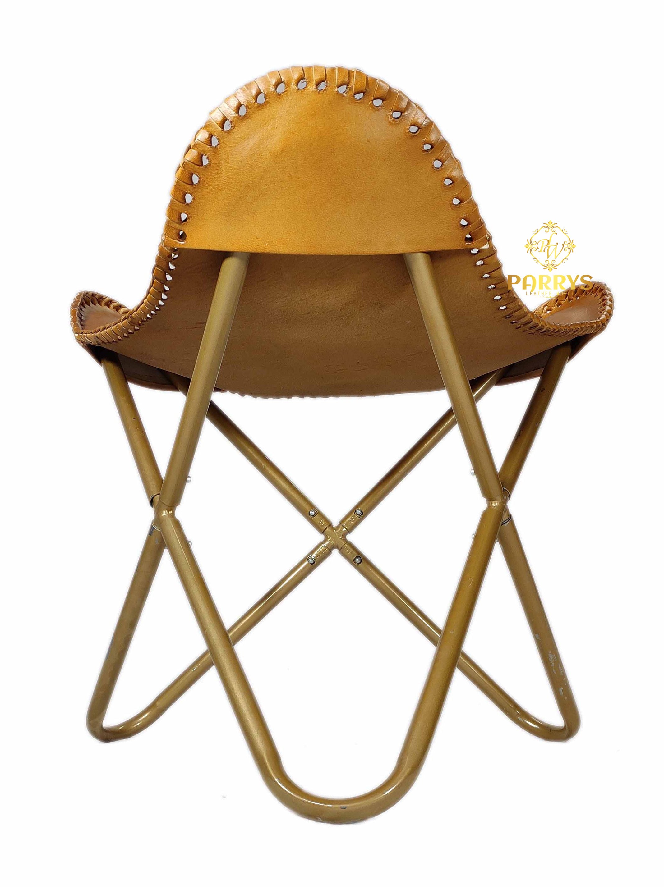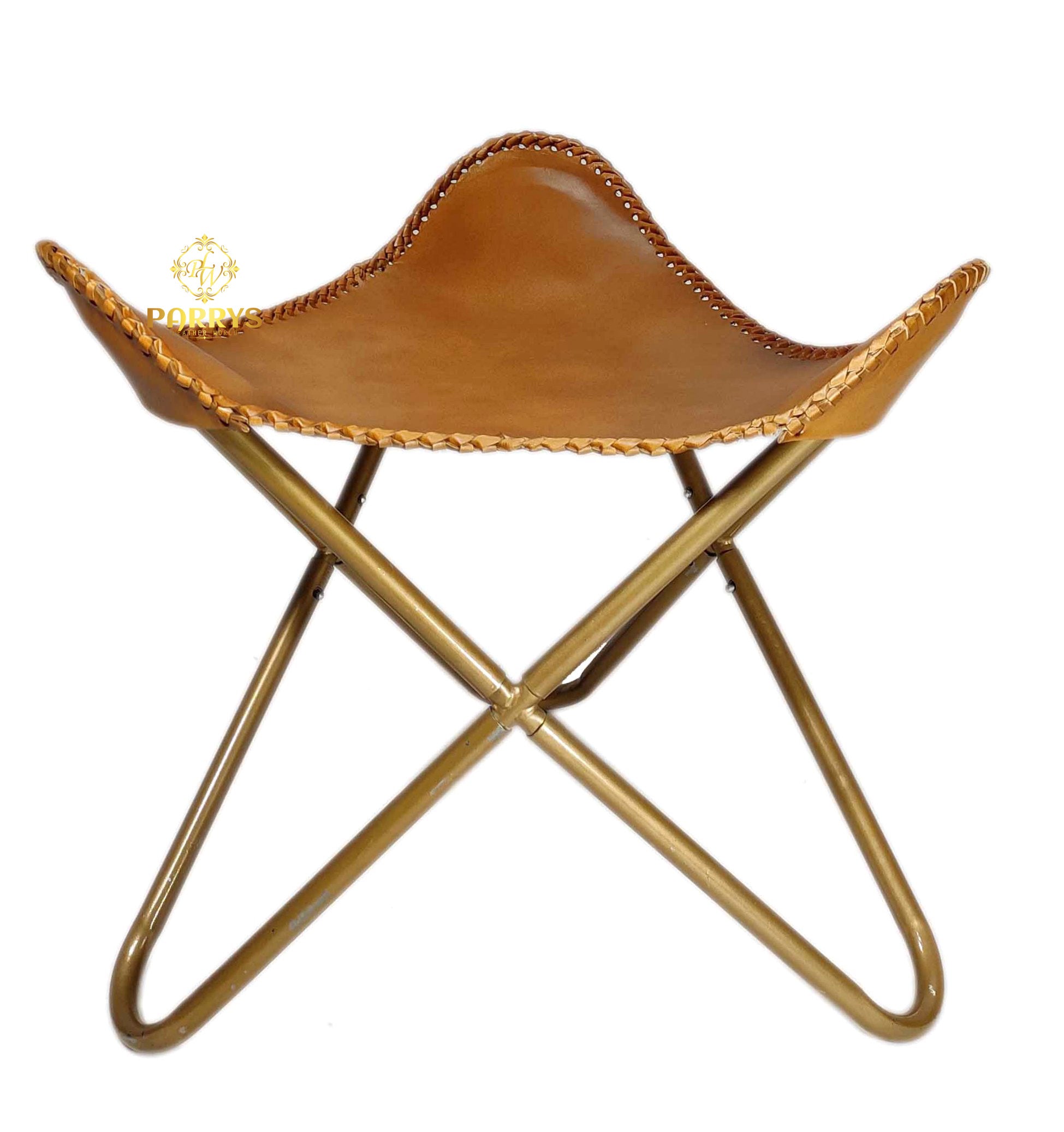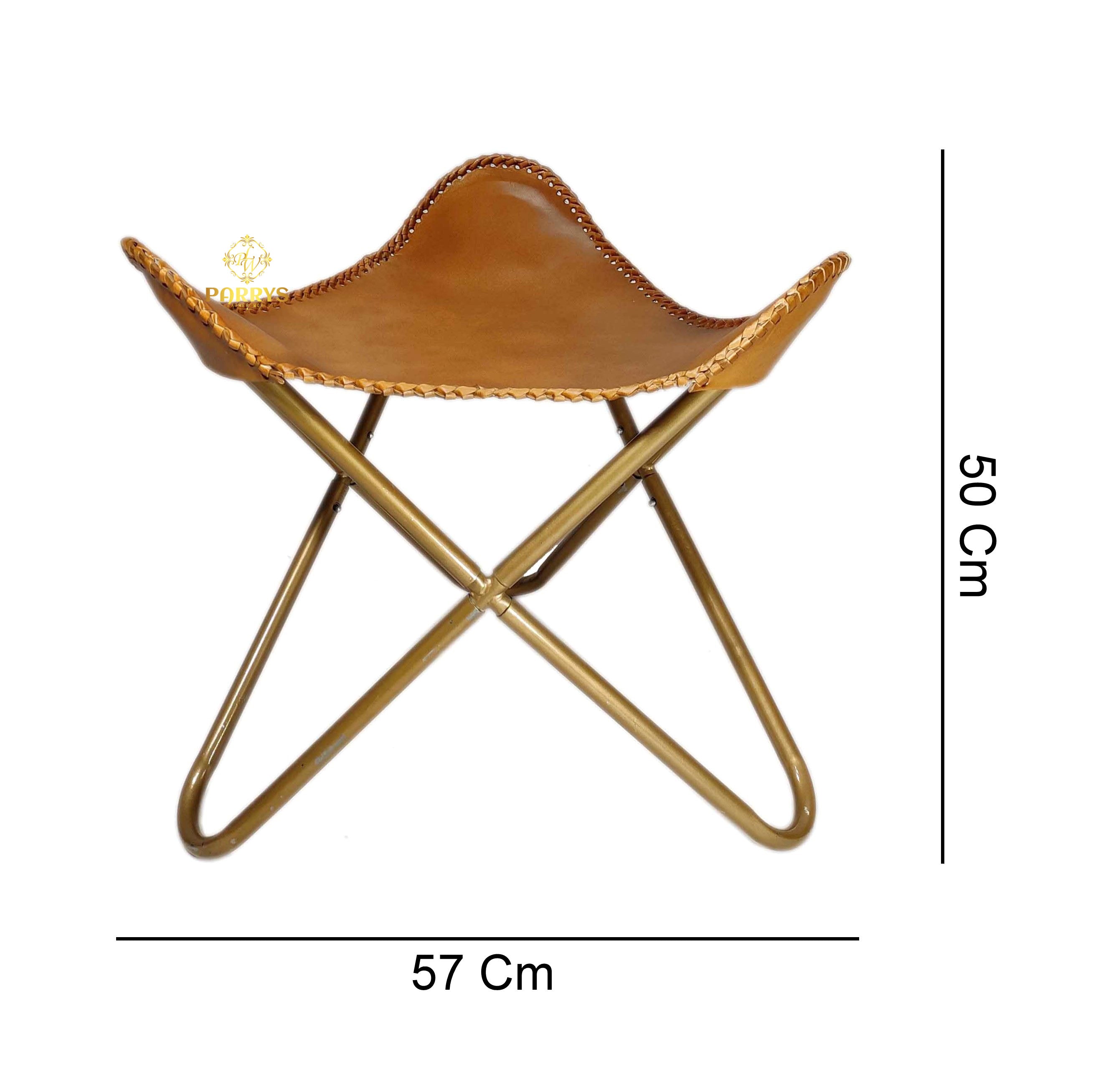 Infuse warm, sunlit character into any space with the Golden Tan Saddle Leather Ottoman. Handcrafted from supple, golden‑tan genuine leather, its contoured saddle seat is finished with bold whip‑stitch edging that showcases artisanal craftsmanship. The brushed‑brass cross frame keeps the silhouette light yet sturdy, making it an easy, elegant addition beside a sofa or lounge chair perfect as a relaxed leg rest, an extra perch, or a refined accent. Its inviting tan tone layers beautifully with modern, rustic, and mid‑century interiors.