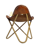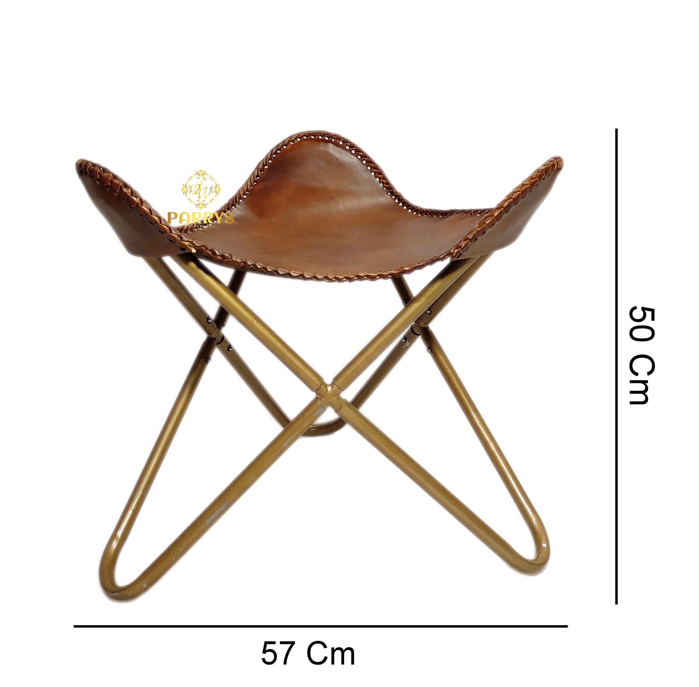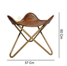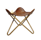 Add timeless appeal to any space with the Rustic Tan Cross‑Frame Ottoman. Handcrafted from supple, rustic‑tan genuine leather, the contoured saddle seat is finished with bold whip‑stitch edging that showcases the hide's natural character and artisanal craftsmanship. A brushed‑brass cross frame keeps the silhouette light yet sturdy, making it an ideal companion to sofas and lounge chairs perfect as a relaxed leg rest, an extra perch, or a sophisticated accent. Its warm tan tone layers beautifully with modern farmhouse, rustic, and classic interiors.