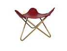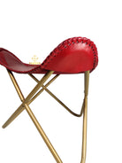 Make a striking statement with the Scarlet Saddle Leather Ottoman. Handcrafted from supple, scarlet‑red genuine leather, its contoured saddle seat is finished with bold whip‑stitch edging for an artisanal touch. The brushed‑brass cross frame keeps the look light yet sturdy, creating a vibrant accent that doubles as a relaxed leg rest, an extra perch, or a stylish companion to a sofa or lounge chair. The rich red tone brings energy and sophistication to modern, eclectic, or vintage‑inspired spaces.