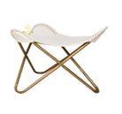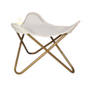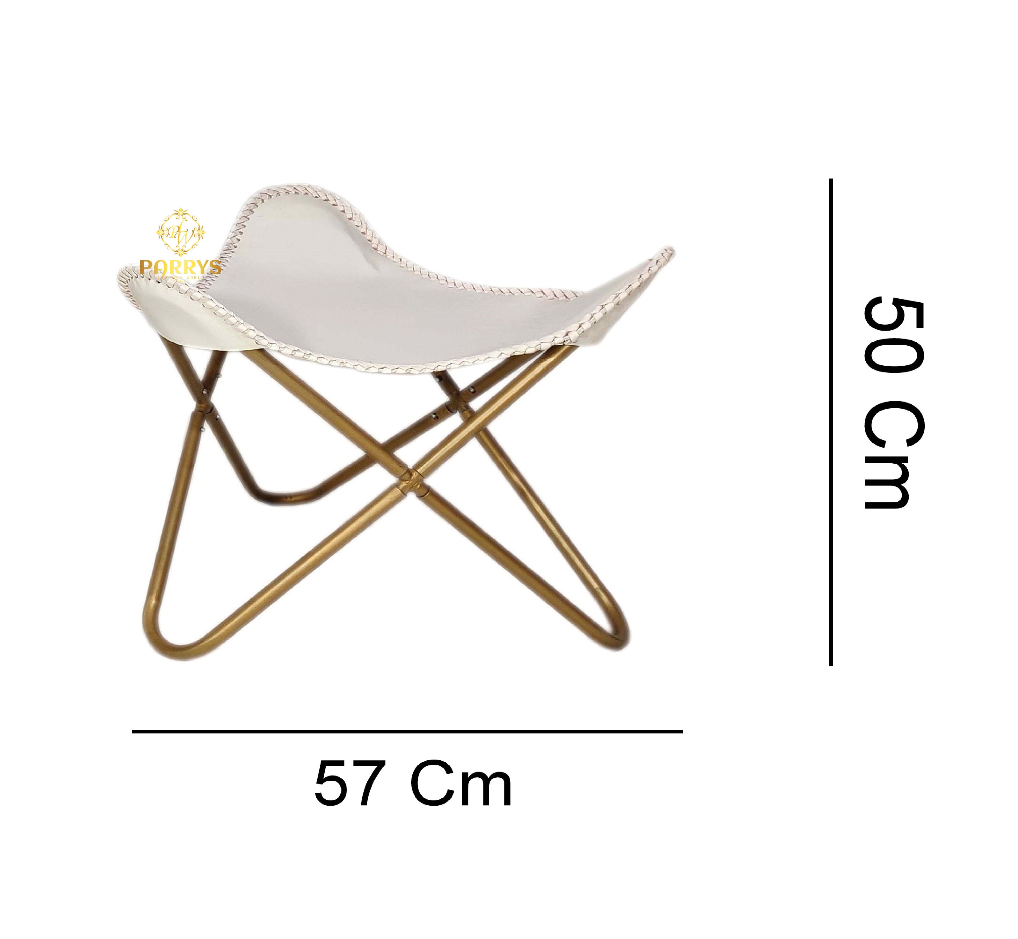 Brighten any room with the Soft White Leather Ottoman a clean, modern accent with artisanal warmth. Handcrafted from supple, soft‑white genuine leather, the contoured saddle seat showcases bold whip‑stitch edging that adds texture and definition. A brushed‑brass cross frame keeps the silhouette airy yet sturdy, making this piece perfect as a relaxed leg rest, an extra perch, or a chic companion to a sofa or lounge chair. Its versatile white tone layers beautifully with contemporary, coastal, Scandinavian, and classic interiors.