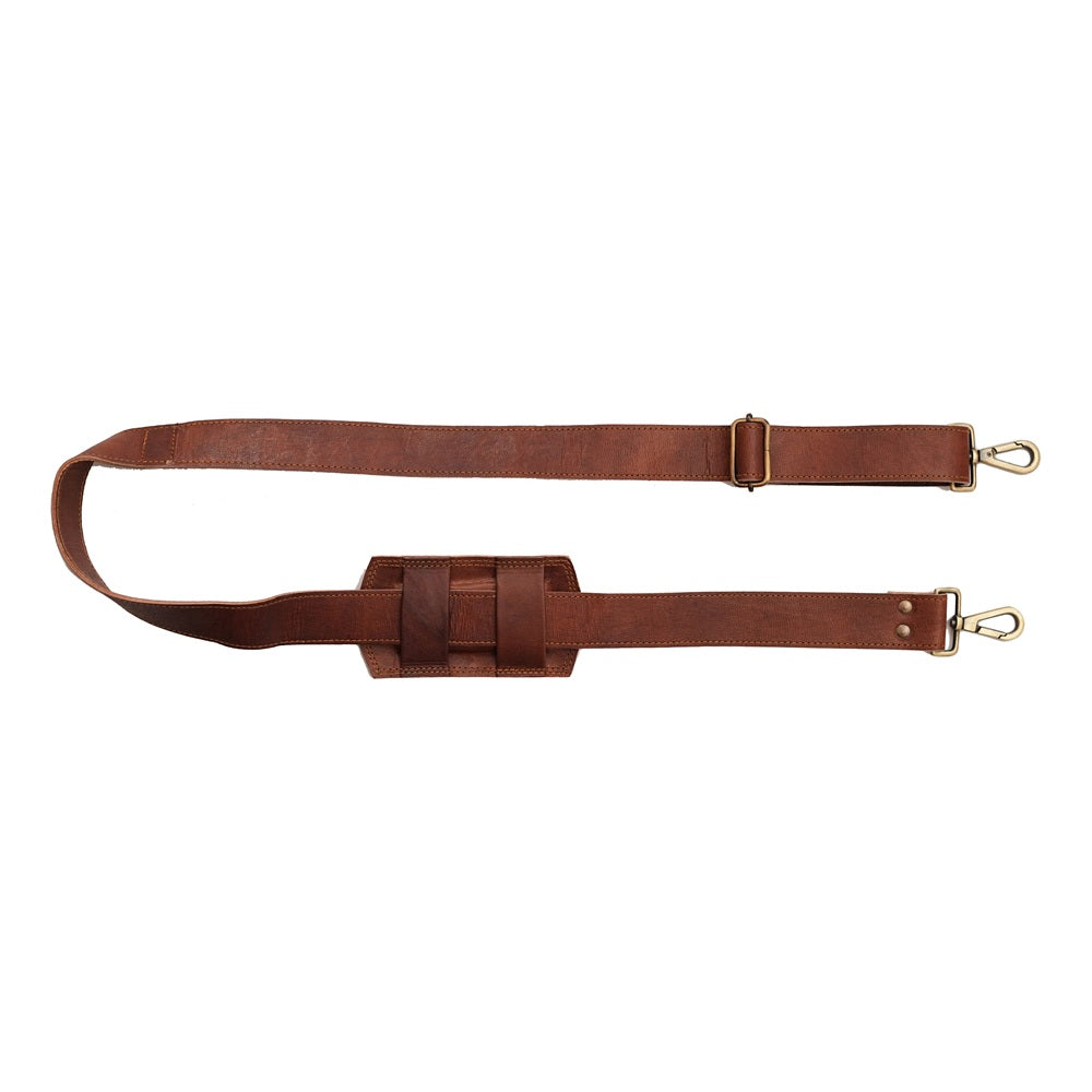 Enhance your bag with the distinct and versatile Tan Brown Leather Strap. Crafted from genuine leather in a rich tan brown hue, this strap offers both timeless style and exceptional durability. Its warm, earthy tone beautifully complements a wide range of leather goods, developing a unique character over time.