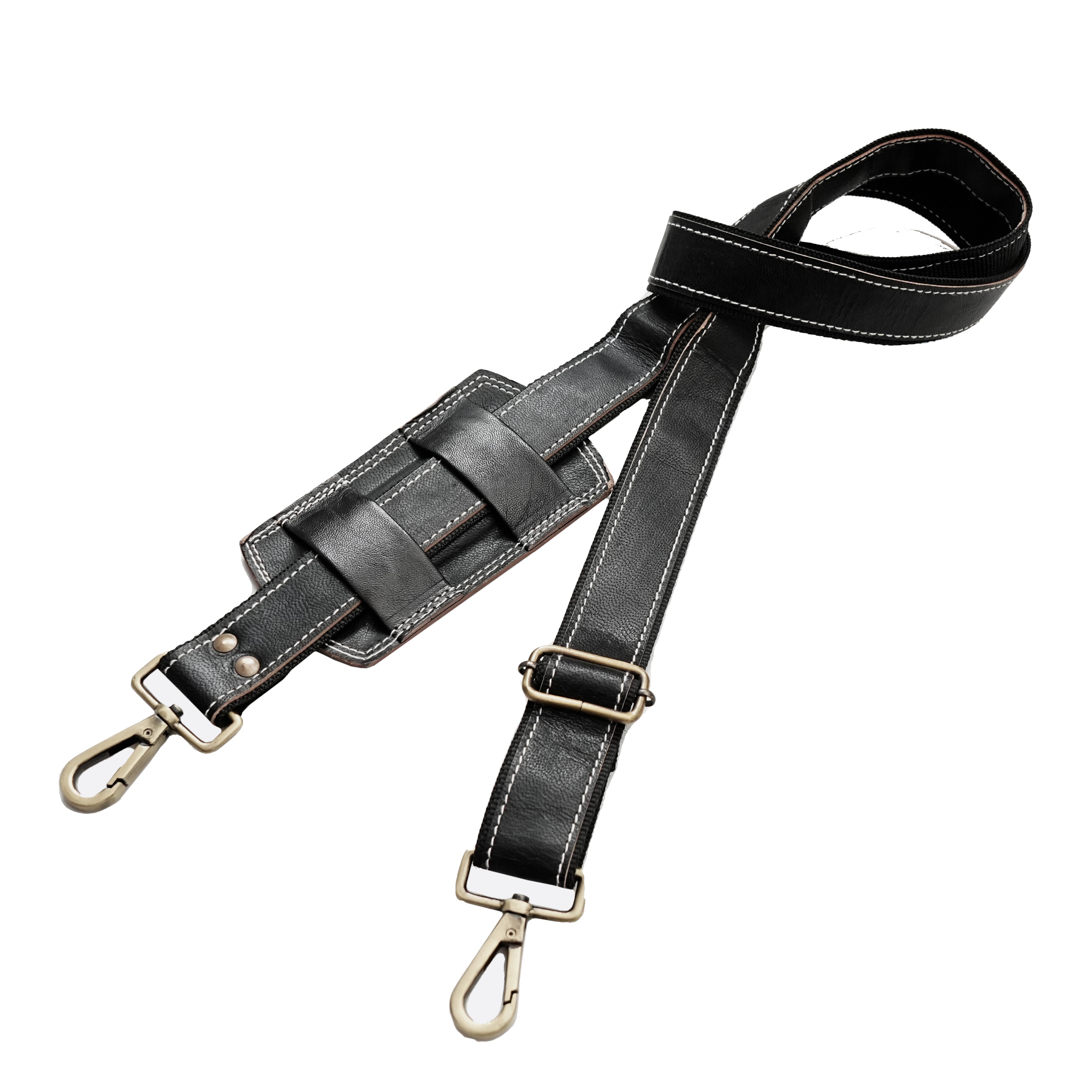 Elevate your everyday essentials with the Sleek Black Leather Strap. Crafted from premium genuine black leather, this strap offers a modern, refined aesthetic that effortlessly complements any bag. Its smooth finish and subtle detailing, including elegant contrasting stitching, provide a sophisticated upgrade to your carry-on or daily bag.