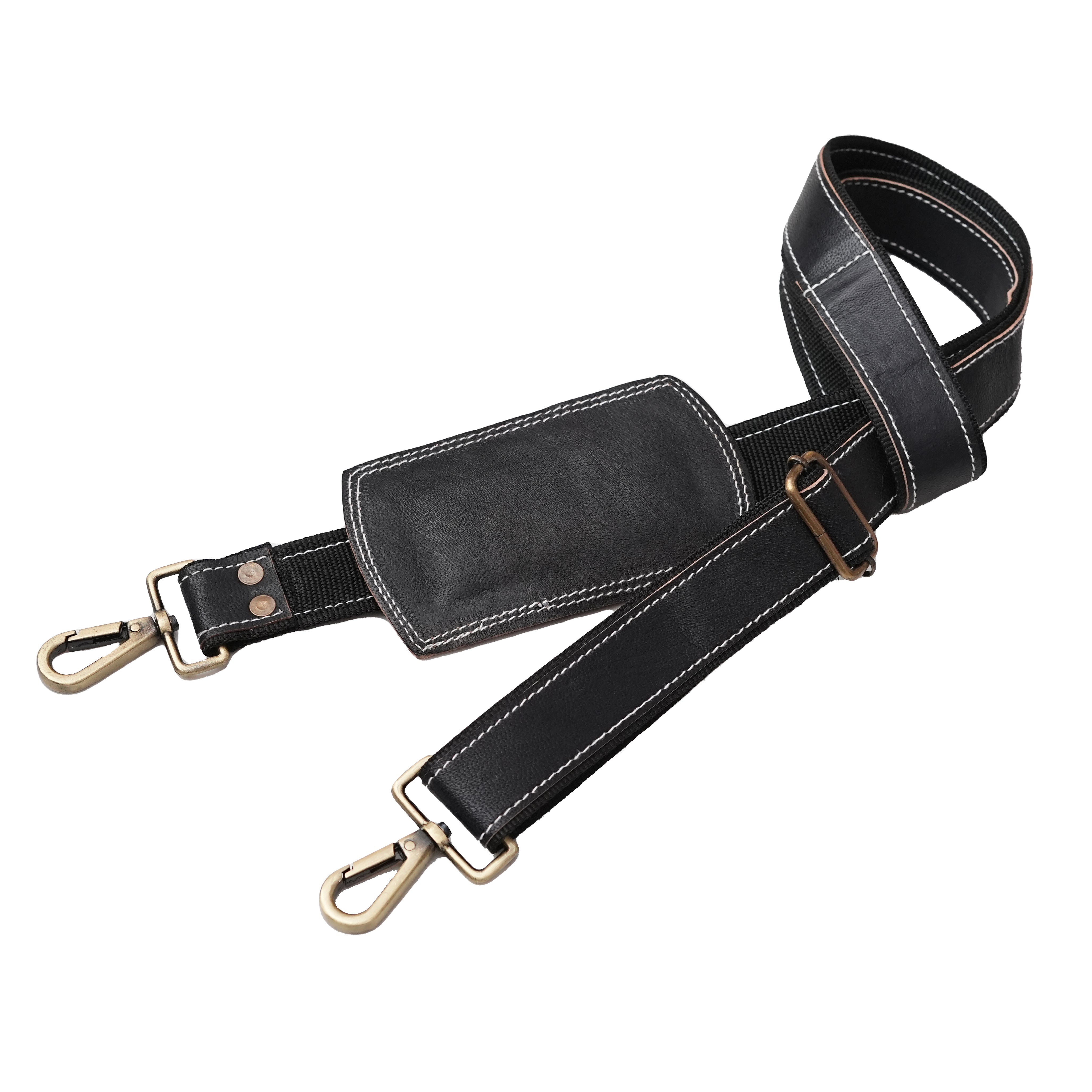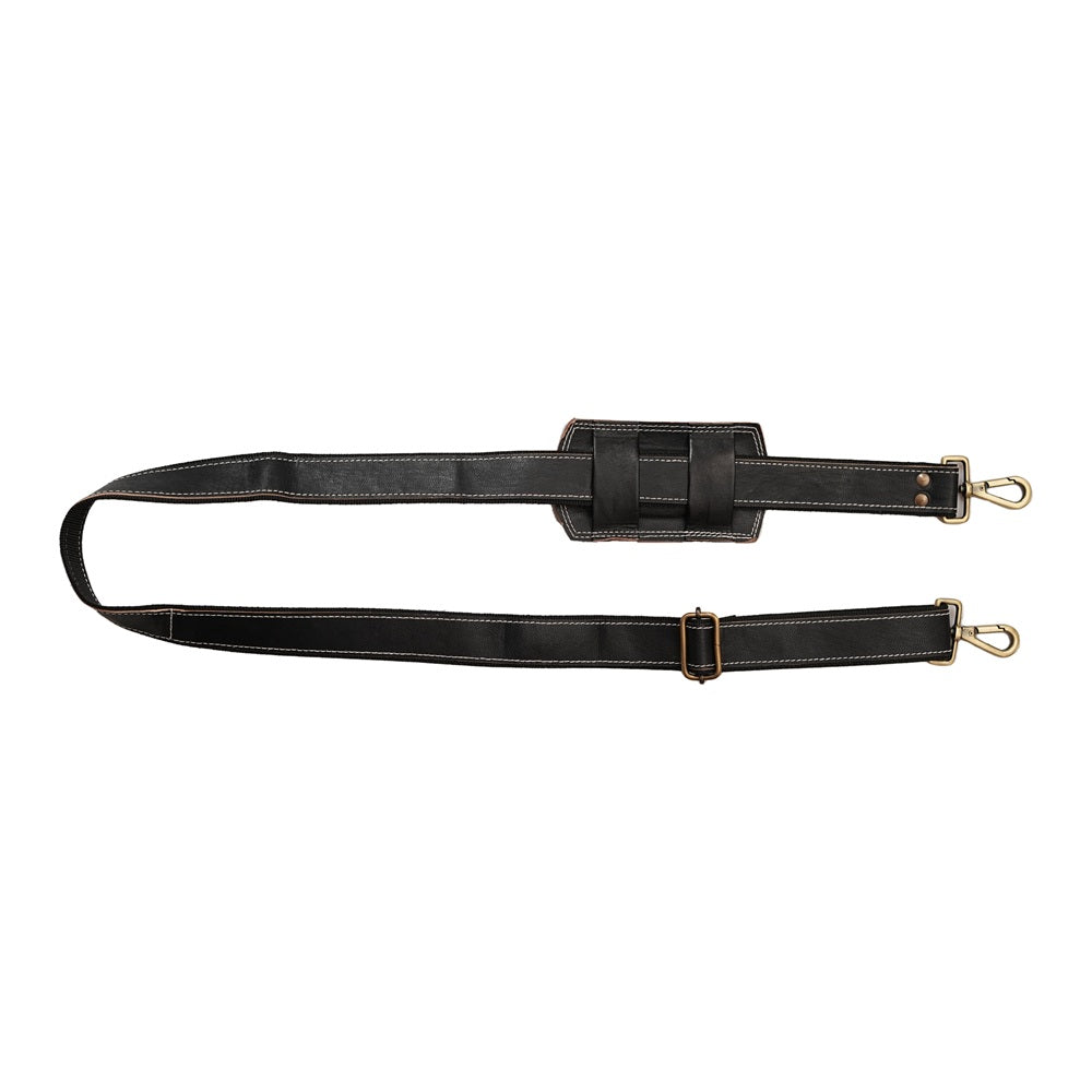 Designed for comfort and versatility, this strap features an adjustable length to ensure a perfect fit for any preference, along with a movable padded shoulder rest that alleviates pressure during prolonged wear. Equipped with durable metal clasps at both ends, it provides a secure and convenient attachment to a wide range of bags, from briefcases to duffles. The Sleek Black Leather Strap is an ideal choice for those who value both impeccable style and practical functionality.