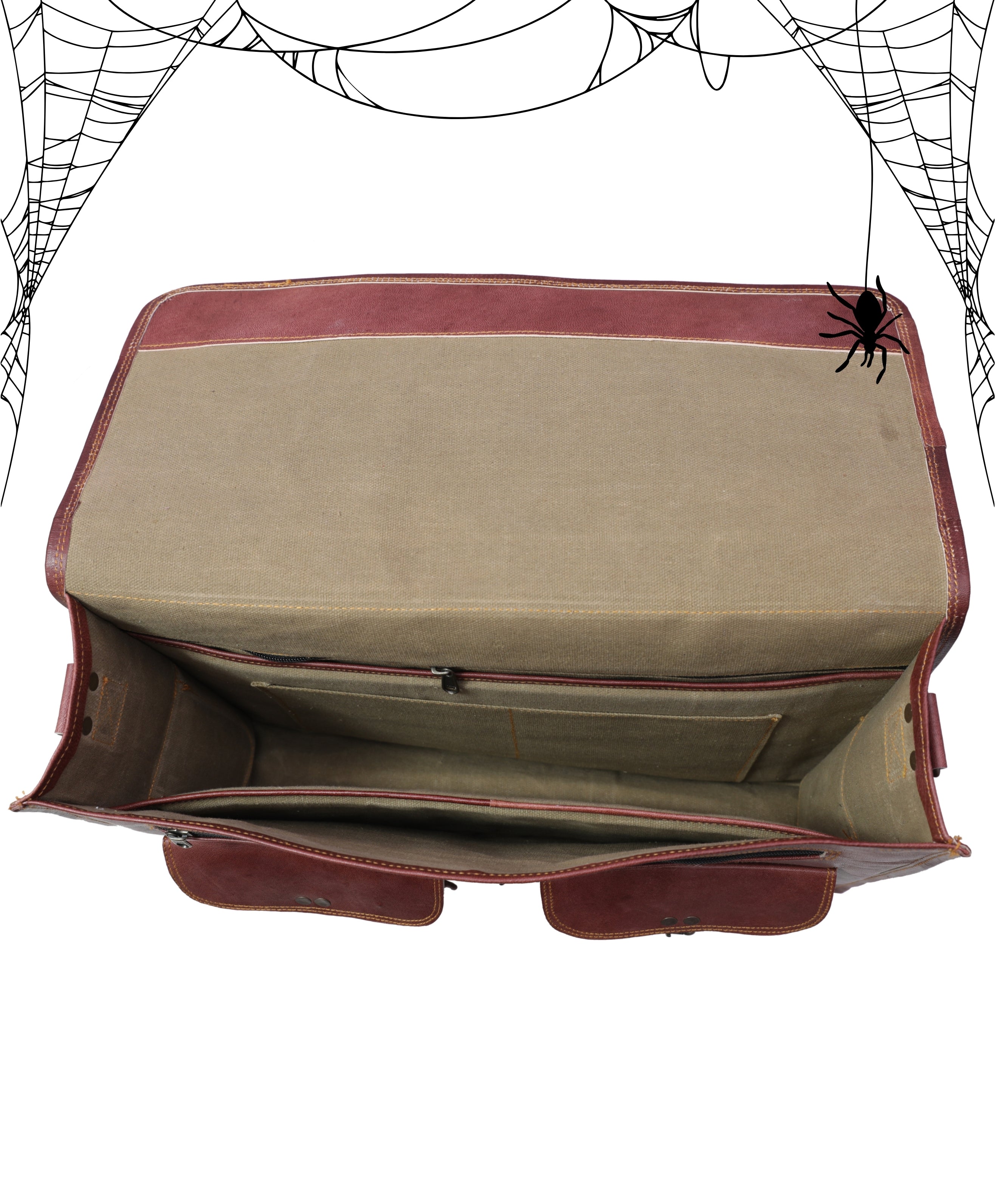 Designed for seamless organization, it features a spacious interior with multiple compartments and thoughtful pockets, all lined with a soft yet sturdy canvas. The classic messenger silhouette is defined by two prominent front pockets and secured by durable antique brass hardware, offering both style and secure storage. Carry it comfortably by its sturdy top handle or sling it across your body with the wide, adjustable shoulder strap for hands-free convenience.