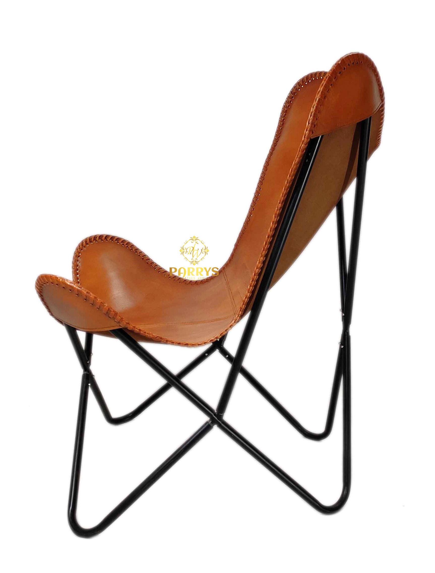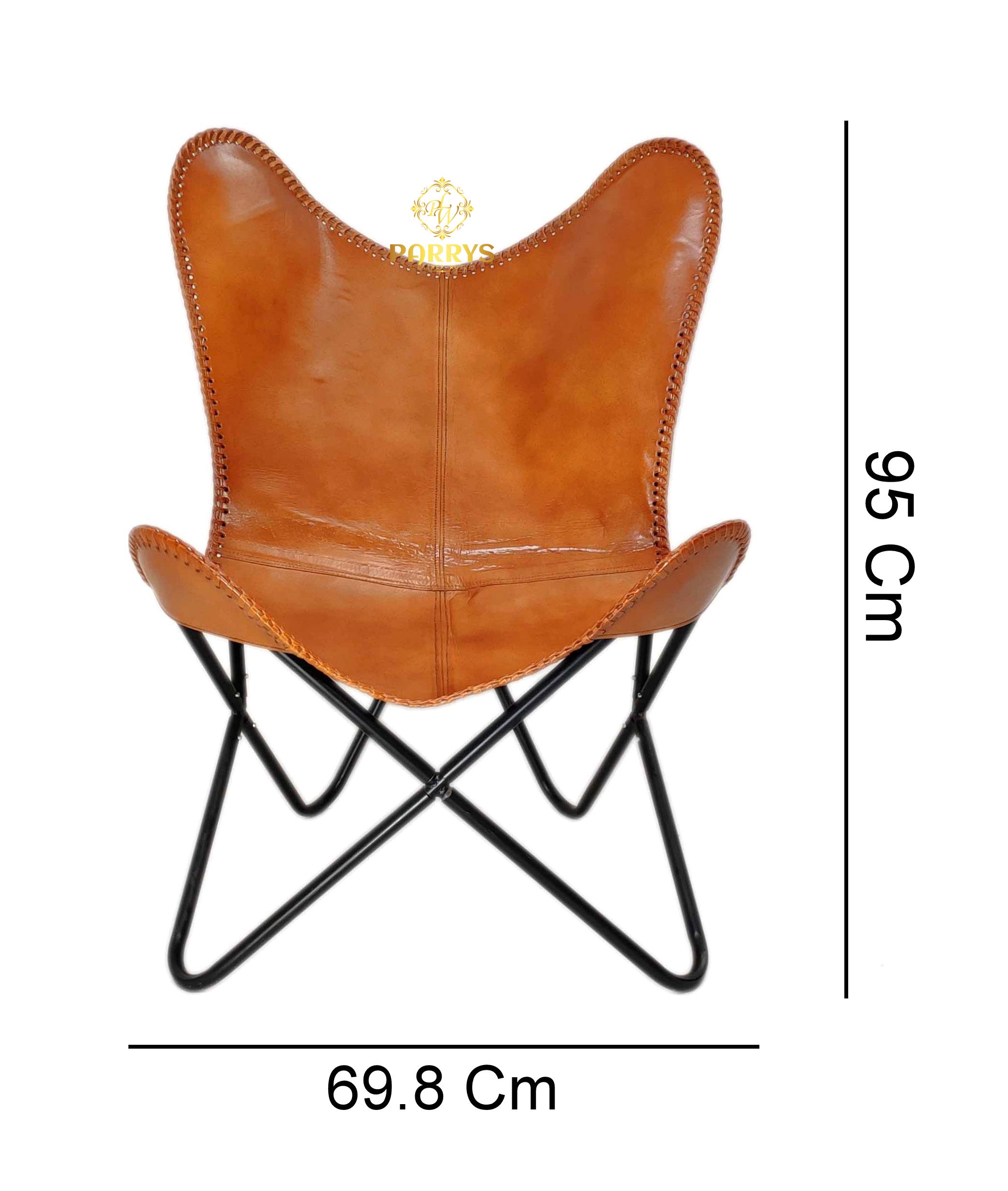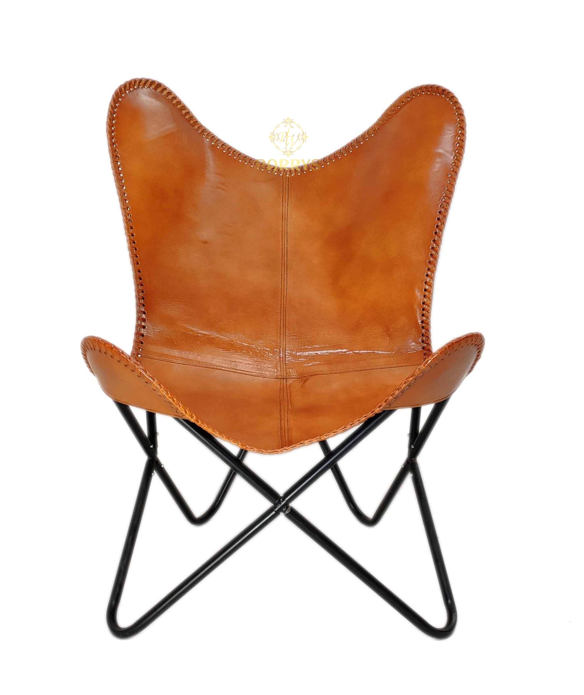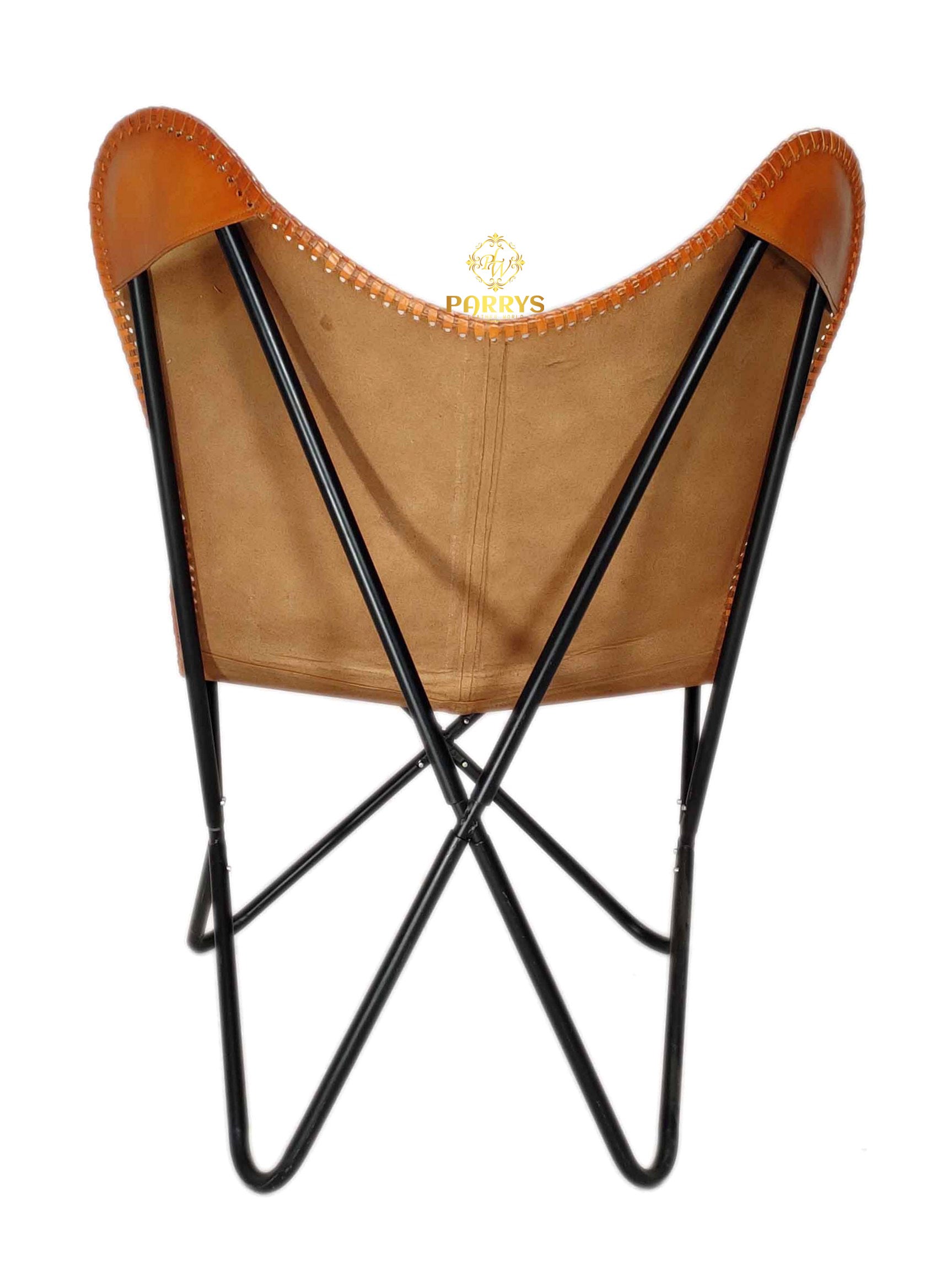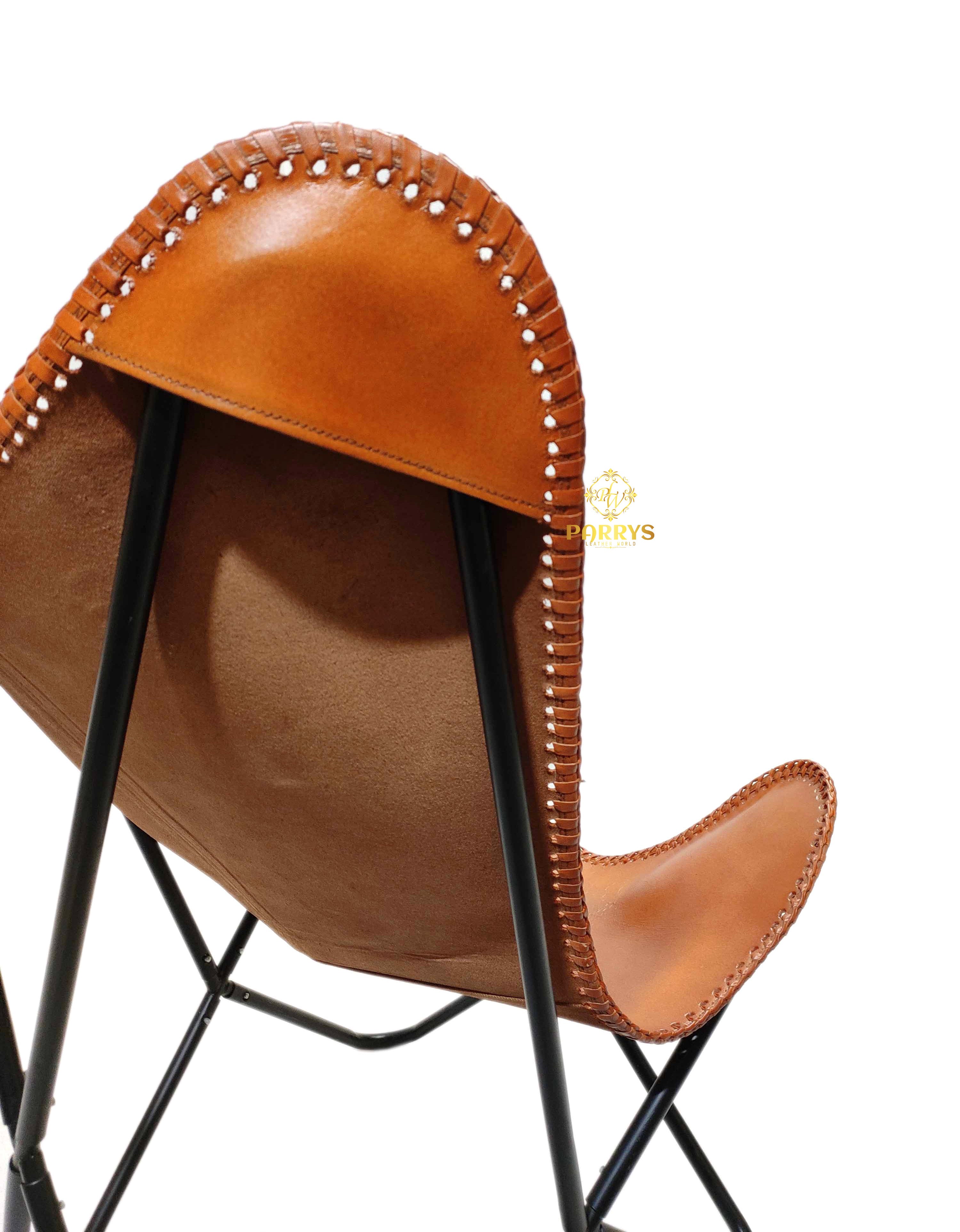 Rich, radiant, and distinctly refined—the Amber Saddle Leather Butterfly Chair delivers warm amber tones that instantly elevate any space. Handcrafted from premium top‑grain leather, the lustrous amber finish develops an even richer patina with use, celebrating the natural aging process. The iconic butterfly silhouette cradles the body for relaxed comfort, while hand‑laced edging and precise panel stitching highlight artisan craftsmanship. A sleek powder‑coated iron frame provides minimalist style with dependable stability—perfect for living rooms, reading nooks, studios, or contemporary office lounges.