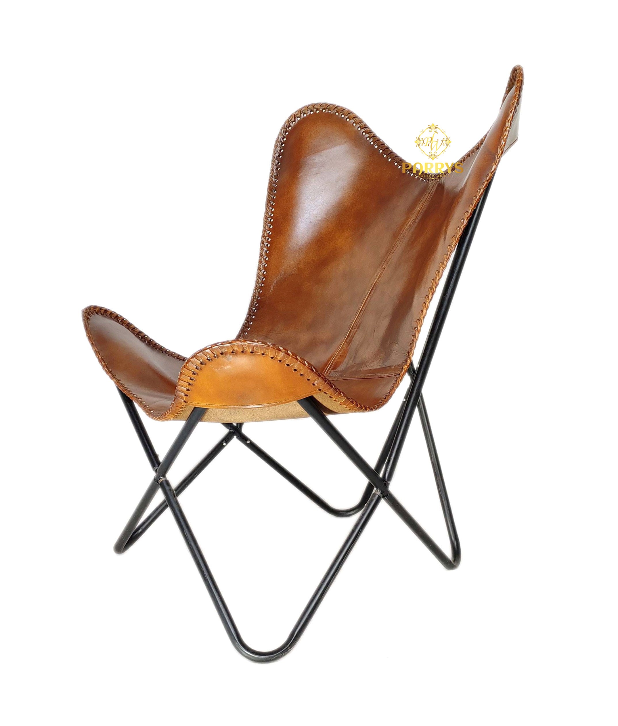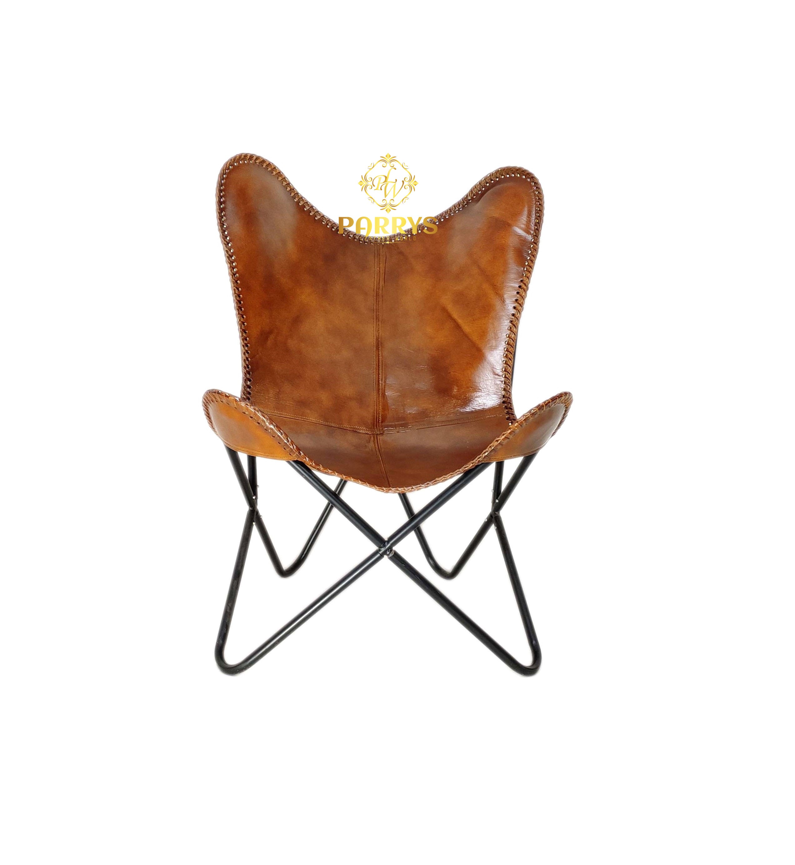Bring refined warmth and effortless style to any room with the Burnished Cognac Leather Butterfly Chair. Handcrafted from premium top‑grain leather, its rich cognac hue is hand‑finished for a subtle burnished sheen that deepens beautifully with time. The iconic butterfly silhouette offers a naturally cradling seat, while meticulous panel stitching and hand‑laced edging showcase artisanal craftsmanship. A sleek, powder‑coated iron frame completes the minimalist profile with dependable stability perfect for living rooms, reading nooks, studios, or modern office lounges.