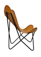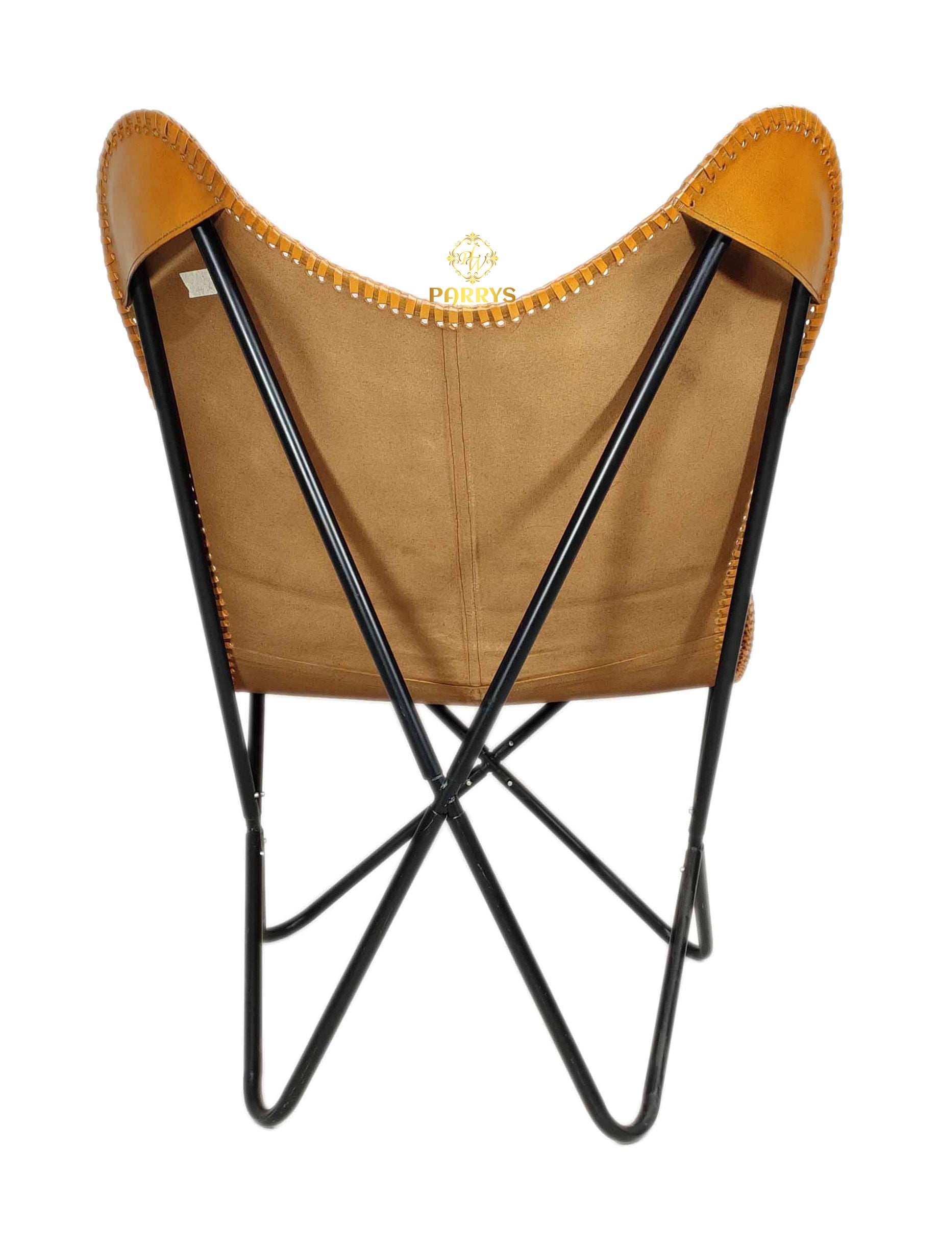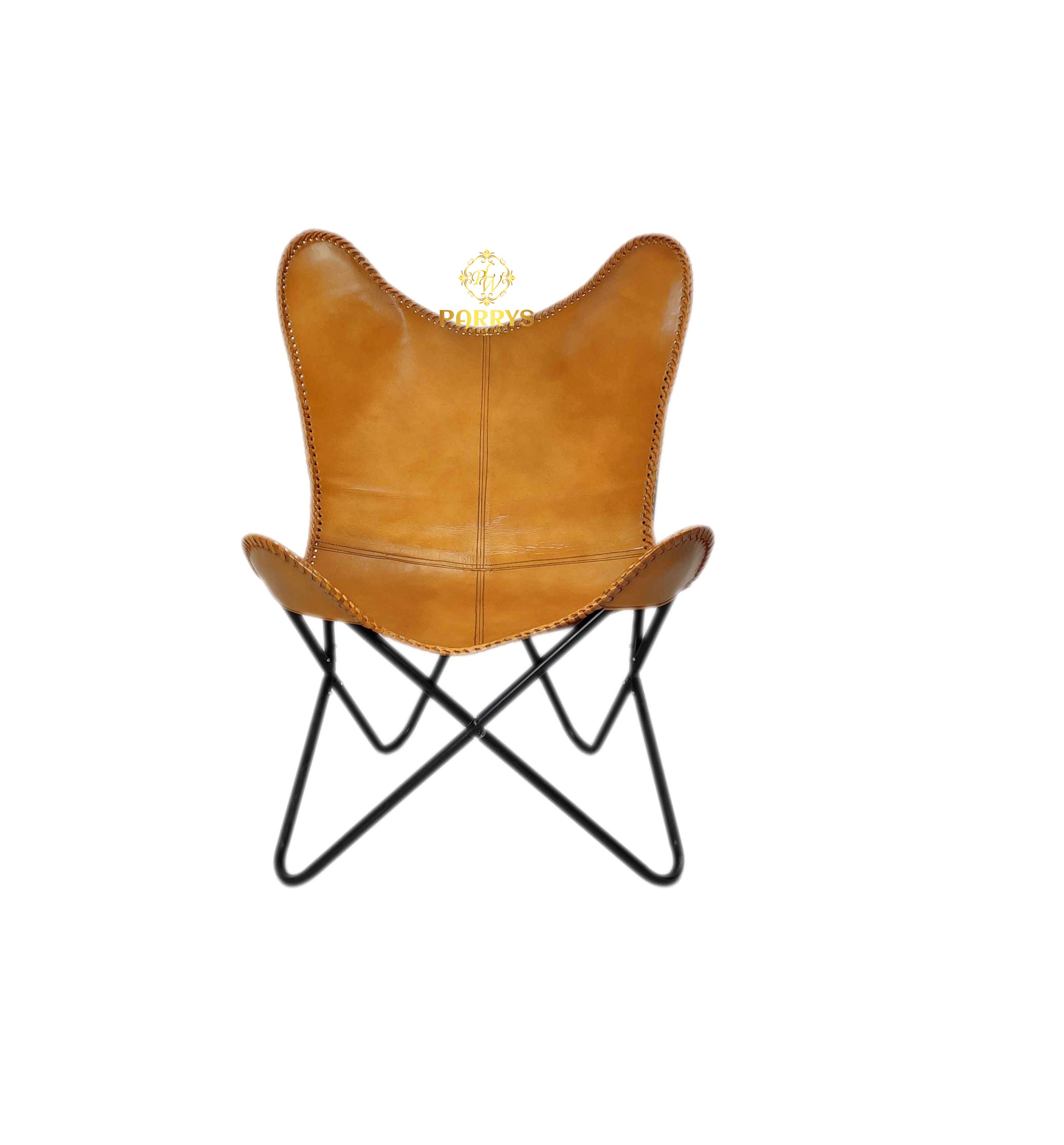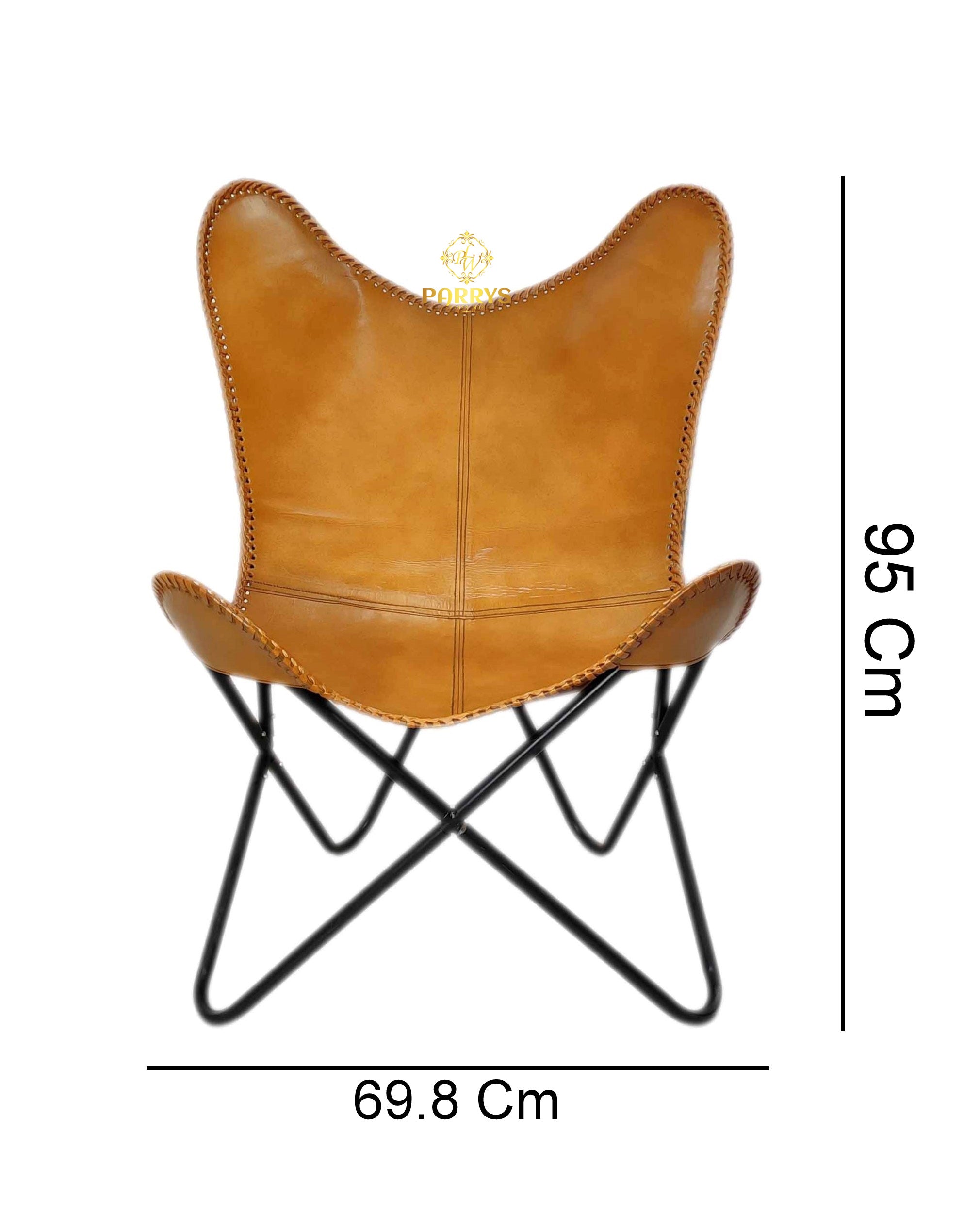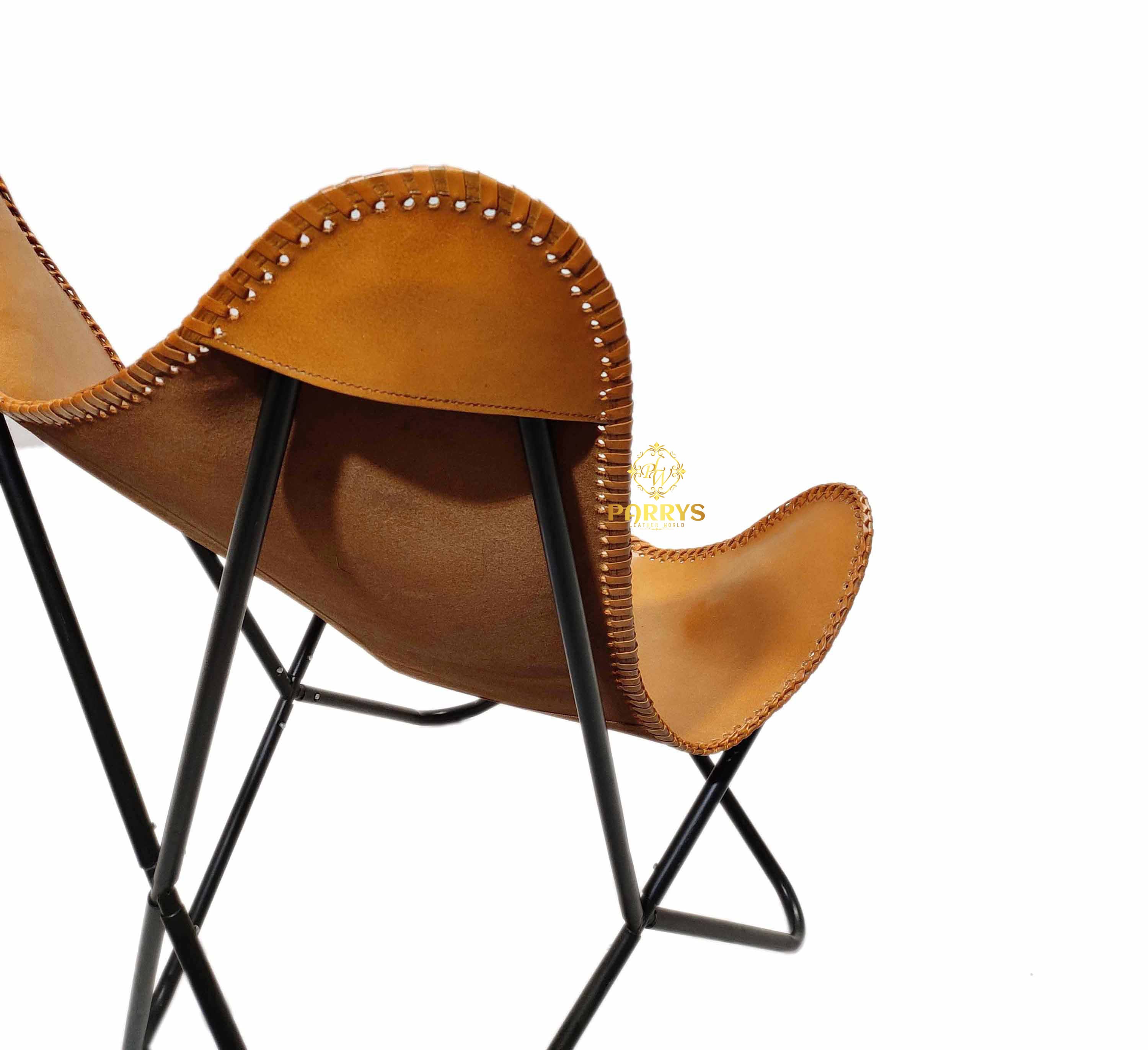 Warm, inviting, and effortlessly stylish the Classic Caramel Leather Butterfly Chair brings a rich caramel hue to any space while delivering the relaxed comfort of the timeless butterfly silhouette. Handcrafted in premium top‑grain leather, the seat softens beautifully with use and develops a natural patina. Hand‑laced edging and clean panel stitching highlight artisan craftsmanship, and the powder‑coated iron frame offers a sleek, minimalist profile with dependable stability. A standout accent for living rooms, reading nooks, studios, or modern office lounges.