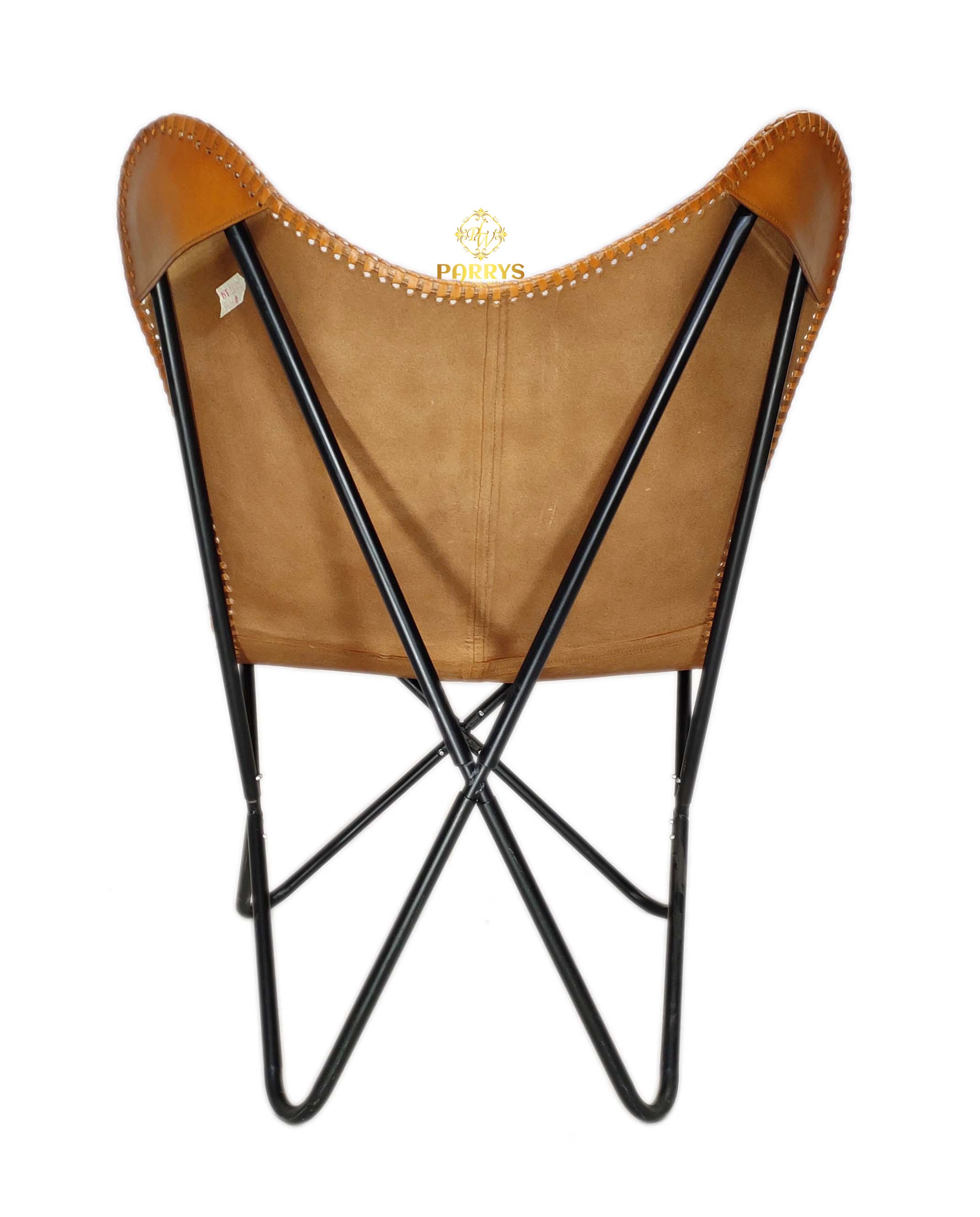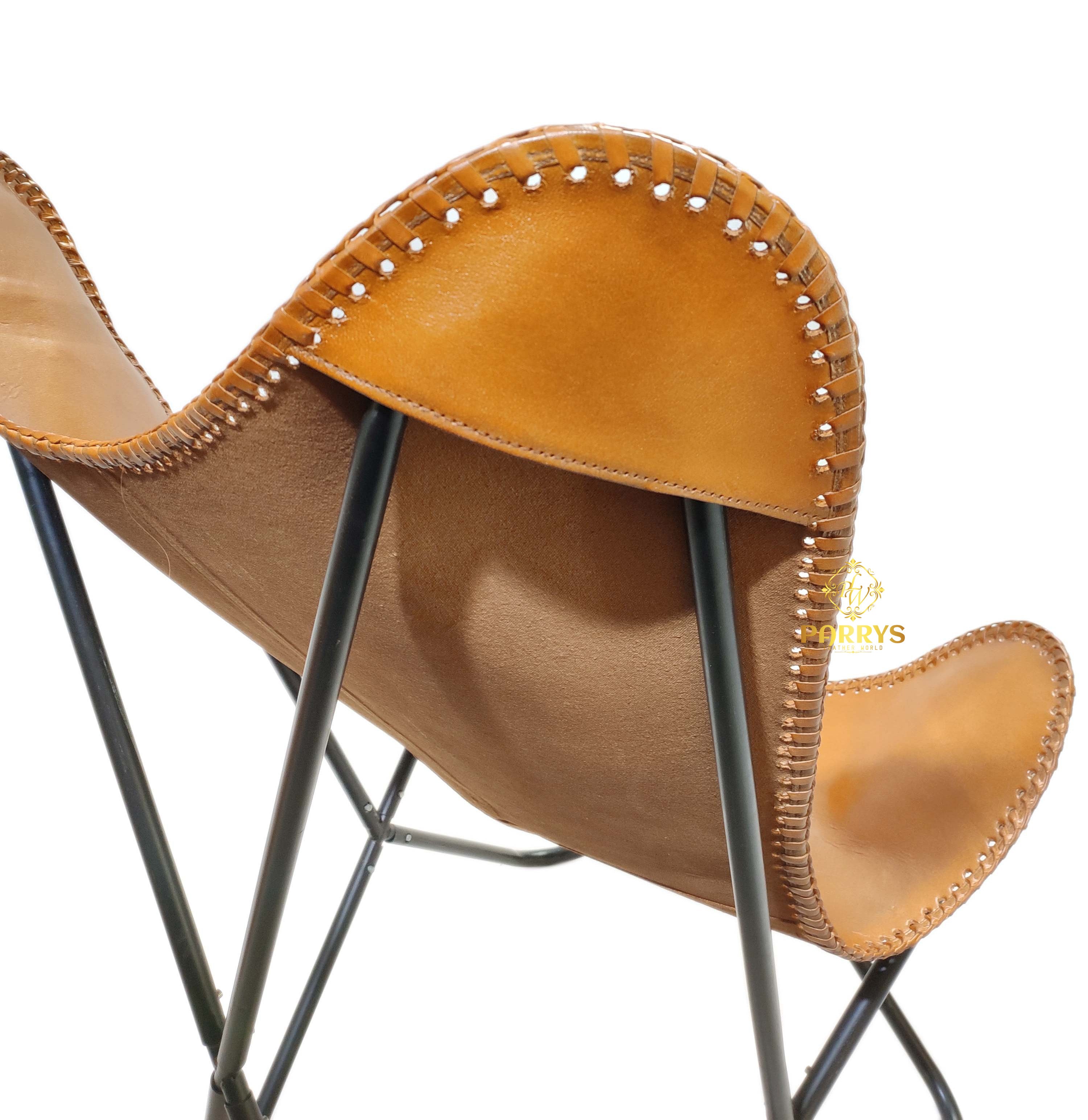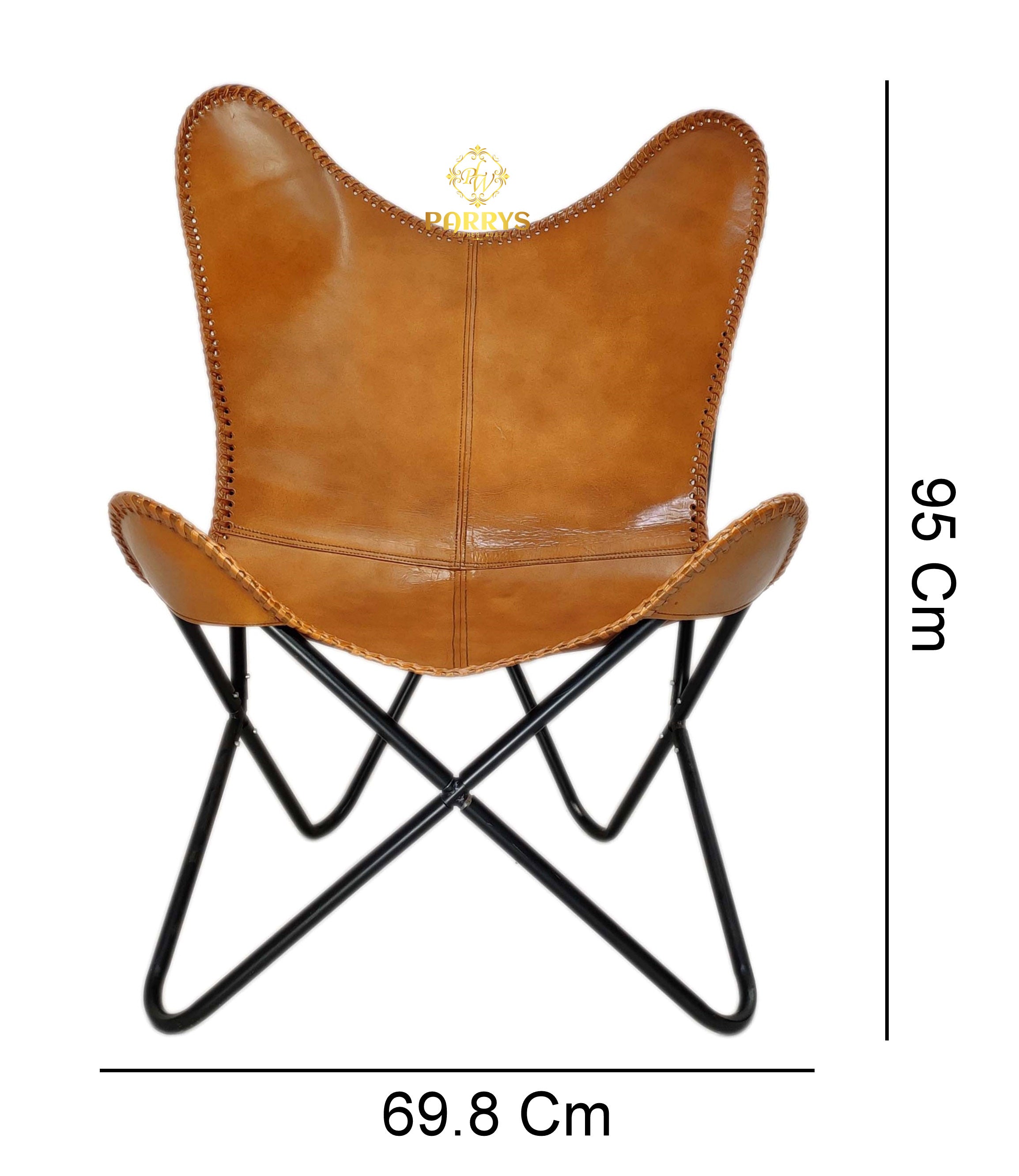 Bright, warm, and effortlessly versatile the Classic Honey Leather Butterfly Chair adds a welcoming glow to any space. Handcrafted from premium top‑grain leather in a smooth honey finish, the seat softens beautifully over time and develops a refined patina. The iconic butterfly silhouette gently cradles the body for relaxed lounging, while hand‑laced edging and clean panel stitching highlight artisan craftsmanship. A powder‑coated iron frame provides a sleek, minimalist profile with dependable stability, making this a standout accent for living rooms, reading nooks, studios, and modern office lounges.