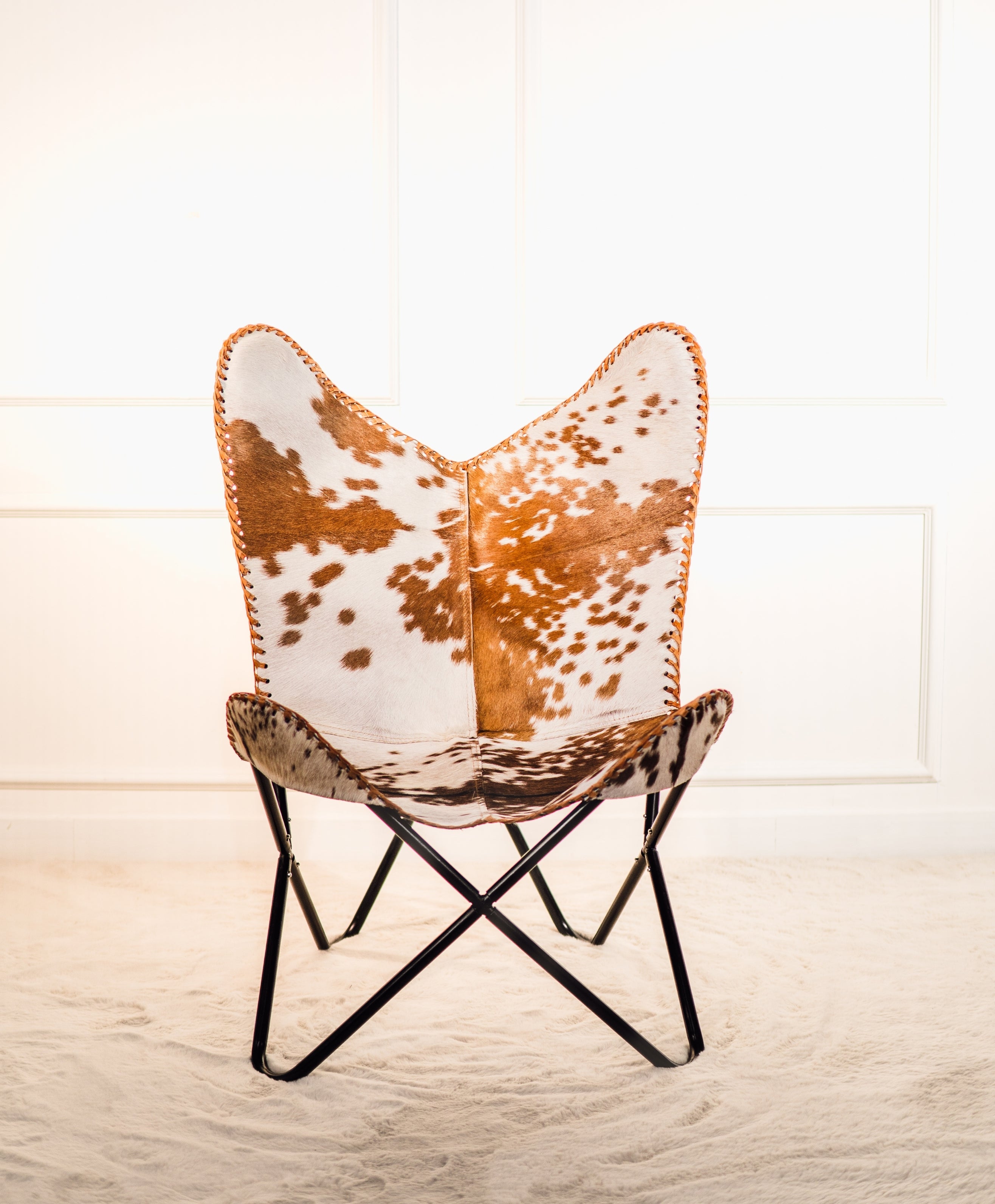 The Brown Cowhide Relax Lounge Chair brings a blend of comfort, character and natural beauty into your living space. Made with genuine hair on cowhide in warm brown and white tones, each chair features a unique pattern that adds a touch of rustic charm to any room. The iconic butterfly design offers a gently curved seat that supports your posture while creating a relaxed and inviting lounging experience.