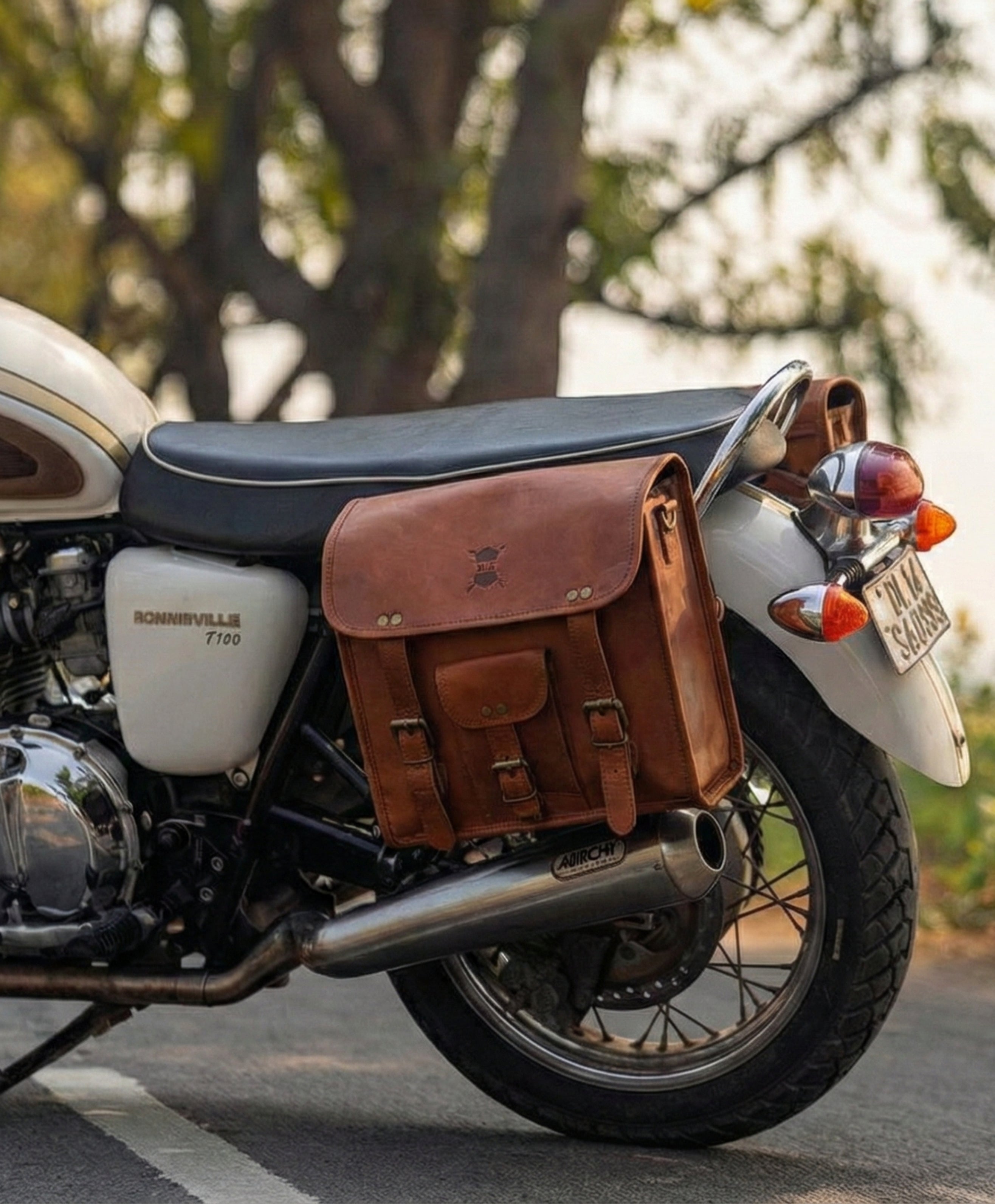 Embrace rugged charm and practical utility with the Classic Brown leather Saddle bag (Set of 2). Crafted from full-grain goat leather, this matching pair features a rich, earthy rustic brown finish that speaks to enduring quality and an adventurous spirit. Designed to age beautifully, developing a unique patina over time, these saddle bags are perfect for adding classic style and reliable storage to your travels.