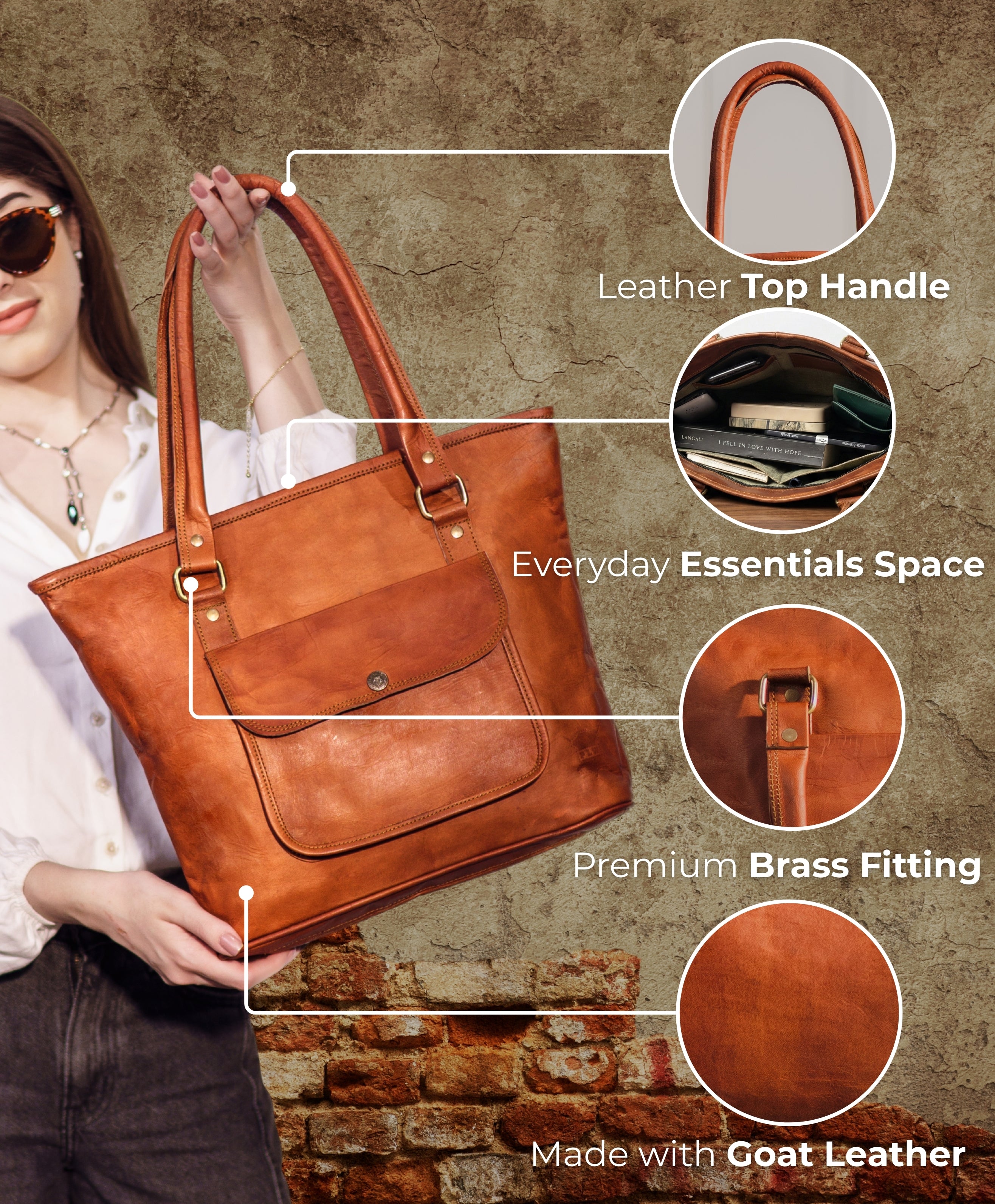 Blending timeless elegance with everyday function, the Classic Brown Leather Tote is a standout piece for those who value refined craftsmanship and natural beauty. Handcrafted from full grain goat leather, its rich classic brown hue radiates warmth and character, making it a versatile essential for workdays, errands, or weekend escapes.