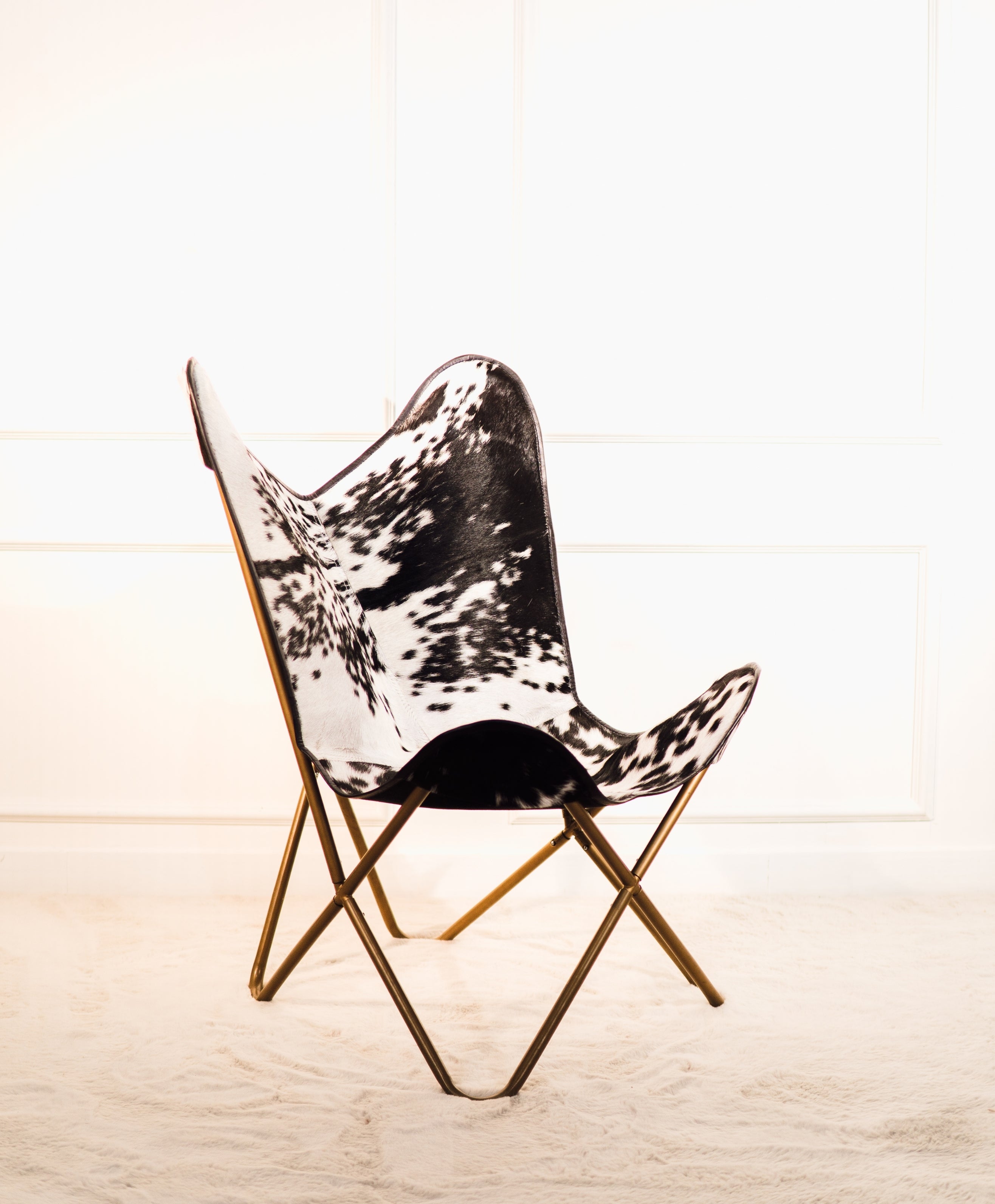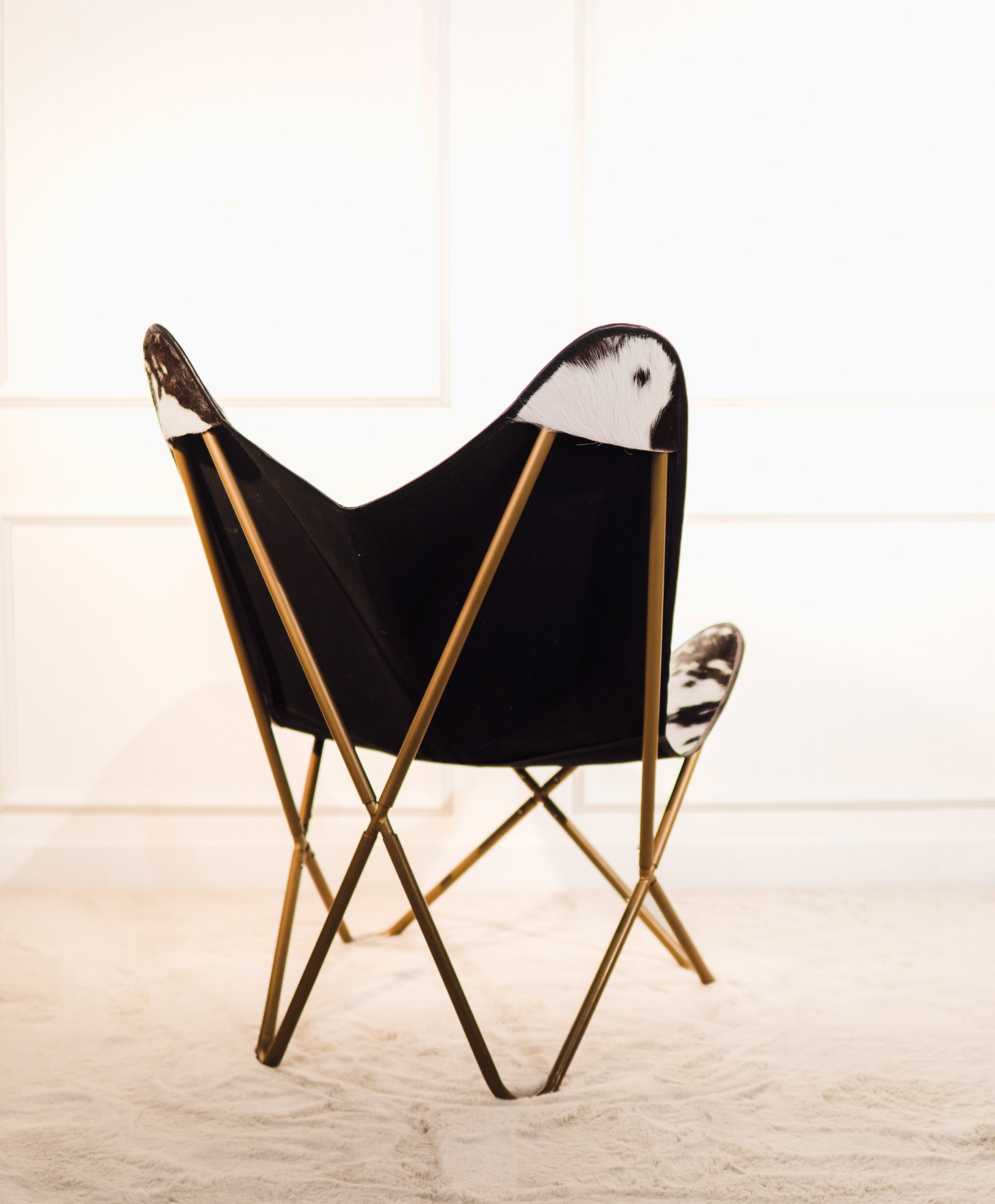 The classic butterfly silhouette offers a gently curved seat that supports your posture while creating a relaxed and comfortable lounging experience. Paired with a strong golden metal frame, it adds both visual contrast and long lasting durability.