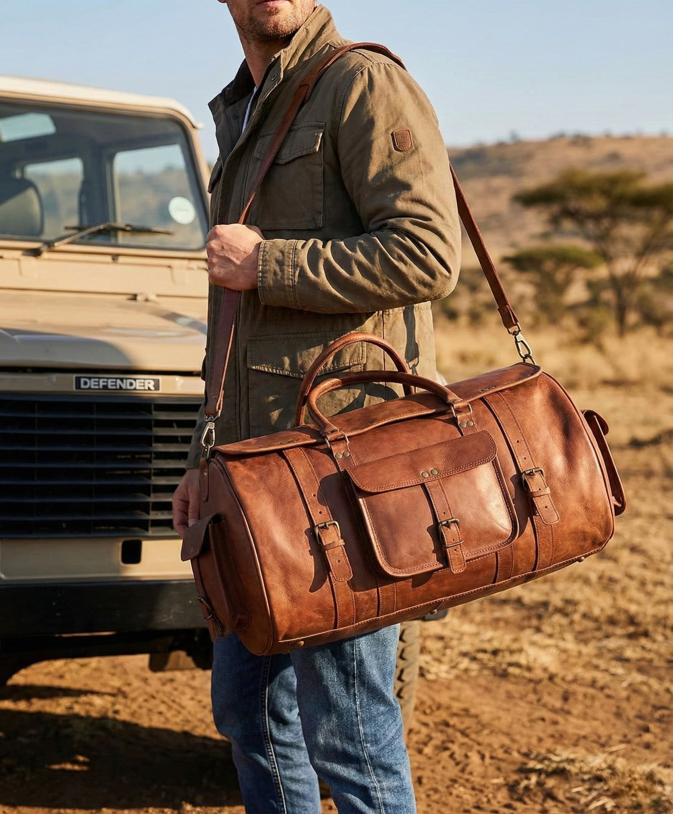 - Ethically sourced leather and natural materials.